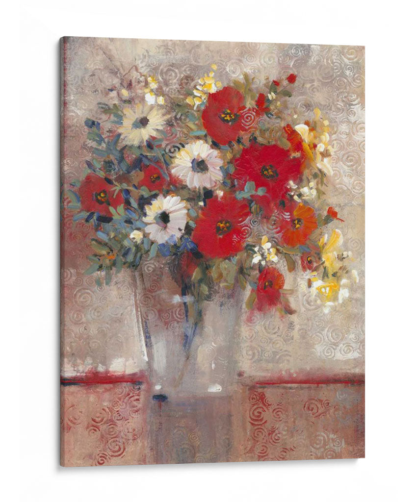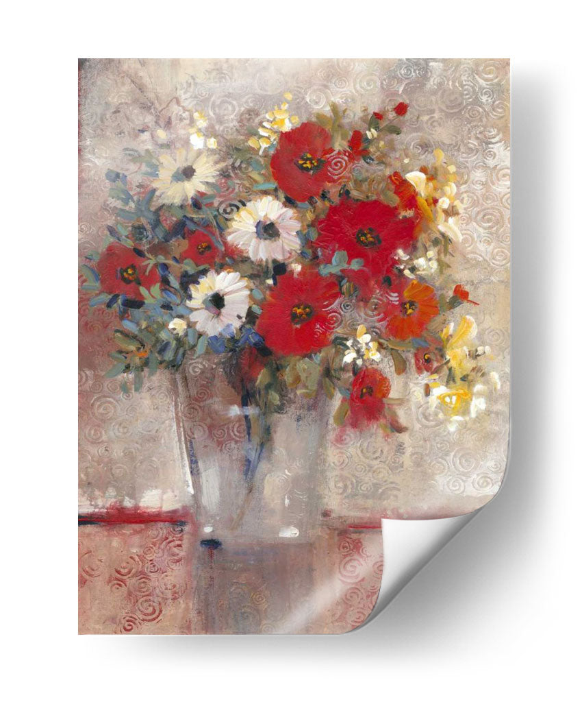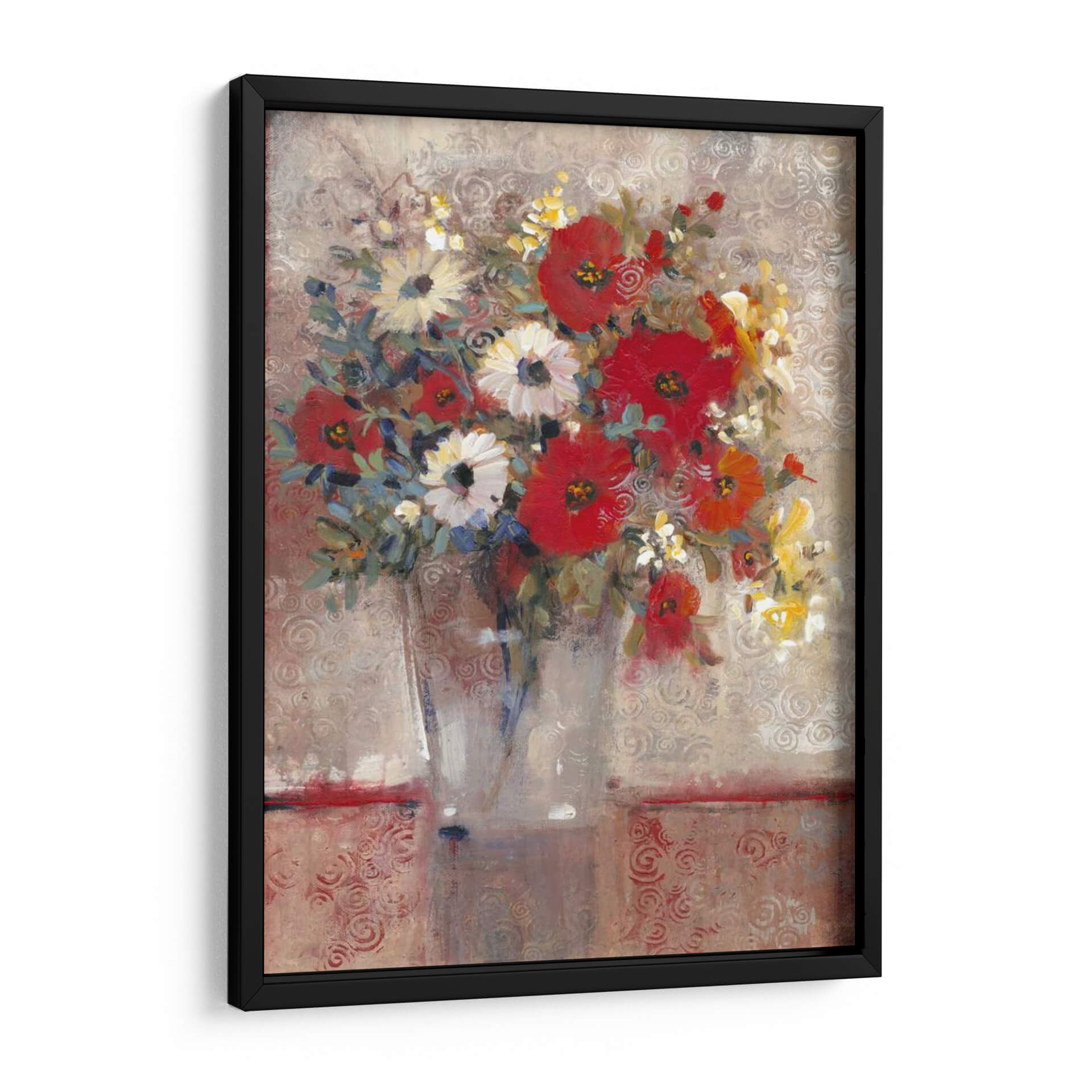 Sumérgete en la vitalidad y el encanto de "Bodegón Rizado II", una obra de arte que captura la esencia de la naturaleza con un toque contemporáneo. Este cuadro decorativo, del artista Tim O'Toole, presenta un vibrante ramo de flores en tonos rojos, blancos y amarillos, dispuestas en un jarrón transparente. La técnica impresionista y la paleta de colores cálidos y armoniosos crean una atmósfera acogedora y llena de vida, ideal para añadir un punto focal de color y elegancia a cualquier espacio. El fondo texturizado, con sutiles patrones en espiral, complementa la riqueza de las flores sin restarle protagonismo, aportando profundidad y sofisticación. Perfecto para salas de estar, comedores o cualquier rincón que necesite una dosis de belleza natural y alegría. Este cuadro decorativo no solo embellece tu hogar, sino que también evoca sentimientos de calidez, frescura y admiración por la belleza efímera de las flores. Transforma tu decoración con esta pieza única que combina el arte clásico del bodegón con una sensibilidad moderna, creando un ambiente inspirador y lleno de carácter.