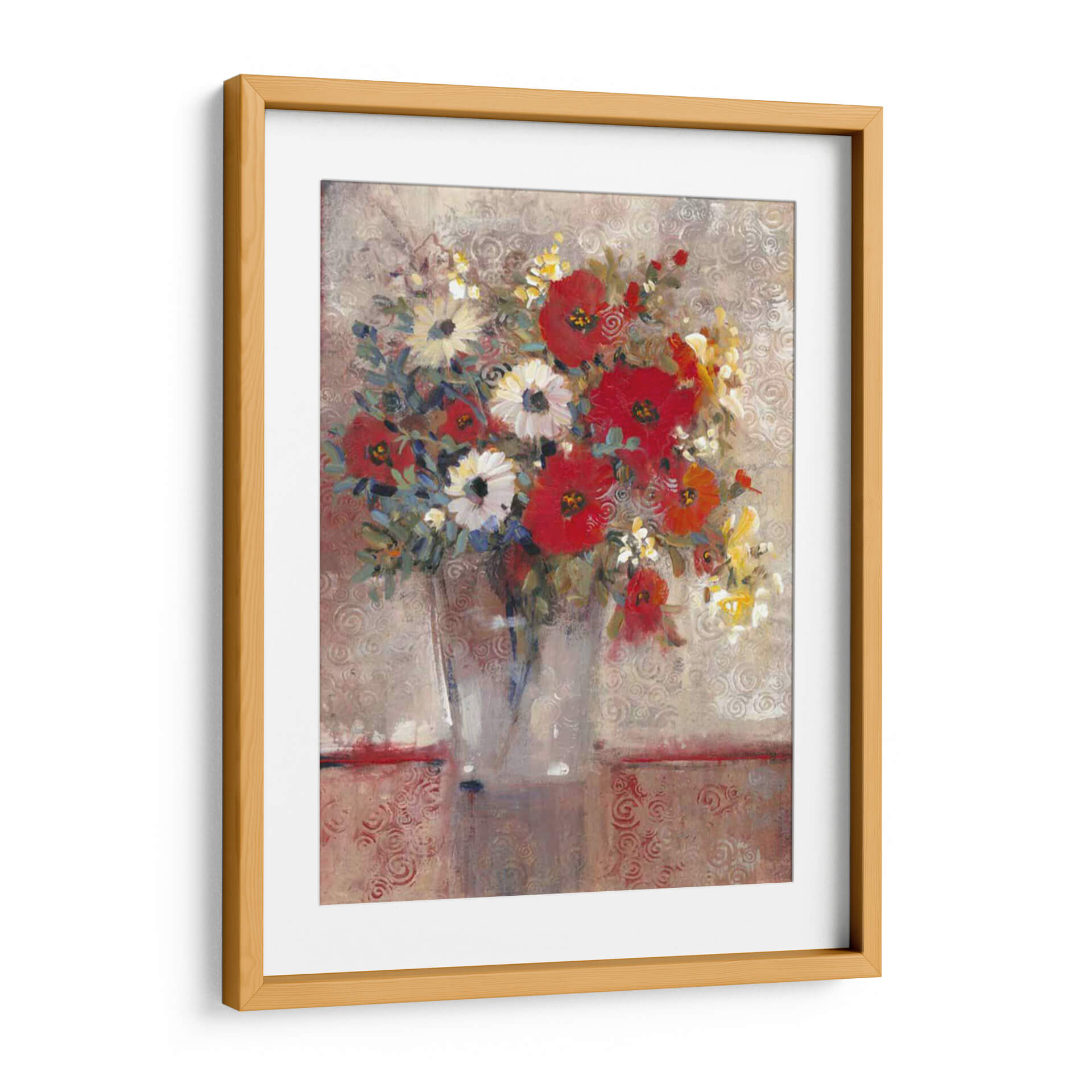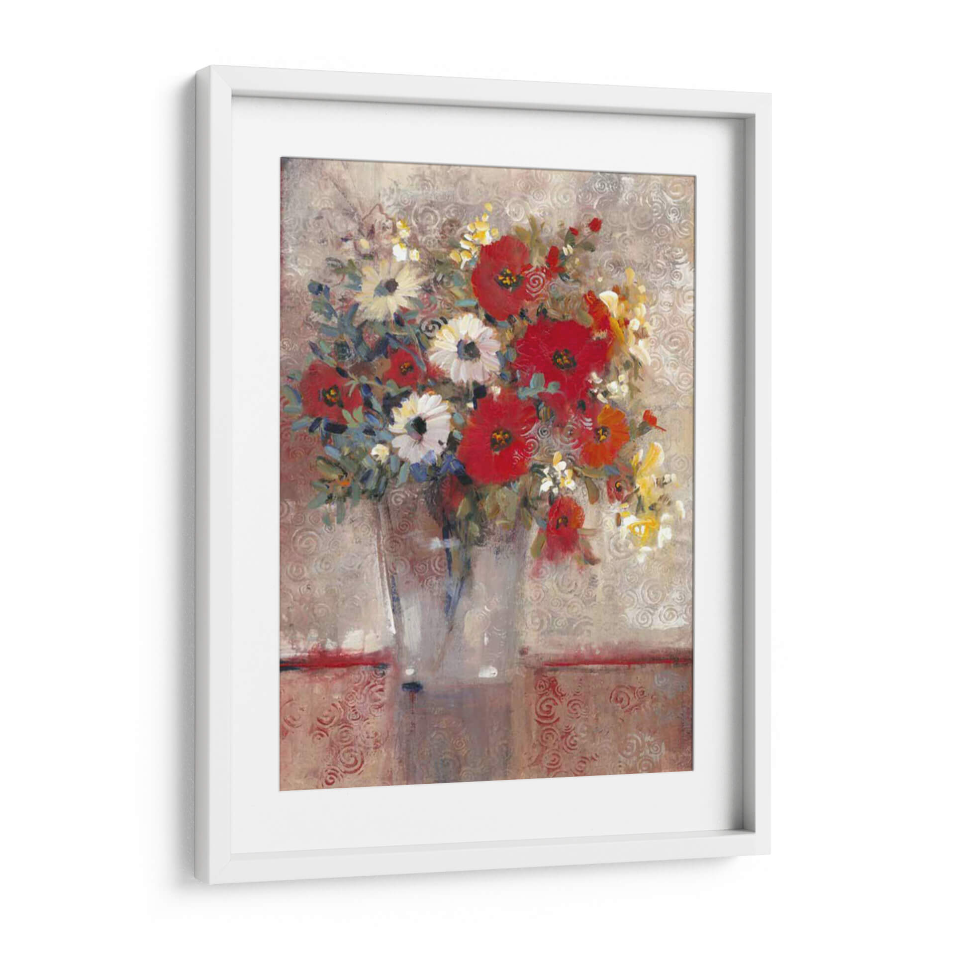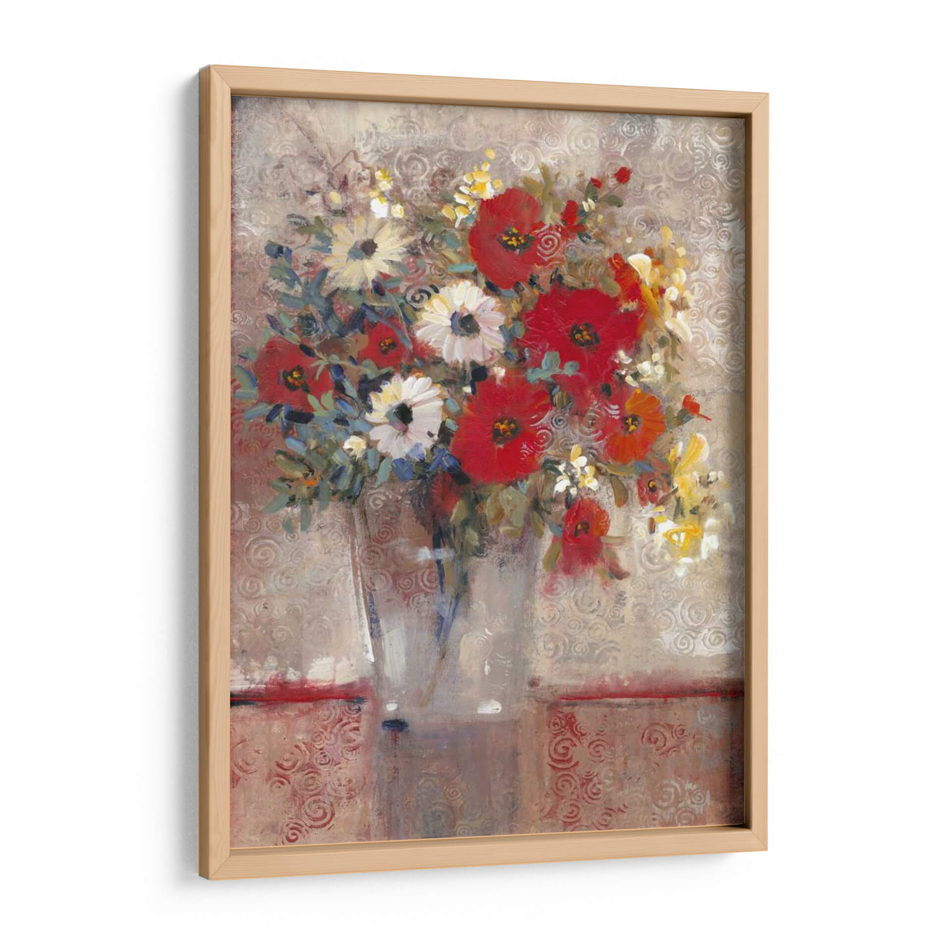 Sumérgete en la vitalidad y el encanto de "Bodegón Rizado II", una obra de arte que captura la esencia de la naturaleza con un toque contemporáneo. Este cuadro decorativo, del artista Tim O'Toole, presenta un vibrante ramo de flores en tonos rojos, blancos y amarillos, dispuestas en un jarrón transparente. La técnica impresionista y la paleta de colores cálidos y armoniosos crean una atmósfera acogedora y llena de vida, ideal para añadir un punto focal de color y elegancia a cualquier espacio. El fondo texturizado, con sutiles patrones en espiral, complementa la riqueza de las flores sin restarle protagonismo, aportando profundidad y sofisticación. Perfecto para salas de estar, comedores o cualquier rincón que necesite una dosis de belleza natural y alegría. Este cuadro decorativo no solo embellece tu hogar, sino que también evoca sentimientos de calidez, frescura y admiración por la belleza efímera de las flores. Transforma tu decoración con esta pieza única que combina el arte clásico del bodegón con una sensibilidad moderna, creando un ambiente inspirador y lleno de carácter.