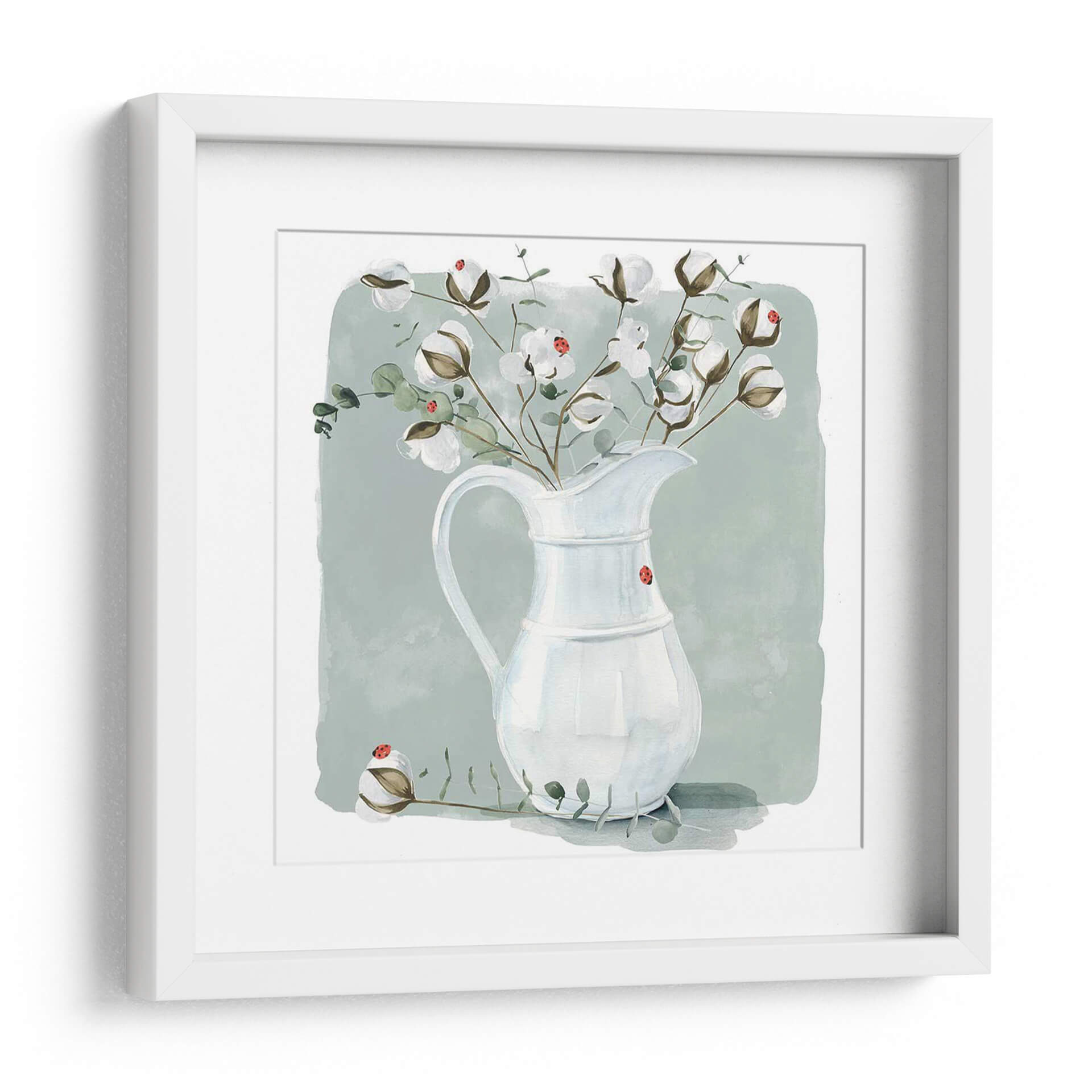 Transforma tu espacio con el encantador cuadro decorativo "Bouquet De Algodón Ii", una obra maestra del artista Jennifer Paxton Parker. Esta pieza evoca una sensación de tranquilidad y frescura campestre, presentando un delicado arreglo de capullos de algodón y eucalipto en una elegante jarra blanca. La paleta de colores suaves, dominada por tonos verdes apagados y blancos puros, crea una atmósfera serena y acogedora, perfecta para añadir un toque de naturaleza y simplicidad a tu hogar u oficina. Los sutiles toques de mariquitas añaden un detalle juguetón y encantador que no pasará desapercibido. La composición centrada y el estilo pictórico hacen de este cuadro decorativo una adición versátil que encaja maravillosamente en decoraciones rústicas, modernas o de inspiración escandinava. Imagina la calma que "Bouquet De Algodón Ii" aportará a tu dormitorio, sala de estar o estudio, convirtiéndose en un punto focal de serenidad y buen gusto. Es la elección ideal para quienes buscan arte que inspire paz y conecte con la belleza sutil del mundo natural, ofreciendo una ventana a la calma y la elegancia en cada mirada. Añade esta obra a tu colección y deja que su delicadeza embellezca tu vida.