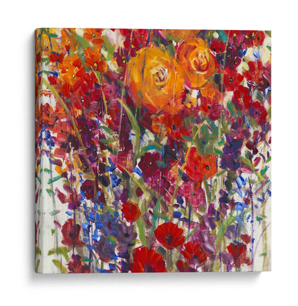 Embellece tu espacio con "Bouquet Mixto III", una vibrante obra de arte de Tim O'Toole. Este cuadro decorativo captura la exuberancia de un jardín florecido con una técnica de pincelada audaz y expresiva. Los vibrantes tonos rojos, naranjas, morados y azules se entrelazan en una composición dinámica que evoca la energía y la alegría de la naturaleza en plena floración. Las grandes flores amarillas y naranjas en el centro captan la mirada, mientras que las salpicaduras de rojo y azul añaden profundidad y movimiento a la escena. La textura sugerida por las pinceladas añade una dimensión táctil a esta pieza visualmente rica, invitando a la contemplación. "Bouquet Mixto III" es una elección perfecta para añadir un toque de color y vitalidad a cualquier habitación, desde una sala de estar moderna hasta un dormitorio acogedor o una oficina inspiradora. Su estilo contemporáneo y su temática floral lo convierten en un punto focal cautivador que transformará cualquier pared en una galería de arte personal, reflejando tu aprecio por la belleza y la vitalidad.