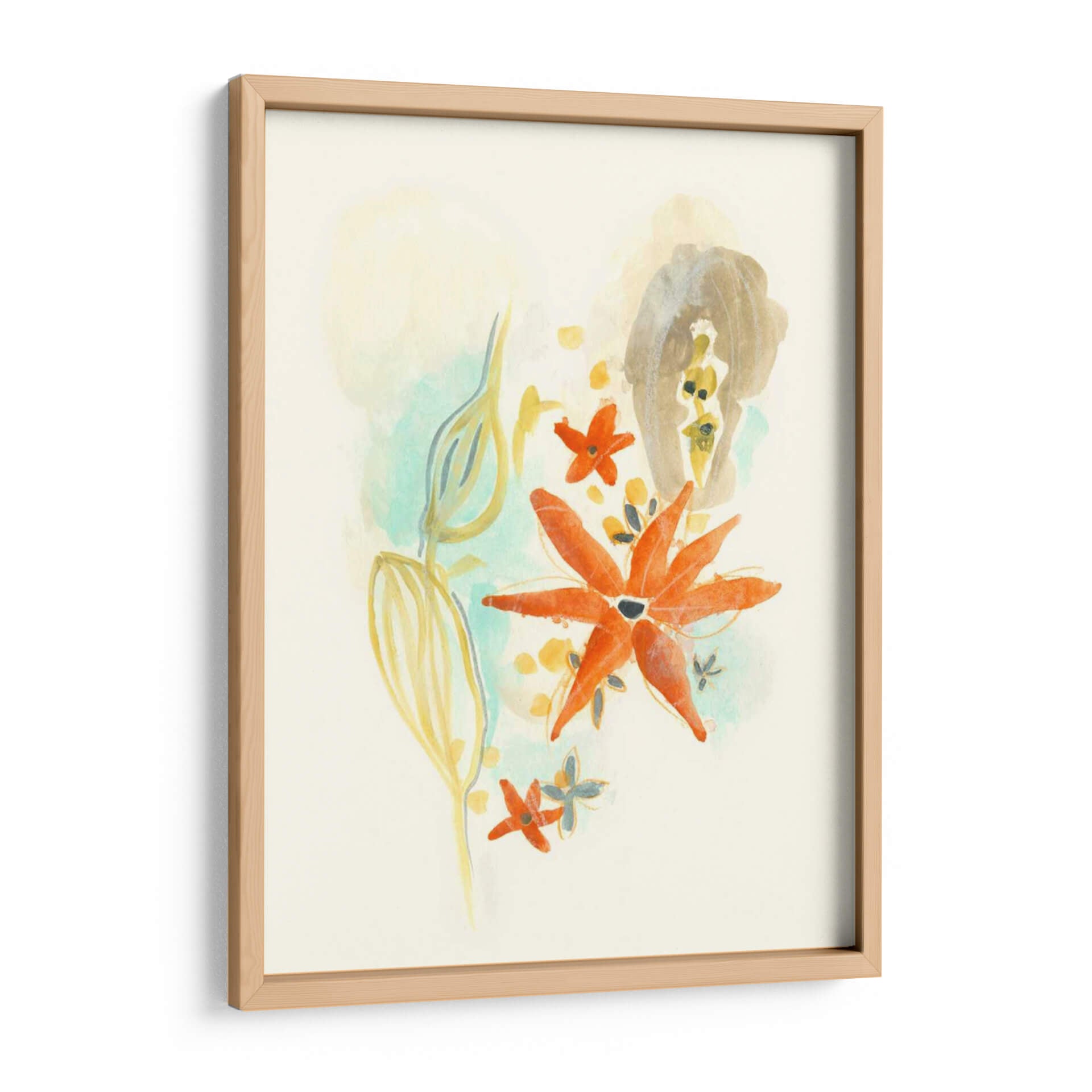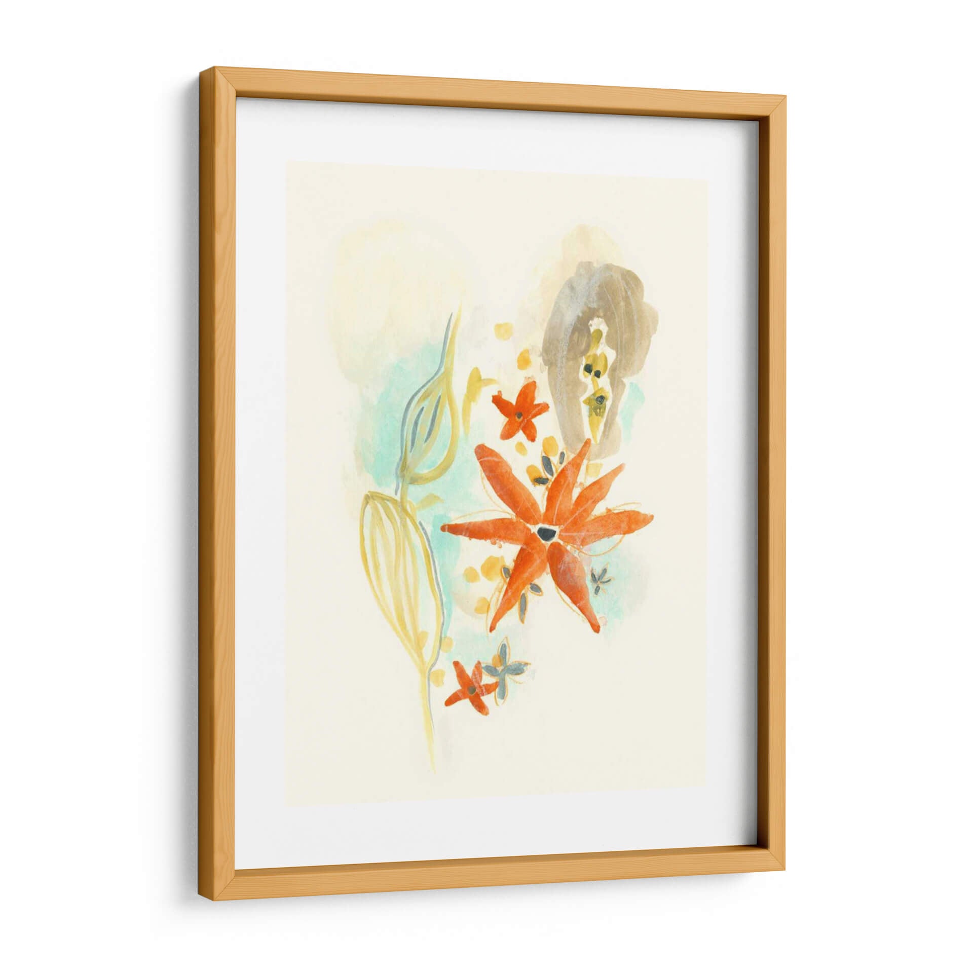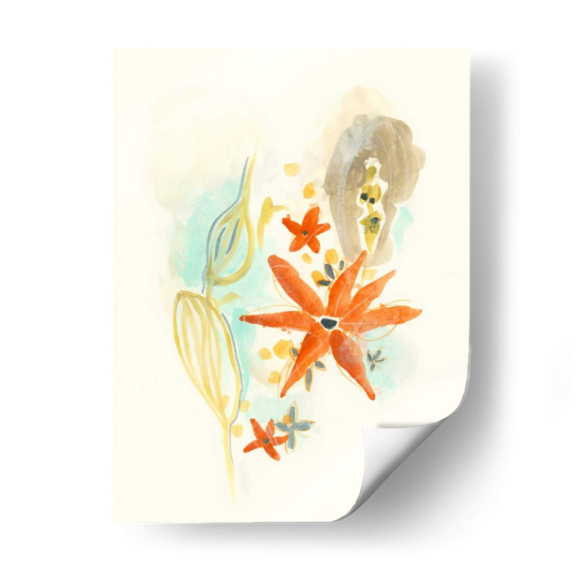 la obra "Bouquet Moderne Iv" of June Erica Vess is a celebration of soft, organic forms and a delicate color palette. The artwork features abstracted floral elements and flowing lines, rendered with a watercolor-like texture that evokes a sense of lightness and fluidity. Dominant tones of soft yellow, muted teal, and warm ochre are punctuated by vibrant bursts of coral-orange and hints of grey. This piece exudes a gentle, calming atmosphere, perfect for adding a touch of sophisticated tranquility to any room. Its contemporary abstract style makes it versatile, fitting seamlessly into modern, bohemian, or minimalist decor. Imagine this piece enhancing a serene bedroom, a thoughtful home office, or a living area seeking a subtle yet impactful artistic statement. The interplay of soft washes and more defined shapes invites contemplation and brings a breath of fresh, natural beauty indoors, creating a peaceful and aesthetically pleasing environment that speaks to a refined sensibility and appreciation for subtle artistry. Este cuadro decorativo es una pieza clave para quienes buscan infundir calma y elegancia en su espacio vital. Su composición abstracta pero inspirada en la naturaleza ofrece una vía de escape visual, transformando cualquier pared en un lienzo de serenidad y estilo contemporáneo. El título 'Bouquet Moderne Iv' sugiere una reinterpretación moderna de la belleza floral, capturada con una sensibilidad artística que resuena con la decoración actual. Es ideal para salones, dormitorios o estudios que busquen un toque de color suave y una atmósfera de tranquilidad. La artista June Erica Vess demuestra maestría en el uso de acuarelas o técnicas digitales que imitan su delicadeza, logrando un efecto etéreo y vibrante a la vez. La gama de colores, que va desde pasteles suaves hasta toques más intensos, permite que esta obra de arte se integre armónicamente en diversas paletas de decoración, aportando un punto focal sofisticado sin abrumar el espacio. Añada un toque de arte contemporáneo y calma a su hogar con este exquisito cuadro decorativo.