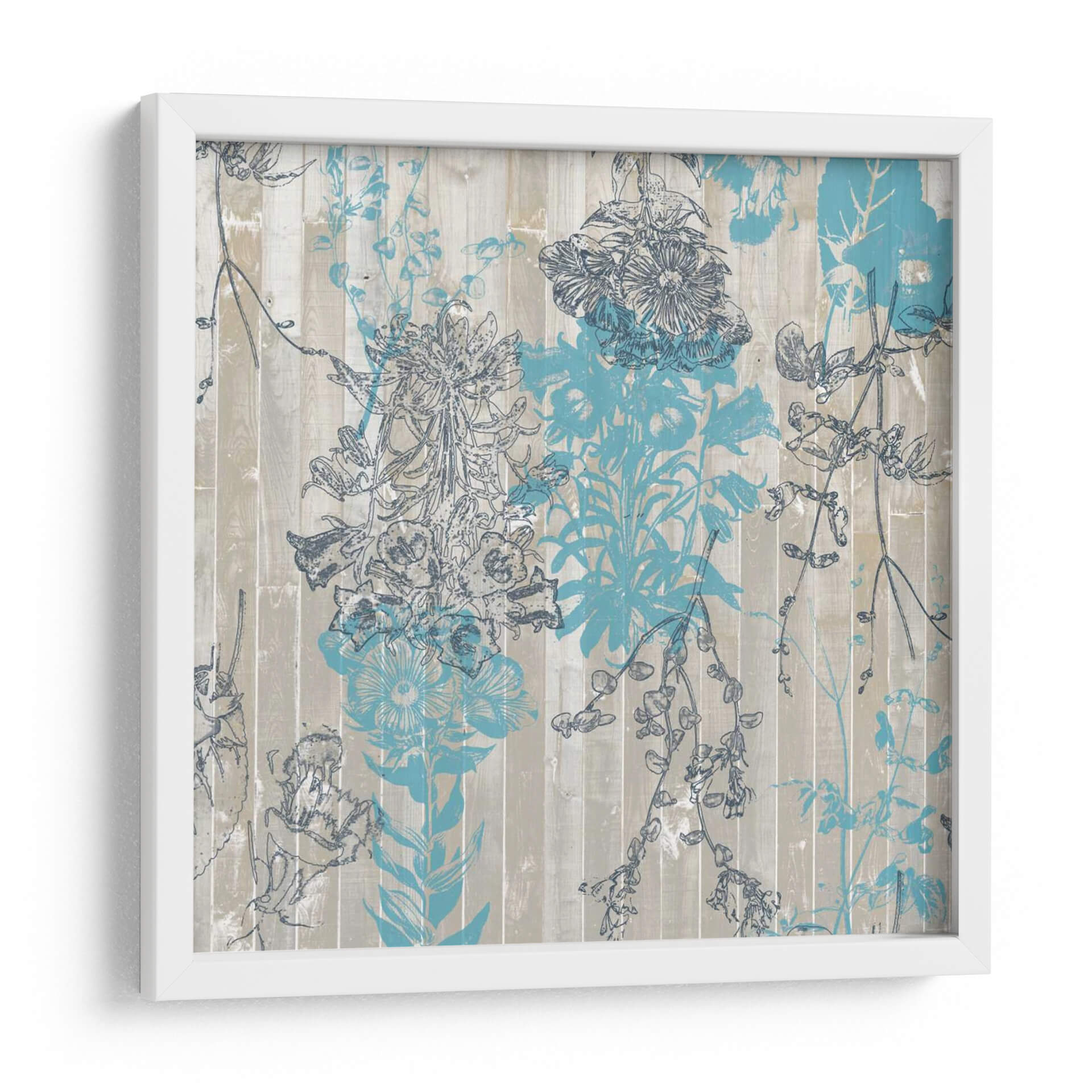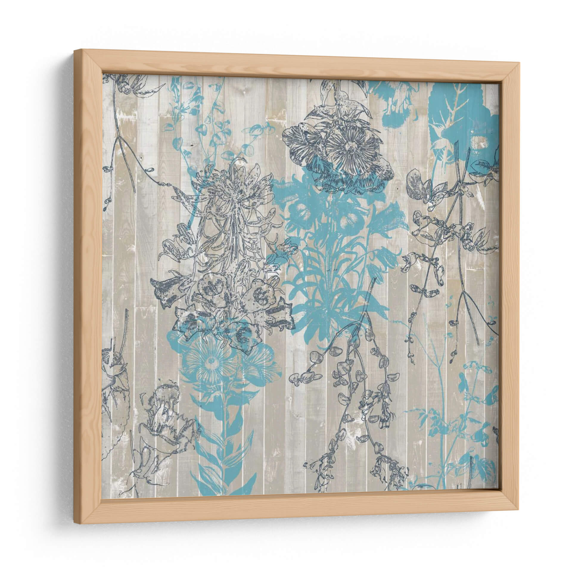 Embellece tu hogar u oficina con "Cache Rose II", una obra de arte contemporáneo de Jennifer Goldberger que evoca la belleza etérea de la naturaleza. Este cuadro decorativo presenta un delicado boceto de flores y follaje en tonos azulados y grises, superpuesto sobre un fondo texturizado de tablones de madera desgastada. La composición juega con capas de detalles, algunas flores y hojas están delineadas con trazos finos y precisos, mientras que otras aparecen como siluetas vibrantes en un llamativo azul turquesa. El contraste entre la delicadeza floral y la base rústica crea una pieza visualmente cautivadora que añade profundidad y carácter a cualquier espacio. Ideal para quienes buscan un toque de frescura y elegancia natural, esta obra es perfecta para salas de estar, dormitorios o entradas, aportando una atmósfera de tranquilidad y sofisticación. "Cache Rose II" es más que una decoración; es una ventana a un jardín encantado, diseñado para inspirar y deleitar.