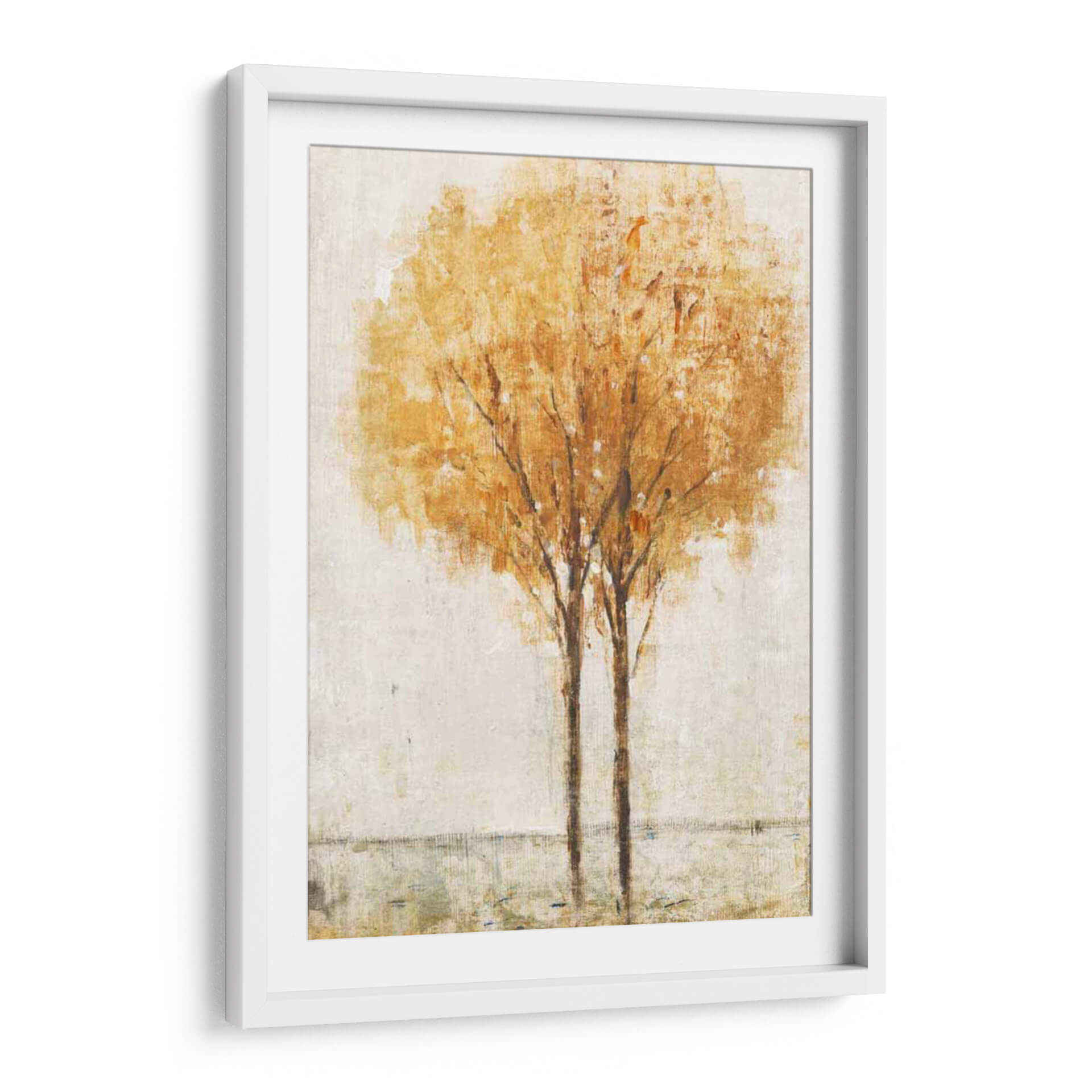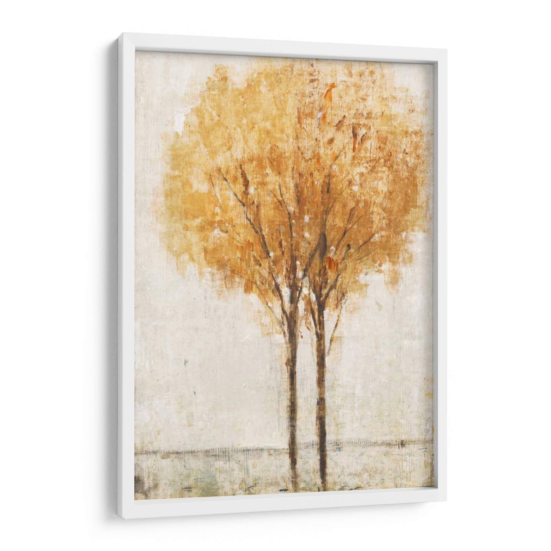 Sumérgete en la serena belleza de "Cae Las Hojas I", una obra de arte contemporáneo de Tim O'Toole que captura la esencia del otoño con una emotividad sutil y profunda. Este cuadro decorativo presenta un par de árboles esbeltos, cuyas ramas se elevan cubiertas de follaje en tonos ocres y dorados vibrantes. La pincelada evocadora y texturizada crea una atmósfera casi tangible, invitando a la contemplación. El fondo neutro y texturizado, con toques sutiles de gris y beige, realza la calidez de los árboles y la delicadeza de la composición, creando un contraste armonioso que atrae la mirada. La línea horizontal tenue en la parte inferior sugiere un horizonte o un suelo, añadiendo una capa de profundidad a la escena. "Cae Las Hojas I" es ideal para infundir un sentido de calma y conexión con la naturaleza en cualquier espacio. Su paleta de colores cálidos y terrosos lo convierte en una adición perfecta para salones, dormitorios o estudios que buscan un toque de sofisticación natural y serenidad. Transforma tu hogar con esta pieza inspiradora que evoca la transición y la belleza efímera del cambio de estación, añadiendo un punto focal artístico y emotivo a tu decoración.