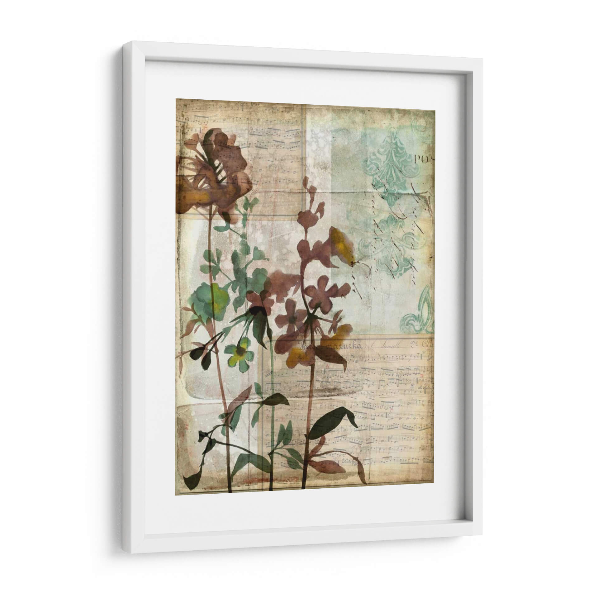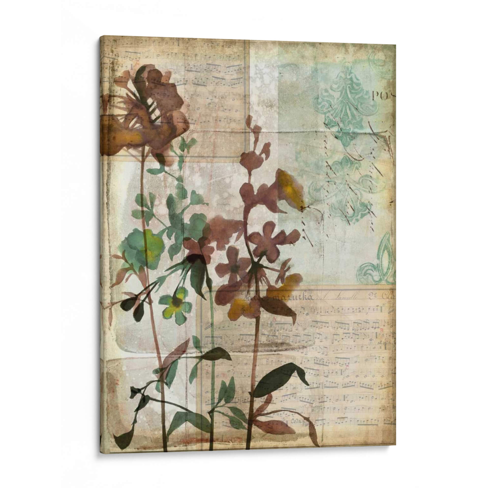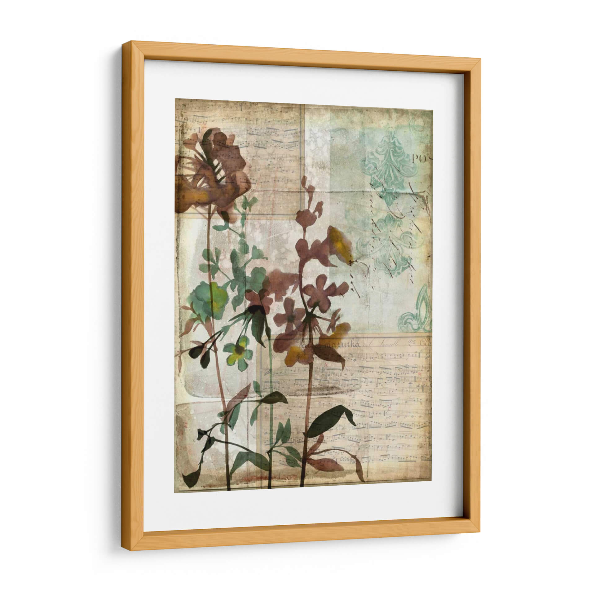 Sumérgete en la delicadeza y el encanto atemporal de "Caja De Música Floral I", una obra de arte que evoca una profunda sensación de nostalgia y belleza natural. Jennifer Goldberger, la artista, ha tejido magistralmente elementos florales etéreos sobre un fondo de partituras antiguas y texturas desgastadas, creando una composición visualmente rica y emocionalmente resonante. Los tonos tierra, marrones suaves, verdes apagados y toques de amarillo ocre se entrelazan con delicados adornos en tono aguamarina, aportando una atmósfera serena y soñadora. Las siluetas de flores y hojas, pintadas con una técnica que recuerda a la acuarela o al aguafuerte, parecen flotar sobre el papel, sugiriendo un delicado vals musical. Esta pieza es ideal para quienes buscan añadir un toque de elegancia clásica y un aire de historia a sus espacios. Perfecta para un rincón de lectura, un dormitorio tranquilo o como acento sofisticado en un estudio, "Caja De Música Floral I" invita a la contemplación y transforma cualquier ambiente en un refugio de paz y arte refinado. Descubre la sinfonía visual que esta obra maestra contemporánea tiene para ofrecer.