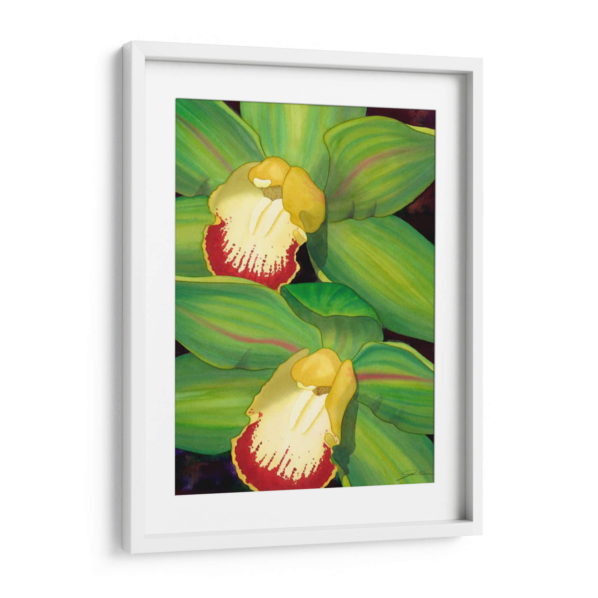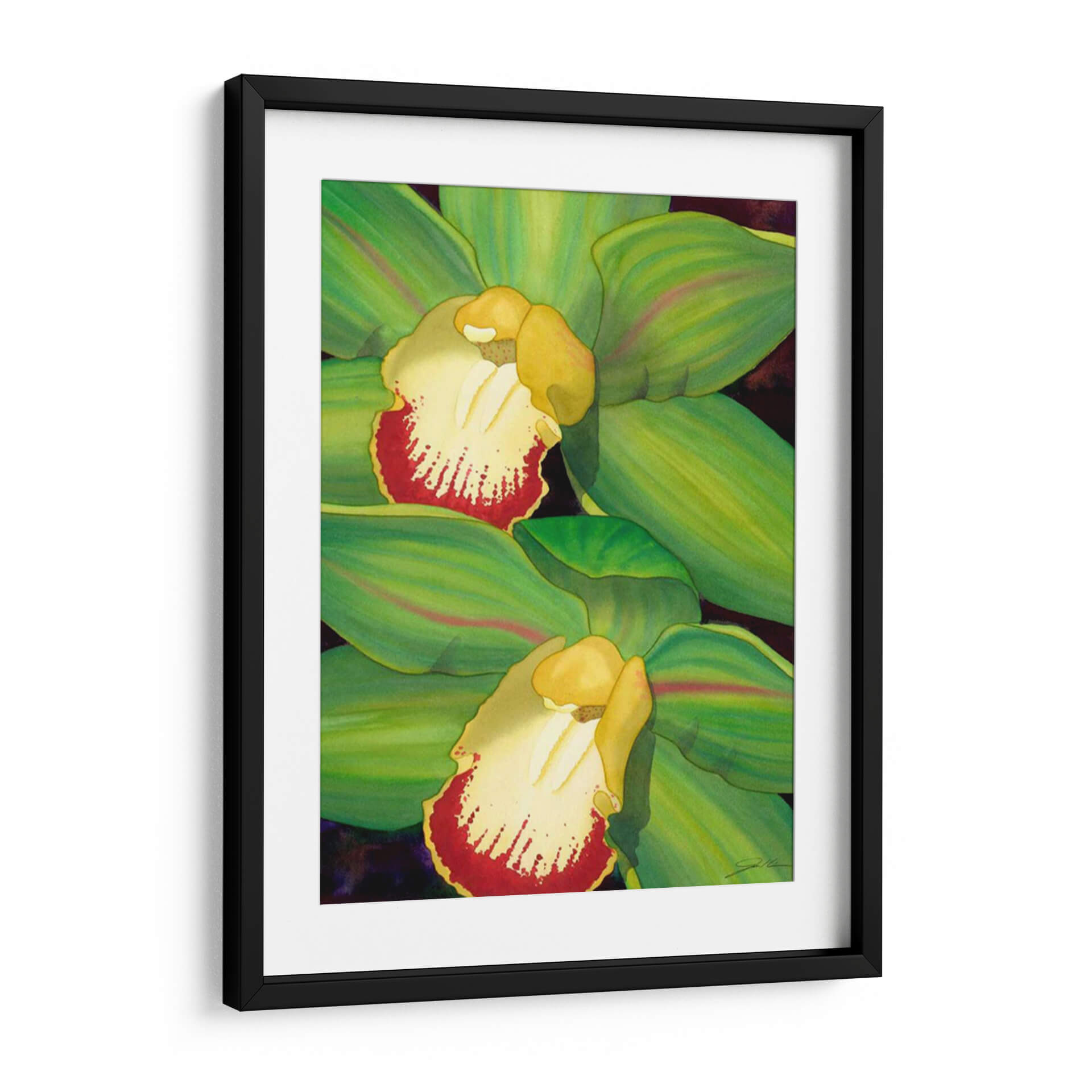 Sumérgete en la exuberante belleza de "Cal Orquídea I", una obra de arte vibrante del artista Jason Higby. Este cuadro decorativo captura la esencia delicada y exótica de las orquídeas en un primer plano detallado, invitando a la contemplación y a la serenidad. La paleta de colores se centra en verdes intensos y hoja ancha, con toques de amarillo brillante en el centro de la flor y un audaz borde carmesí que añade profundidad y un contraste fascinante. La técnica pictórica, con pinceladas que sugieren movimiento y vida, dota a la orquídea de una presencia casi palpable. La composición se enfoca en dos flores principales, dispuestas de forma que guían la mirada del espectador a través de la sutileza de sus pétalos y la intrincada textura de sus centros. "Cal Orquídea I" es perfecta para añadir un toque de naturaleza sofisticada y color a cualquier espacio, ya sea una sala de estar moderna, un dormitorio tranquilo o una oficina que busca inspiración. Este cuadro decorativo es ideal para quienes aprecian la belleza botánica y desean infundir a su hogar una atmósfera de calma y elegancia natural. Descubre cómo esta pieza puede transformar tu ambiente y convertirse en el punto focal de tus conversaciones.