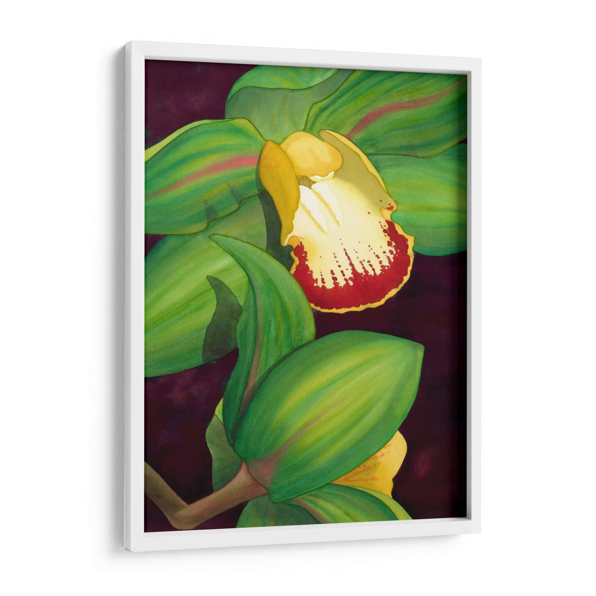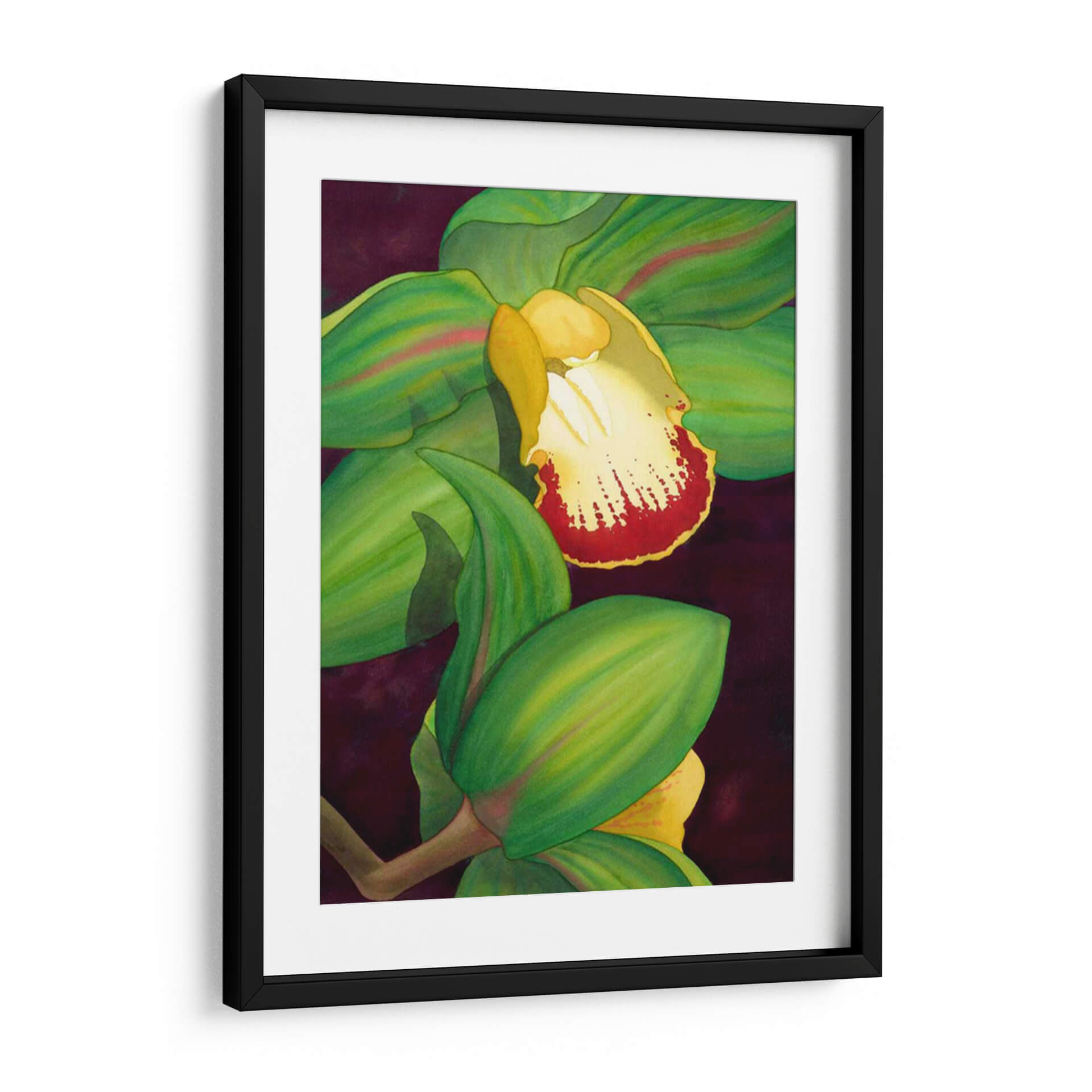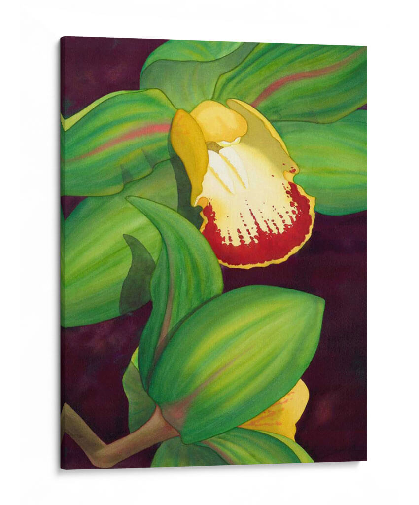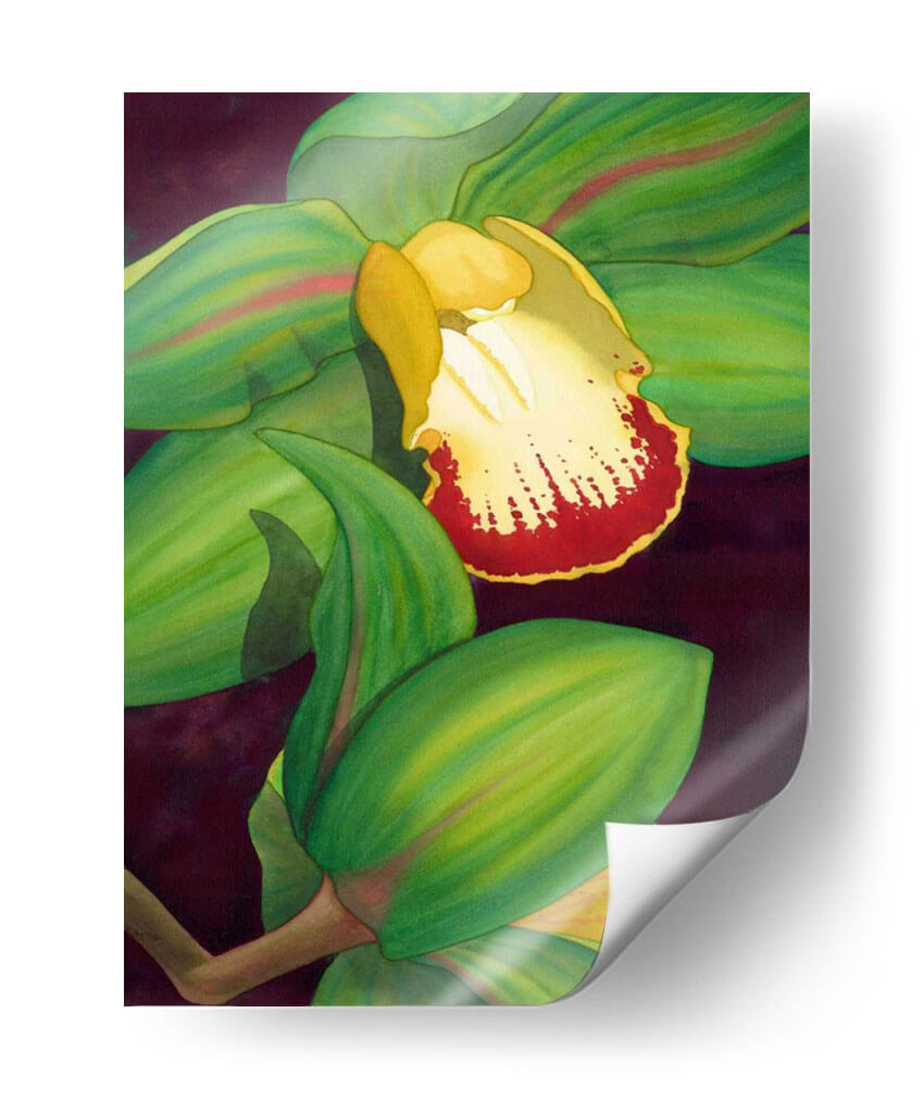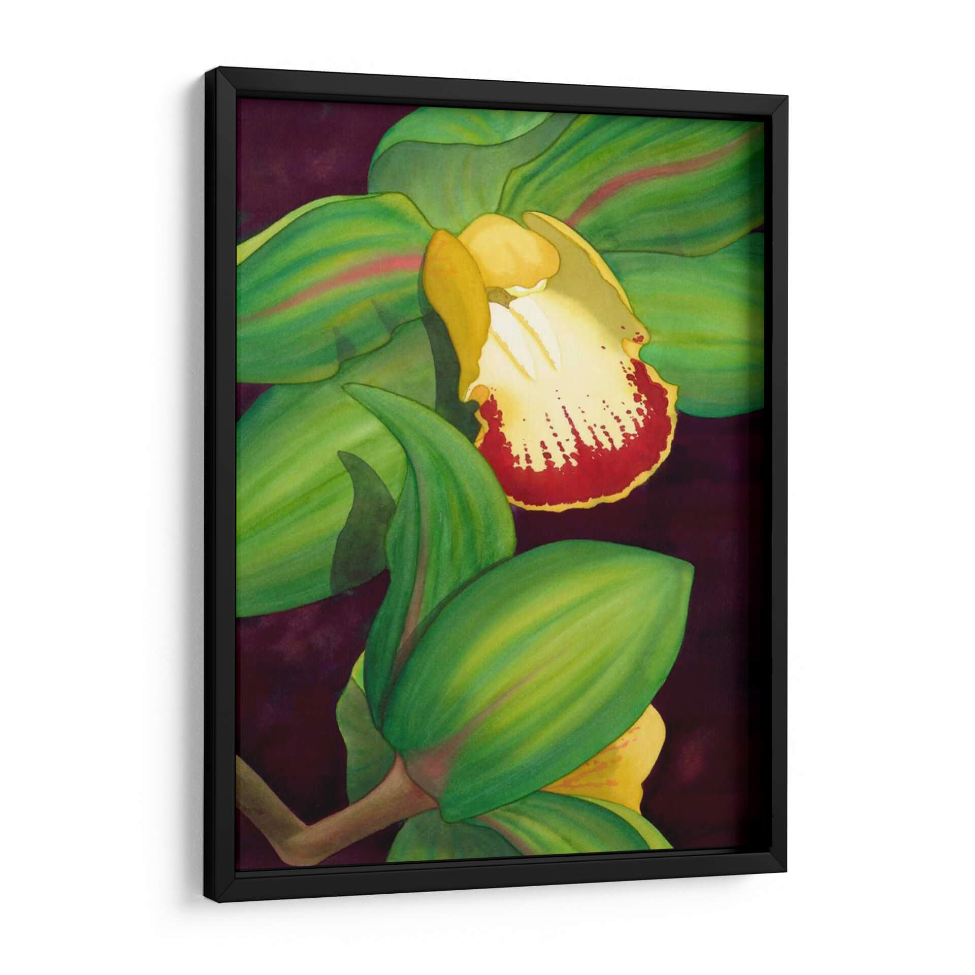 Sumérgete en la exuberante belleza de "Cal Orquídea II", una obra de arte cautivadora del artista Jason Higby que celebra la magnificencia de la naturaleza. Este cuadro decorativo presenta una orquídea vibrante en primer plano, con pétalos verdes intensos que contrastan maravillosamente con el delicado amarillo y rojo de su centro. La técnica pictórica y la paleta de colores, dominada por verdes profundos, amarillos luminosos y toques de carmesí sobre un fondo oscuro y rico, crean una atmósfera de misterio y elegancia. La composición se centra en la forma intrincada de la flor, invitando al espectador a apreciar cada detalle y textura. "Cal Orquídea II" es perfecta para añadir un toque de sofisticación botánica a tu sala de estar, un rincón de tranquilidad a tu dormitorio o un acento de color a tu oficina. Este cuadro es ideal para amantes de las flores, el arte botánico y las piezas que evocan calma y admiración. Transforma tu espacio con esta impresionante representación de una orquídea, una pieza que sin duda será un punto focal y tema de conversación.