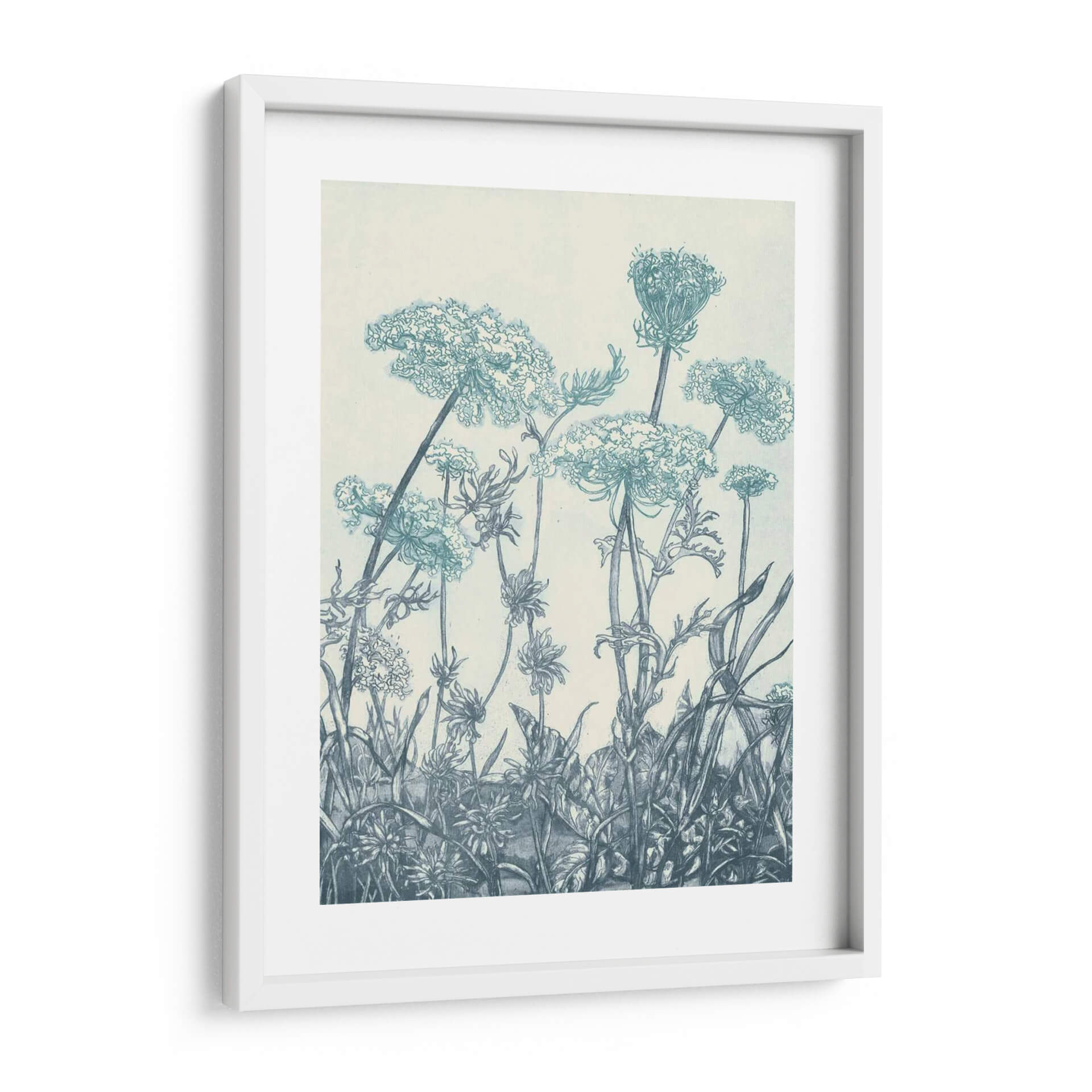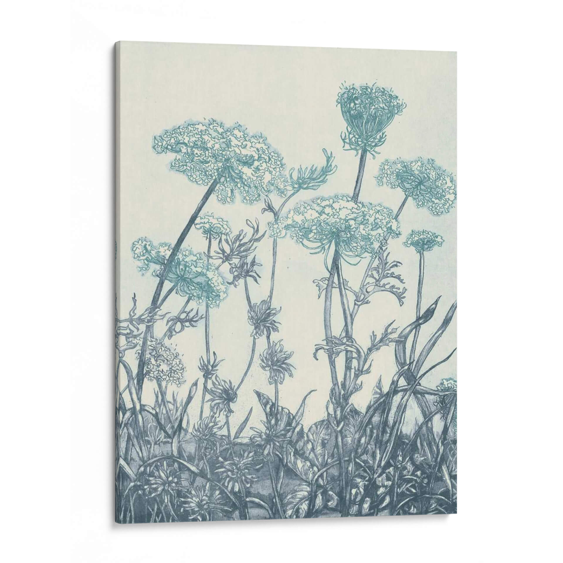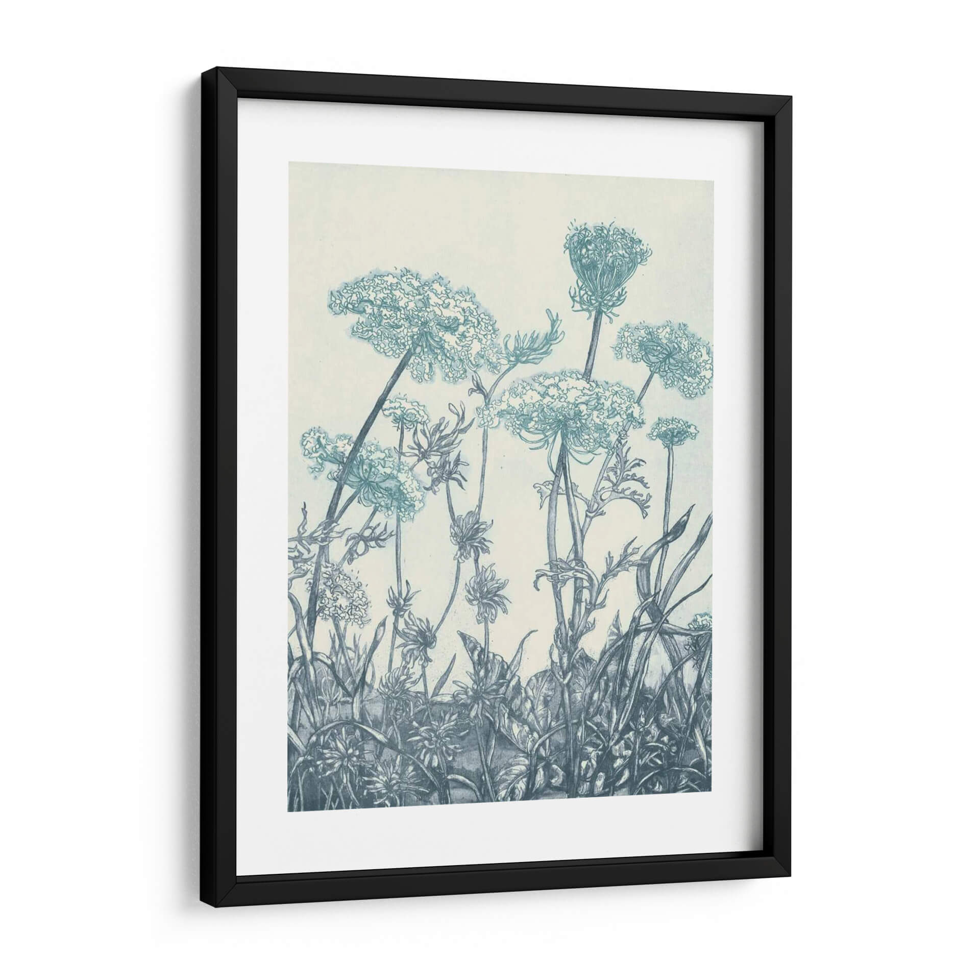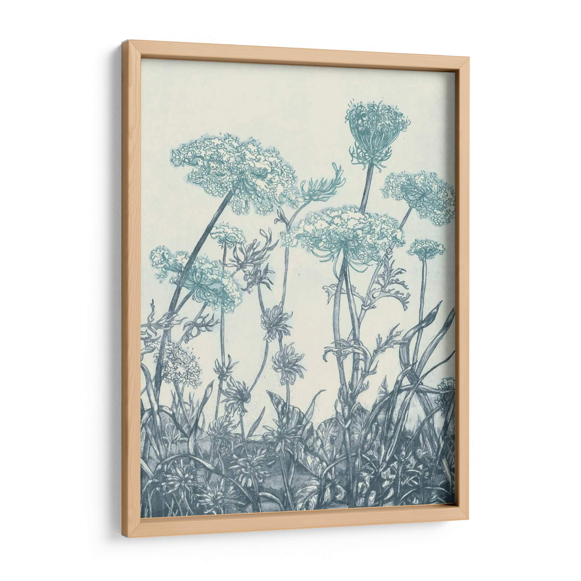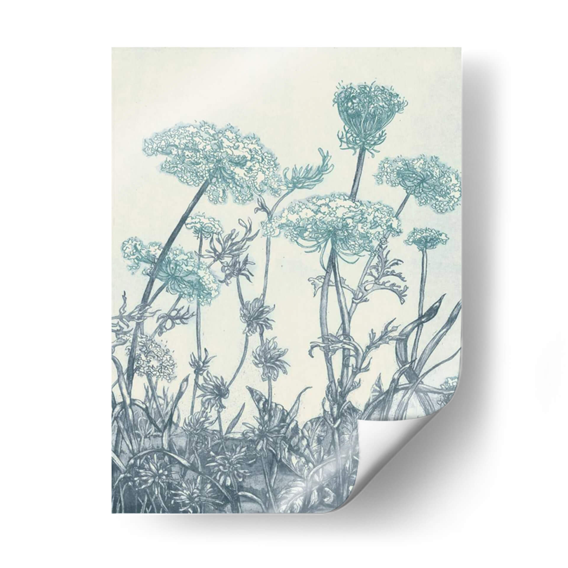 Sumérgete en la serena belleza de "Campos de Índigo I", una obra de arte que captura la delicadeza de la naturaleza con un estilo evocador y detallado. Este cuadro decorativo presenta una intrincada representación de flores silvestres y vegetación, dibujadas con trazos finos que sugieren una técnica de grabado o linograbado. La paleta de colores se centra en tonos de índigo y azules profundos sobre un fondo neutro, creando una atmósfera de calma y contemplación. La composición, que se eleva desde la parte inferior, guía la mirada a través de capullos etéreos y tallos esbeltos, invitando a la reflexión sobre la fragilidad y la resiliencia del mundo natural. "Campos de Índigo I" es ideal para añadir un toque de elegancia botánica y tranquilidad a cualquier espacio, ya sea un dormitorio, una sala de estar o un estudio. Su estilo clásico pero contemporáneo lo convierte en una pieza versátil, perfecta para quienes buscan infundir serenidad y un sentido de conexión con la naturaleza en su decoración.