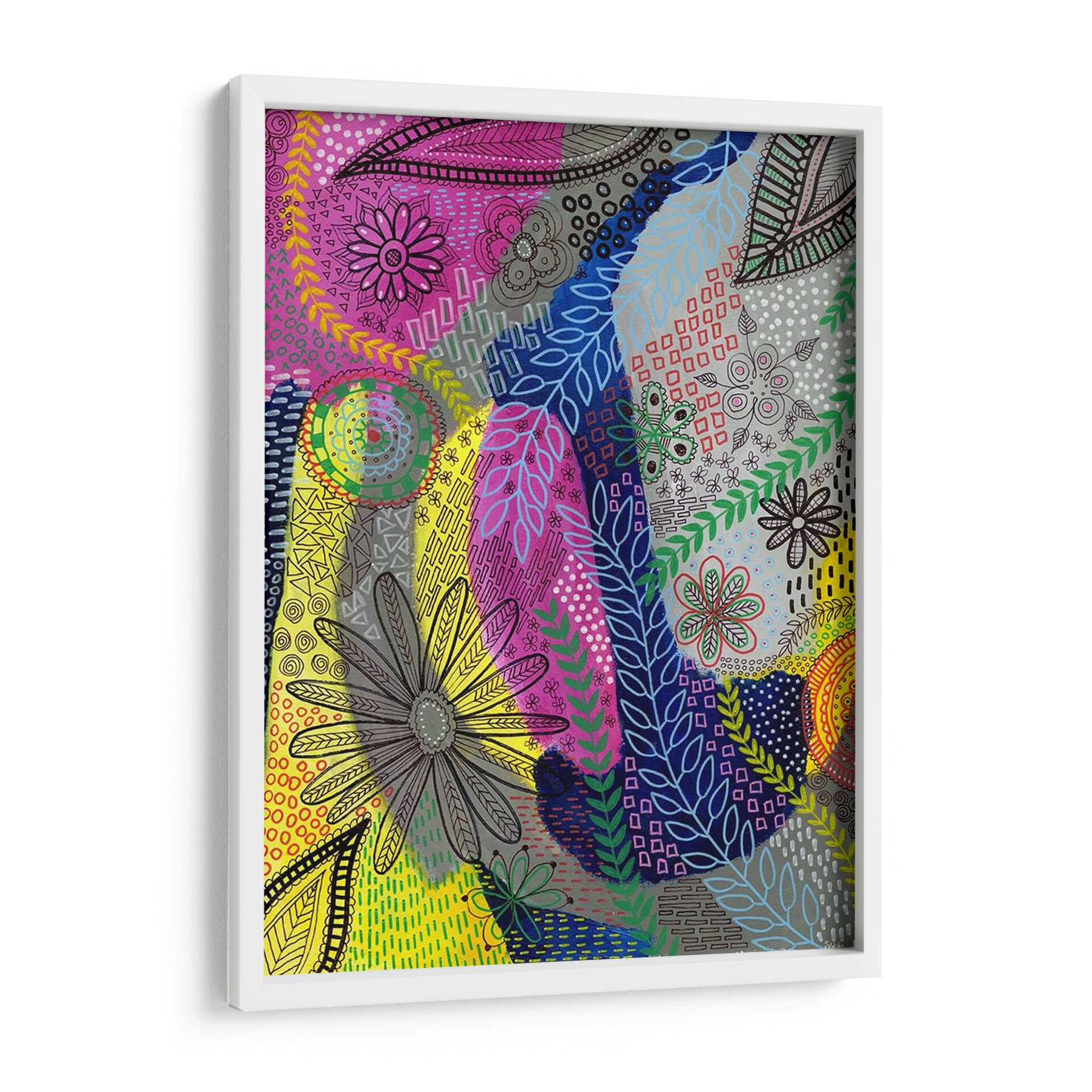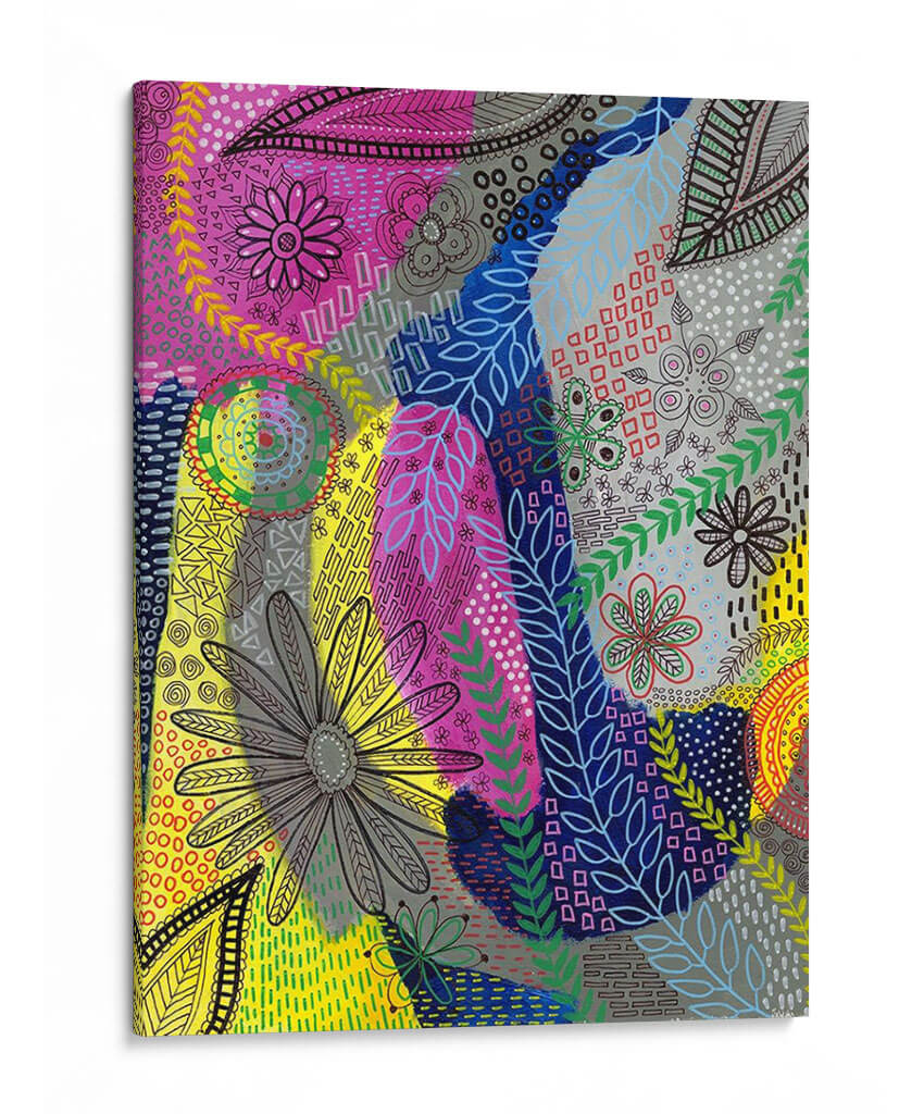Sumérgete en la vibrante y enérgica obra de arte "Caótico II" de Regina Moore, una pieza que desafía la percepción con su audaz estallido de color y patrón. Esta composición abstracta es un festín visual, donde formas orgánicas y geométricas se entrelazan en una danza dinámica. Predominan los tonos vibrantes como el fucsia, azul eléctrico y amarillo sol, contrastando con áreas de gris y negro que aportan profundidad y sofisticación. La obra presenta una intrincada red de motivos florales estilizados, hojas y texturas que recuerdan a mandalas y diseños tribales, creando una sensación de movimiento perpetuo y complejidad fascinante. "Caótico II" es ideal para infundir vida y personalidad a cualquier espacio, ya sea una sala de estar moderna, un estudio creativo o una oficina contemporánea. Su riqueza de detalles invita a la contemplación, ofreciendo nuevas descubrimientos en cada mirada. Transforma tu entorno con este cuadro decorativo que evoca alegría, creatividad y una energía contagiosa, convirtiéndose en el punto focal que capturará la atención y estimulará la conversación.