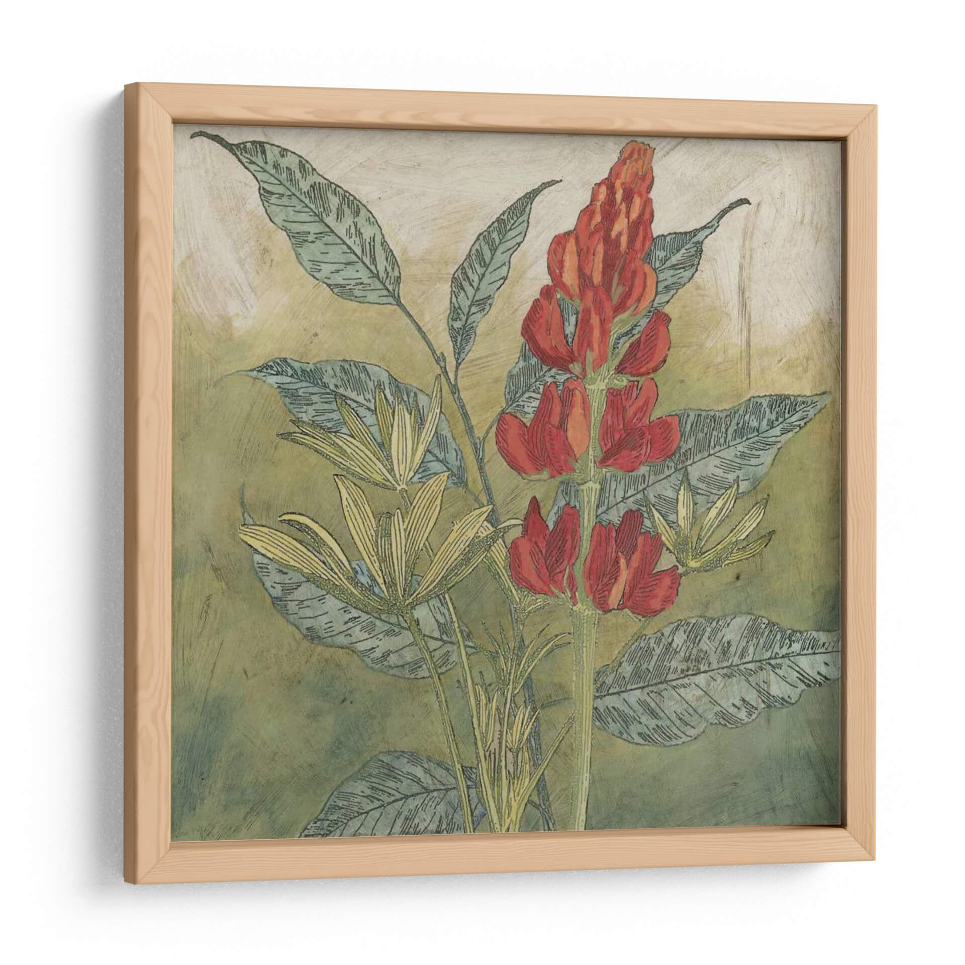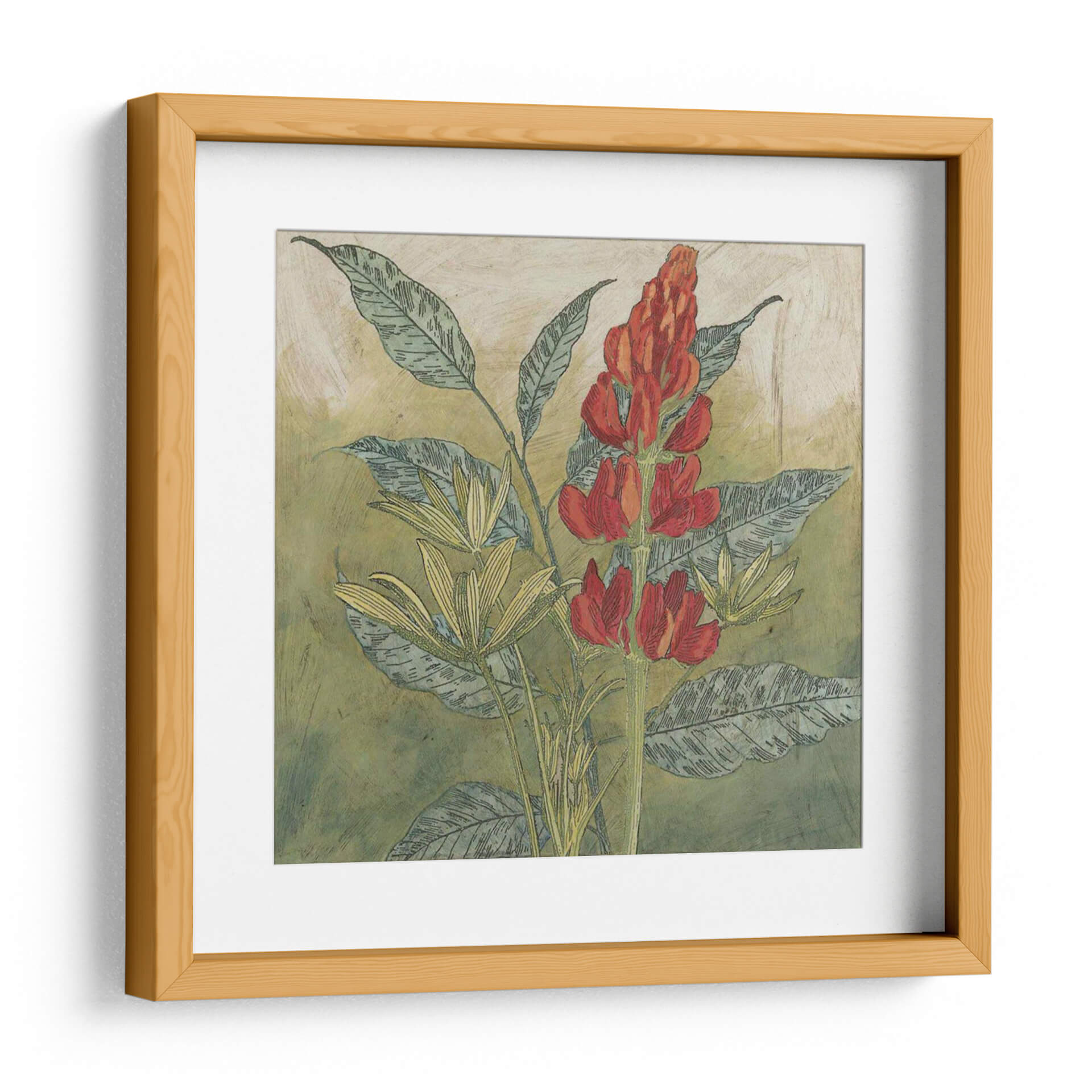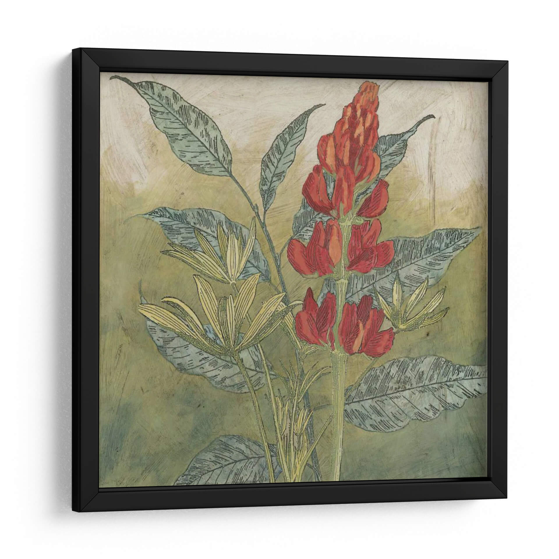 Inyecta vitalidad y elegancia botánica a tu hogar con "Carmesí Tropical II", una cautivadora obra de arte de Megan Meagher. Este cuadro decorativo presenta un vibrante ramo de flores rojas intensas y delicados brotes amarillos, rodeados de exuberantes hojas de un verde profundo. La paleta de colores, dominada por cálidos tonos rojizos y terrosos, crea una atmósfera acogedora y natural, mientras que el fondo texturizado aporta profundidad y un toque rústico. El estilo de la obra, que evoca la delicadeza de las xilografías o grabados antiguos, realza la belleza intrínseca de la flora, invitando a la contemplación. La composición, centrada en la majestuosidad de la flor principal, atrae la mirada y genera un punto focal dinámico en cualquier estancia. "Carmesí Tropical II" es la elección perfecta para quienes buscan añadir un toque de naturaleza sofisticada y color a salones modernos, comedores elegantes o espacios que necesiten un soplo de aire fresco y vitalidad. Transforma tus paredes en un jardín interior que inspire calma y belleza cada día.