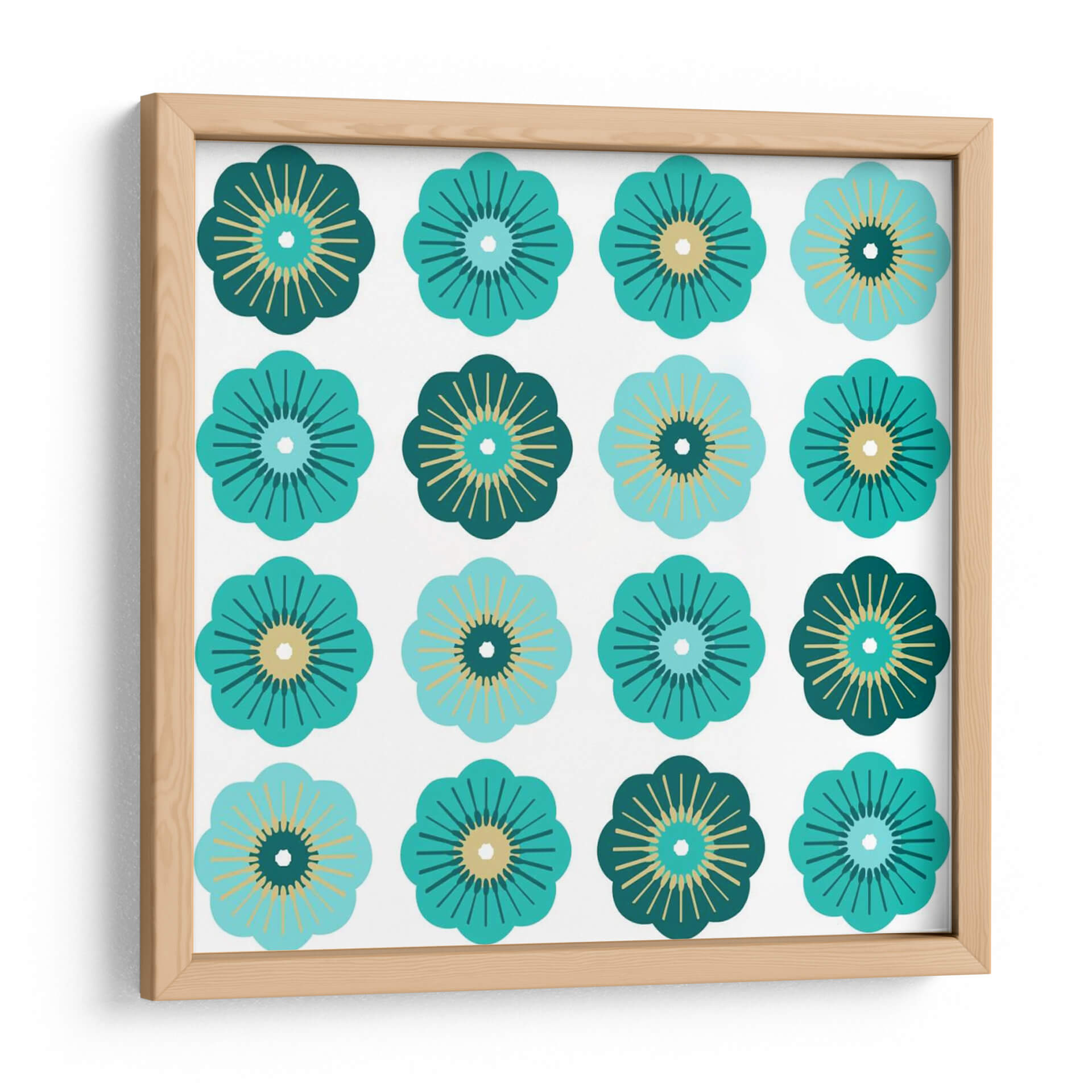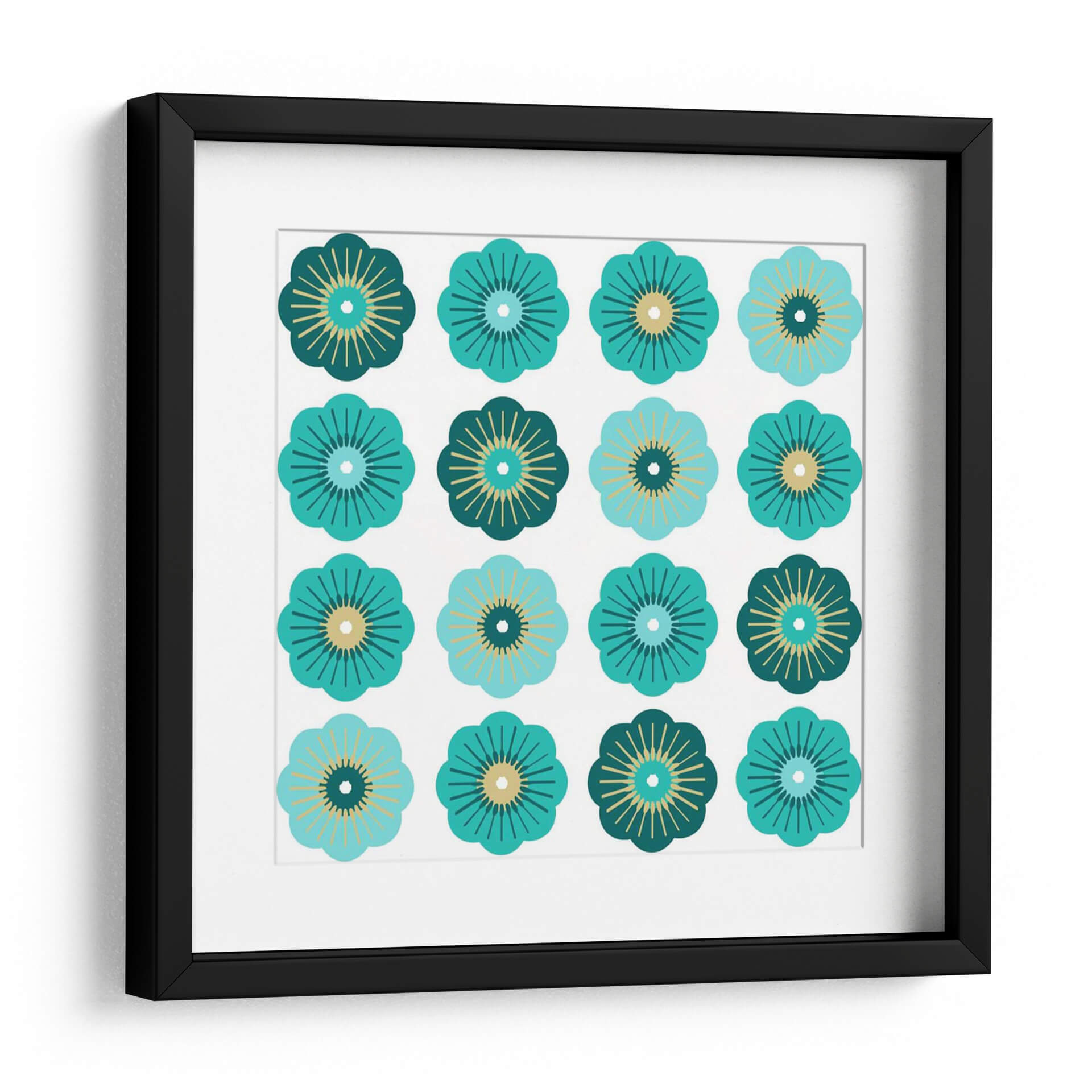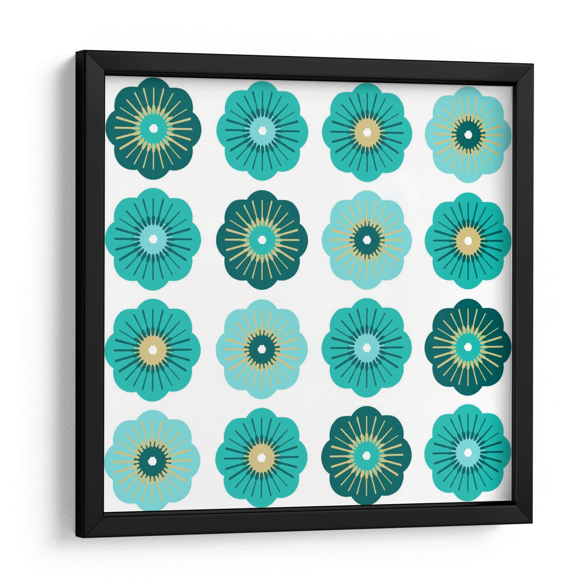 Embellece tu espacio con "Charms Iv", una obra de arte contemporáneo de Nicole Ketchum que captura la delicadeza de la naturaleza a través de un diseño geométrico y repetitivo. Este cuadro decorativo presenta una cuadrícula de flores estilizadas en vibrantes tonos de verde azulado, turquesa y acentos dorados sobre un fondo limpio y luminoso. Cada flor, con sus pétalos simétricos y un centro detallado, evoca una sensación de orden y armonía visual. El estilo gráfico y moderno de "Charms Iv" lo convierte en una pieza versátil, ideal para añadir un toque de color y sofisticación a cualquier ambiente, desde una sala de estar minimalista hasta una oficina moderna o un dormitorio sereno. La repetición de los motivos florales crea un ritmo visual cautivador que invita a la contemplación y añade profundidad a tu decoración. Descubre cómo esta pieza puede transformar tu hogar u oficina, aportando un aire de frescura y estilo artístico que reflejará tu buen gusto. Es una elección perfecta para quienes buscan arte decorativo que combine diseño contemporáneo con una estética inspirada en elementos naturales.