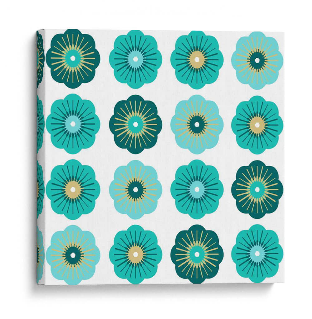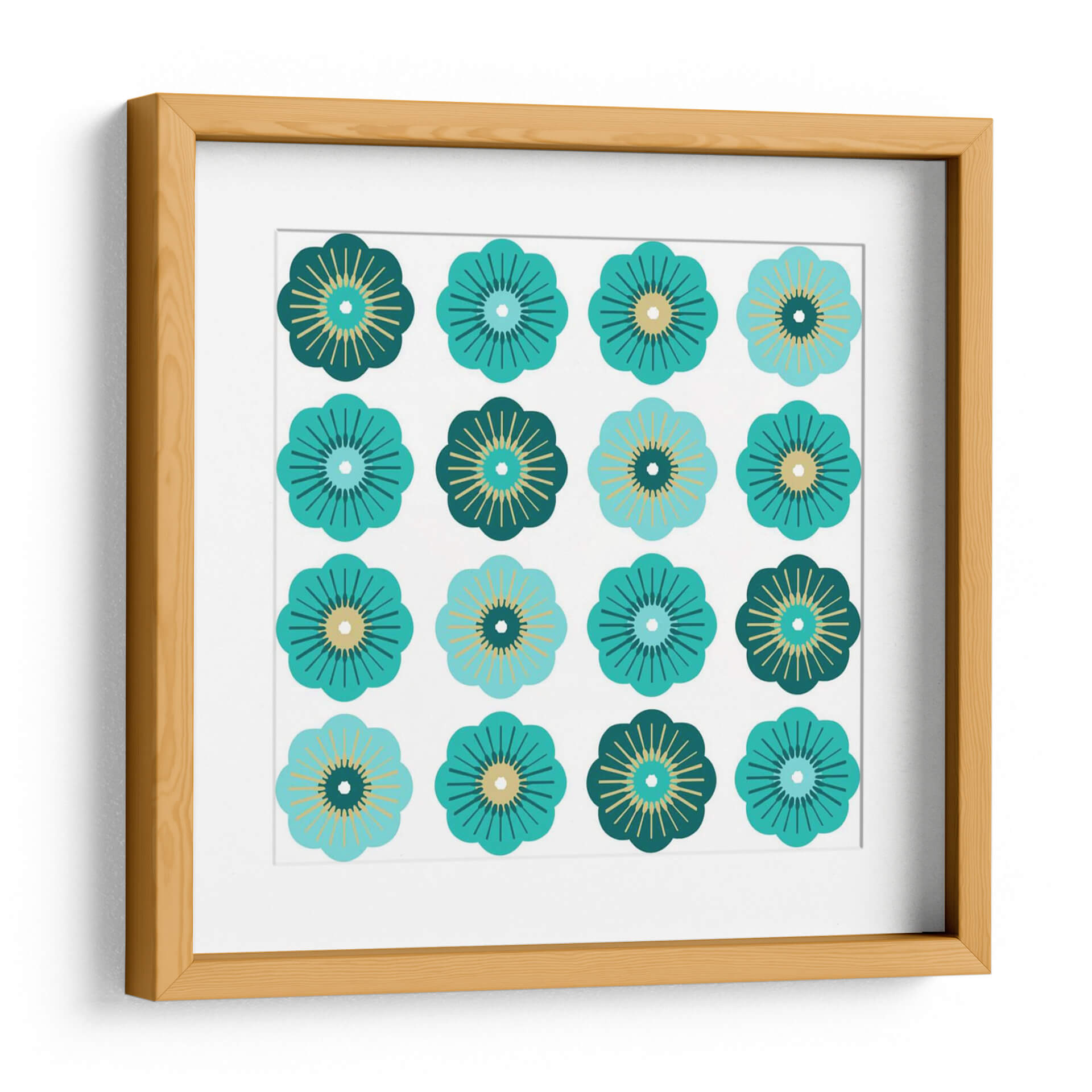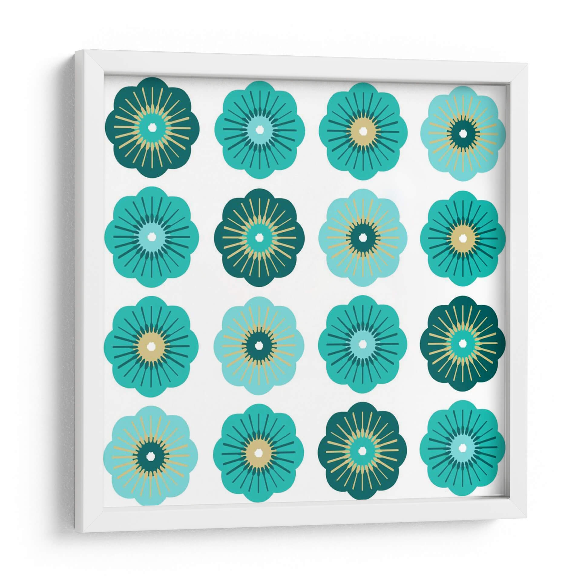 Embellece tu espacio con "Charms Iv", una obra de arte contemporáneo de Nicole Ketchum que captura la delicadeza de la naturaleza a través de un diseño geométrico y repetitivo. Este cuadro decorativo presenta una cuadrícula de flores estilizadas en vibrantes tonos de verde azulado, turquesa y acentos dorados sobre un fondo limpio y luminoso. Cada flor, con sus pétalos simétricos y un centro detallado, evoca una sensación de orden y armonía visual. El estilo gráfico y moderno de "Charms Iv" lo convierte en una pieza versátil, ideal para añadir un toque de color y sofisticación a cualquier ambiente, desde una sala de estar minimalista hasta una oficina moderna o un dormitorio sereno. La repetición de los motivos florales crea un ritmo visual cautivador que invita a la contemplación y añade profundidad a tu decoración. Descubre cómo esta pieza puede transformar tu hogar u oficina, aportando un aire de frescura y estilo artístico que reflejará tu buen gusto. Es una elección perfecta para quienes buscan arte decorativo que combine diseño contemporáneo con una estética inspirada en elementos naturales.