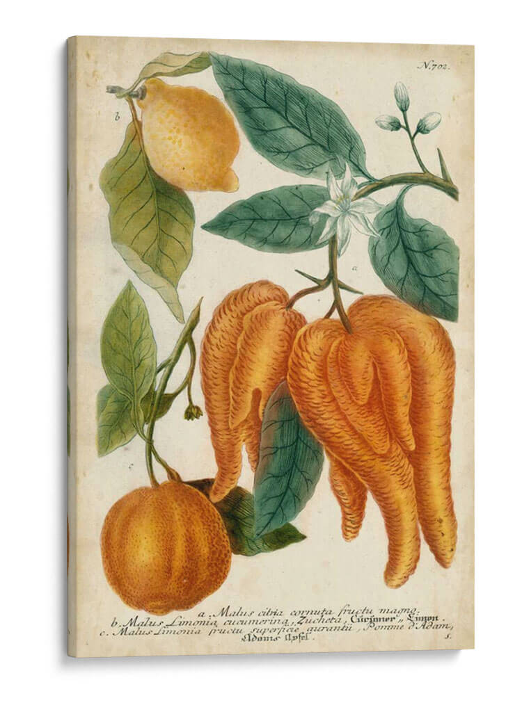 Embellece tu espacio con "Cítricos Exóticos I", una obra de arte vibrante que captura la exuberancia de la naturaleza con un estilo botánico clásico. Este cuadro decorativo presenta una detallada ilustración de frutas cítricas, destacando la singular forma de los cidros y la textura de los limones, rodeados de hojas verde intenso y delicadas flores. La paleta de colores, dominada por cálidos tonos anaranjados y amarillos, contrastados con el profundo verde de la vegetación, aporta una sensación de vitalidad y frescura a cualquier ambiente. La composición, inspirada en grabados botánicos antiguos, combina precisión científica con una estética refinada, creando un punto focal cautivador. Ideal para cocinas, comedores, salas de estar modernas o incluso oficinas, este cuadro decorativo es perfecto para quienes buscan añadir un toque de color, elegancia y un aire de sofisticación natural a su decoración. Transforma tu hogar u oficina con la belleza atemporal de la botánica y la riqueza de los cítricos exóticos, una pieza que sin duda inspirará conversaciones y admiración.