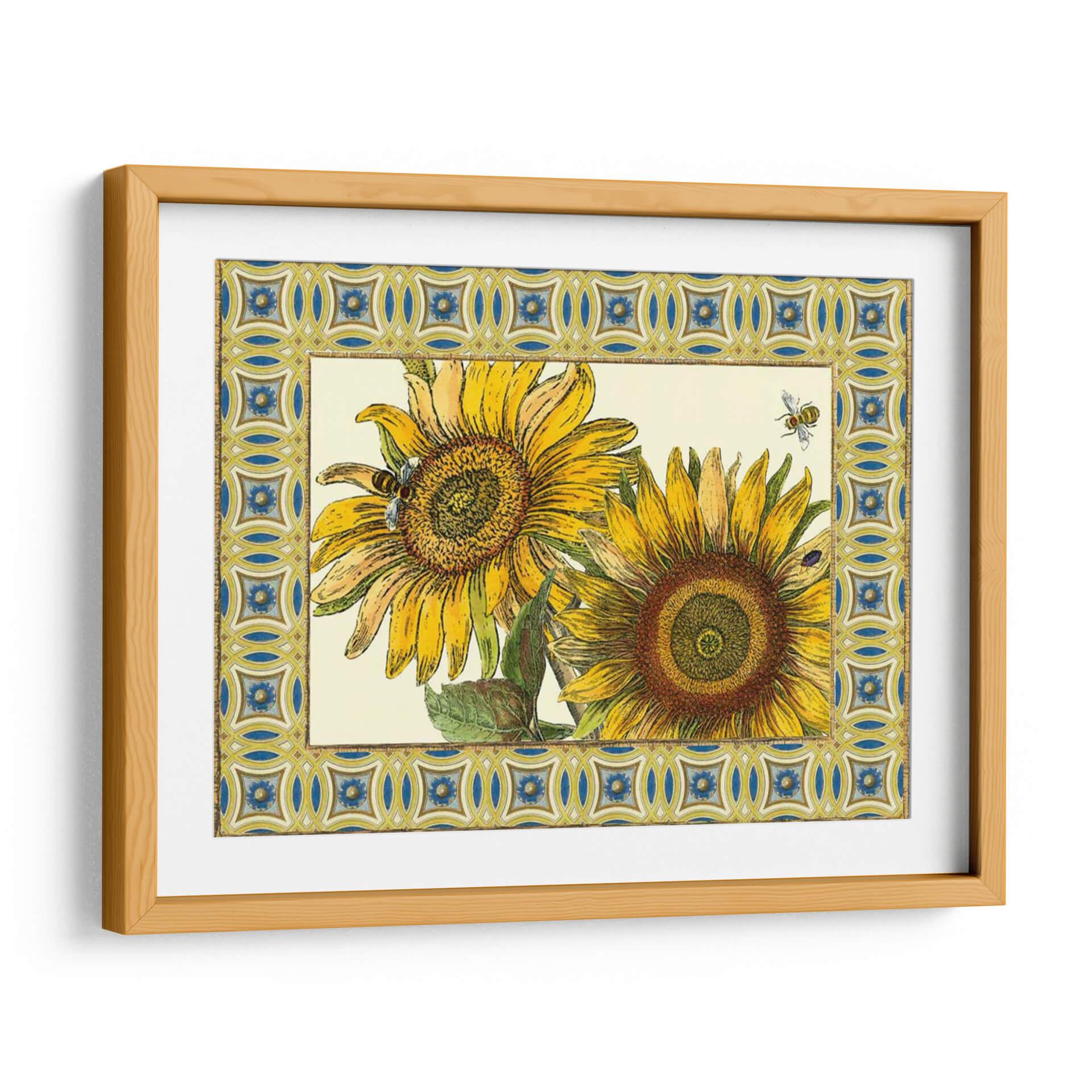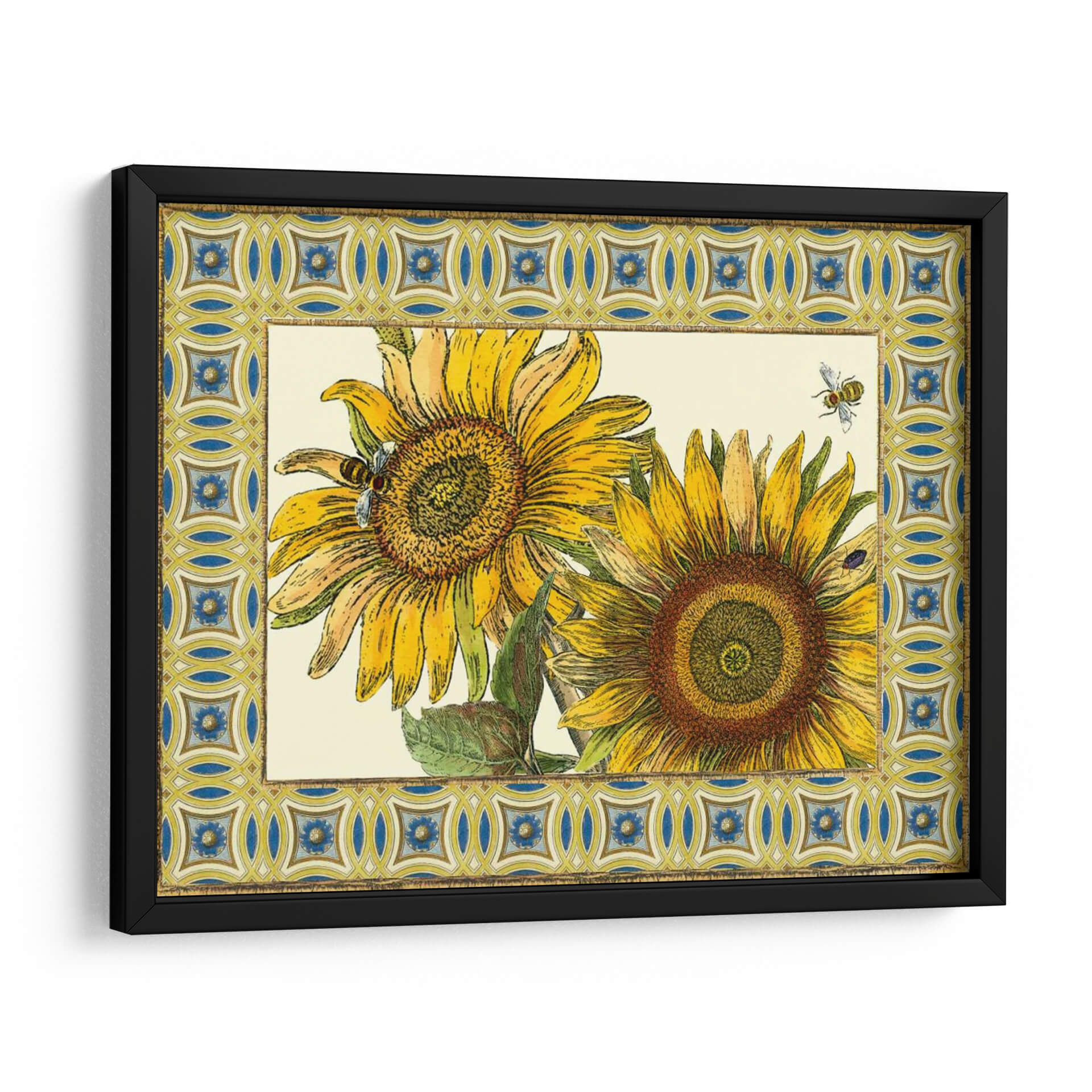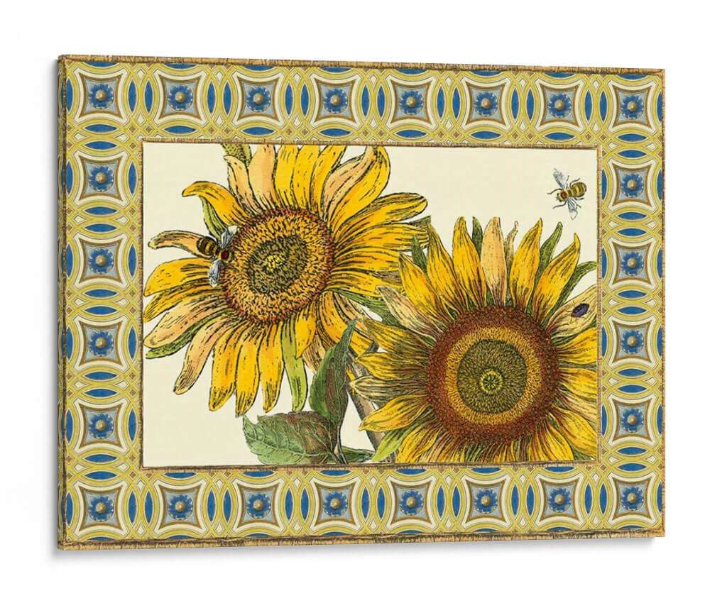 Infundido con la vibrante energía de la naturaleza, este cuadro decorativo 'Clásica Girasol II' de Vision Studio captura la esencia de la belleza veraniega. La obra presenta dos girasoles majestuosos en pleno apogeo, cuyas pétalos dorados se abren hacia la luz, evocando sentimientos de calidez y optimismo. La detallada ilustración, casi botánica, se ve realzada por la delicada presencia de abejas, que añaden un toque de vitalidad y simbolismo de la naturaleza trabajadora y la polinización. La paleta de colores, dominada por intensos amarillos y marrones cálidos, se complementa con toques de verde para las hojas y un sofisticado marco ornamental en tonos azules y dorados, que aporta un aire de elegancia clásica. Este cuadro decorativo es ideal para infundir alegría y un toque de sofisticación rústica en cualquier espacio, desde una acogedora sala de estar hasta un luminoso comedor o una entrada que busca dar la bienvenida con estilo. Su composición centralizada y el tema universalmente amado de los girasoles lo convierten en una pieza versátil, capaz de transformar ambientes y añadir un punto focal lleno de vida y color. Añade esta pieza inspiradora a tu colección y deja que su energía positiva ilumine tu hogar.