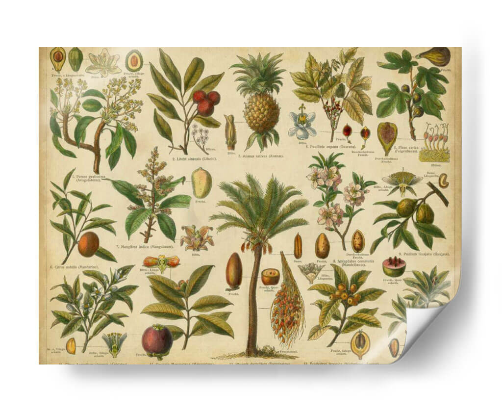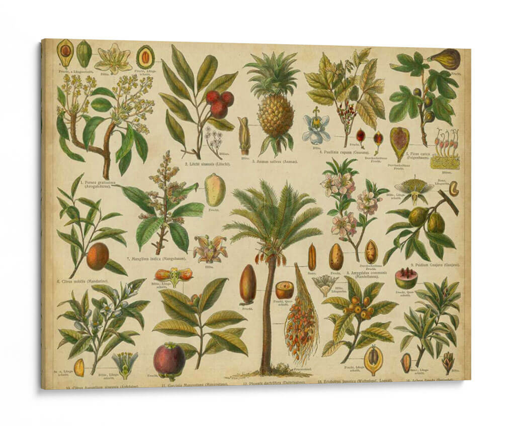 Transforma tu espacio con el 'Clasificación De Plantas Tropicales', una obra de arte inspirada en las láminas botánicas clásicas. Esta pieza visualmente rica te transporta a un jardín exótico, presentando una detallada y meticulosa representación de diversas plantas tropicales. Desde la exótica piña hasta la elegante palmera y los vibrantes frutos, cada elemento está capturado con una precisión que celebra la belleza de la naturaleza. La paleta de colores, dominada por tonos tierra, verdes profundos y acentos de frutas rojas y amarillas, crea una atmósfera de conocimiento y sofisticación natural. Perfecta para aulas, estudios botánicos, o para añadir un toque de encanto educativo y orgánico a tu hogar u oficina. Este cuadro decorativo es ideal para aquellos que aprecian la ciencia, la historia natural y el arte detallado. Su estilo retro y académico evoca una sensación de descubrimiento y admiración por el mundo vegetal, convirtiéndolo en un punto focal cautivador y educativo en cualquier ambiente. Añade un toque de historia natural a tu decoración.
