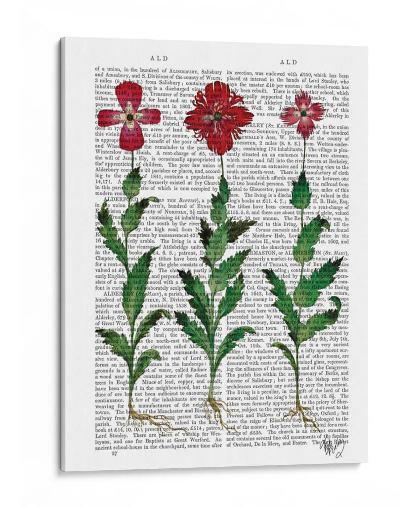 Transforma tu espacio con el cautivador cuadro decorativo 'Clavel Italiano 1' del artista Fab Funky. Esta obra, que fusiona la delicadeza botánica con un toque de arte contemporáneo, presenta vibrantes clavelinas rojas que emergen sobre un fondo de texto antiguo, creando un contraste visual fascinante. La paleta de colores, dominada por el rojo intenso de las flores y los tonos sepia y negros del papel envejecido, aporta profundidad y un aire de misterio a la pieza. La composición, que simula un estudio botánico histórico con un giro moderno, es ideal para añadir un punto focal elegante y lleno de carácter a tu sala de estar, estudio u oficina. "Clavel Italiano 1" no es solo una decoración de pared, es una invitación a la contemplación, perfecta para aquellos que aprecian la belleza de la naturaleza y el arte que cuenta una historia. Integra esta obra única en tu hogar para infundir sofisticación y un toque de intriga natural. Ideal para salones, comedores y espacios donde se busca una declaración de estilo distintiva y artística.