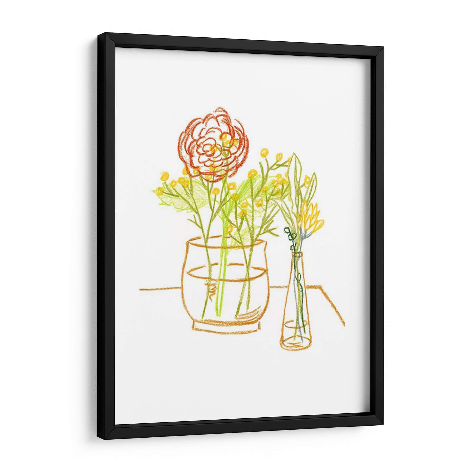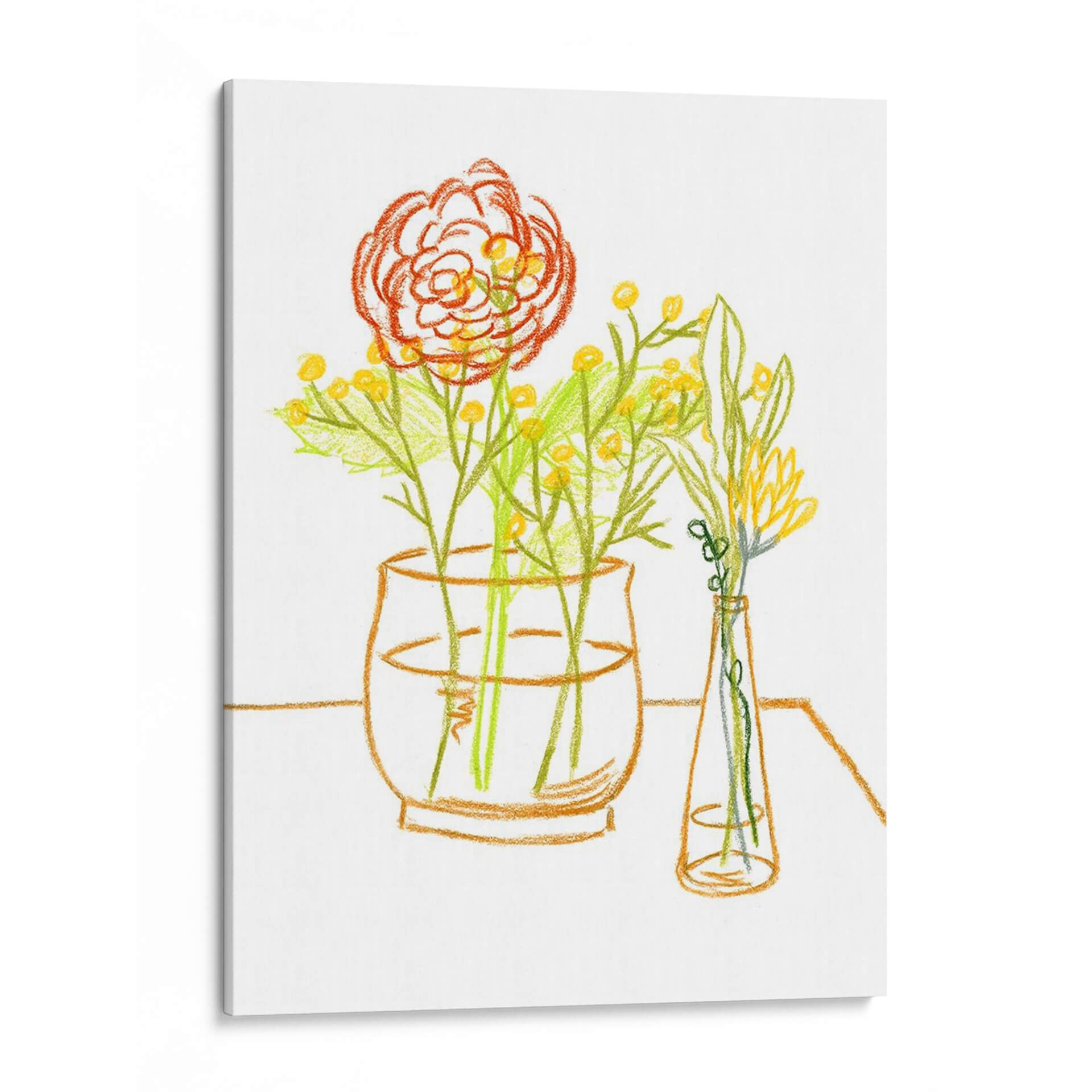 Inicia tu espacio con la vibrante frescura de "Comenzando Fresco Iv", una obra de arte contemporáneo de Melissa Wang. Este cuadro decorativo captura la delicadeza de un ramo de flores en plena floración, presentado con trazos audaces y una paleta de colores optimista. La composición presenta un llamativo arreglo floral en tonos naranjas y amarillos, contrastando suavemente con los verdes vibrantes de sus hojas y tallos. La técnica, que evoca un dibujo a lápiz de color o pastel, otorga a la pieza una cualidad artesanal y accesible, invitando a una contemplación serena y a la vez enérgica. Las formas sencillas pero expresivas, delineadas con trazos seguros, dan vida a las flores en un jarrón de cristal y otro de forma cónica. "Comenzando Fresco Iv" es ideal para añadir un toque de vitalidad y optimismo a cualquier habitación, desde una sala de estar moderna hasta un rincón acogedor de tu dormitorio o una oficina que necesite un respiro de color. Transmite una sensación de renovación y simplicidad elegante, perfecta para aquellos que buscan arte que eleve el espíritu y complemente su decoración con un estilo fresco y contemporáneo.