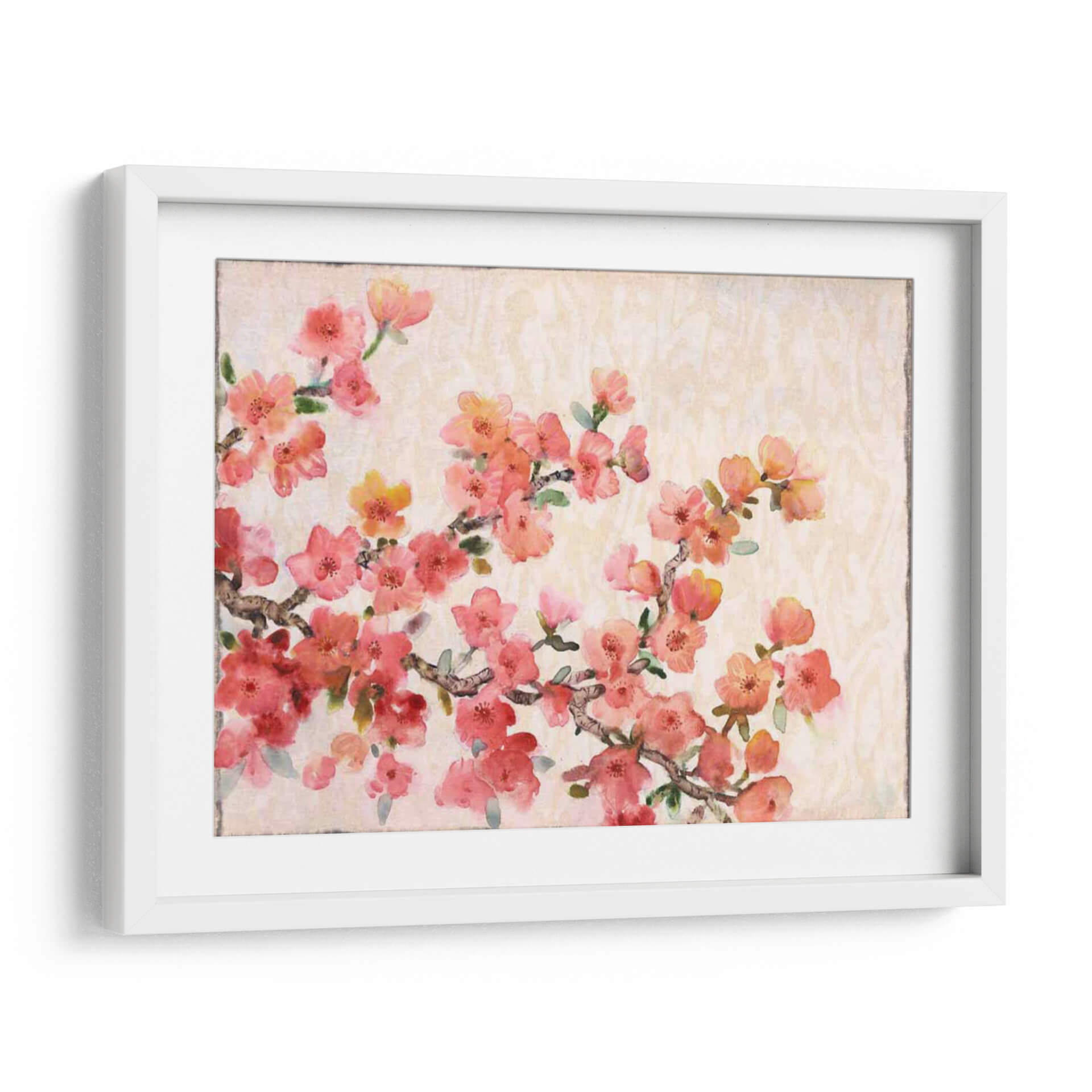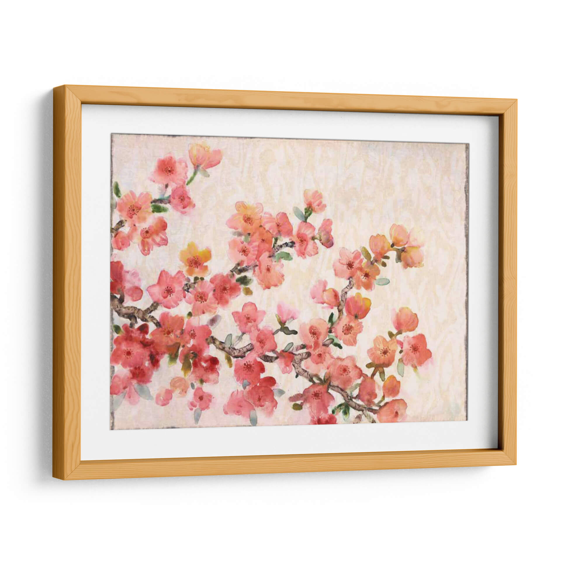 Sumérgete en la delicadeza de la naturaleza con "Composición De La Flor De Cerezo Ii", una obra de arte que captura la efímera belleza de la primavera. Este cuadro decorativo presenta un vibrante despliegue de flores de cerezo en tonos rosados y anaranjados, pintadas con una técnica que evoca la ligereza y transparencia de la acuarela. Las ramas, detalladas con trazos sutiles, se extienden a través de un fondo texturizado en tonos crema, creando una atmósfera serena y acogedora. La composición, que fluye diagonalmente, atrae la mirada y aporta dinamismo al espacio. Cada pétalo parece flotar, transmitiendo una sensación de paz y renovación, ideal para añadir un toque de serenidad a tu dormitorio, un rincón de lectura o incluso una entrada. El estilo pictórico, que combina realismo floral con un toque impresionista, hace de esta pieza una adición elegante a cualquier decoración contemporánea o tradicional. "Composición De La Flor De Cerezo Ii" es más que un simple cuadro; es una ventana a la calma y la belleza efímera, perfecta para quienes buscan infundir sus hogares con la delicadeza de la primavera y el arte contemporáneo.