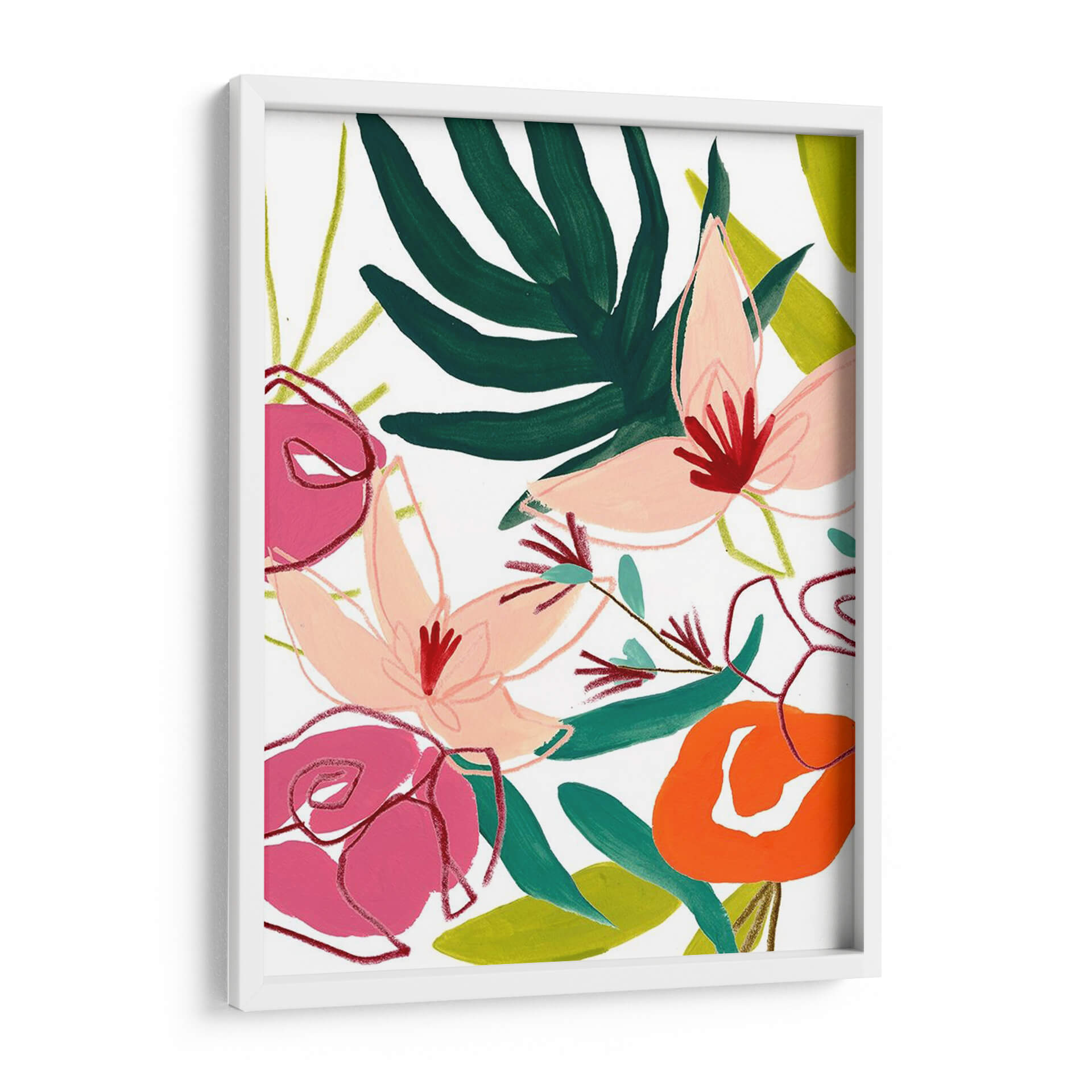 Sumérgete en la vibrante energía de "Confeti Tropical II", una obra de arte contemporáneo del artista June Erica Vess. Este cuadro decorativo es una explosión de color y forma, capturando la esencia de un paraíso tropical con un toque lúdico y moderno. La composición se adorna con hojas exuberantes en tonos verdes profundos, entrelazadas con flores delicadas en pasteles de melocotón y rosa, acentuadas por audaces toques de fucsia y naranja vibrante. Las líneas finas y los trazos expresivos añaden un dinamismo que invita a la contemplación, creando una atmósfera alegre y refrescante. La paleta de colores, aunque audaz, se equilibra magistralmente para no abrumar, haciendo de esta pieza un acento perfecto para cualquier espacio que busque vitalidad y un toque de naturaleza estilizada. "Confeti Tropical II" es ideal para infundir vida en salas de estar modernas, estudios creativos u oficinas, aportando una sensación de optimismo y escapismo. Transforma tu hogar en un oasis personal con este cautivador cuadro decorativo que evoca la belleza despreocupada de la flora tropical en un estilo abstracto y contemporáneo.