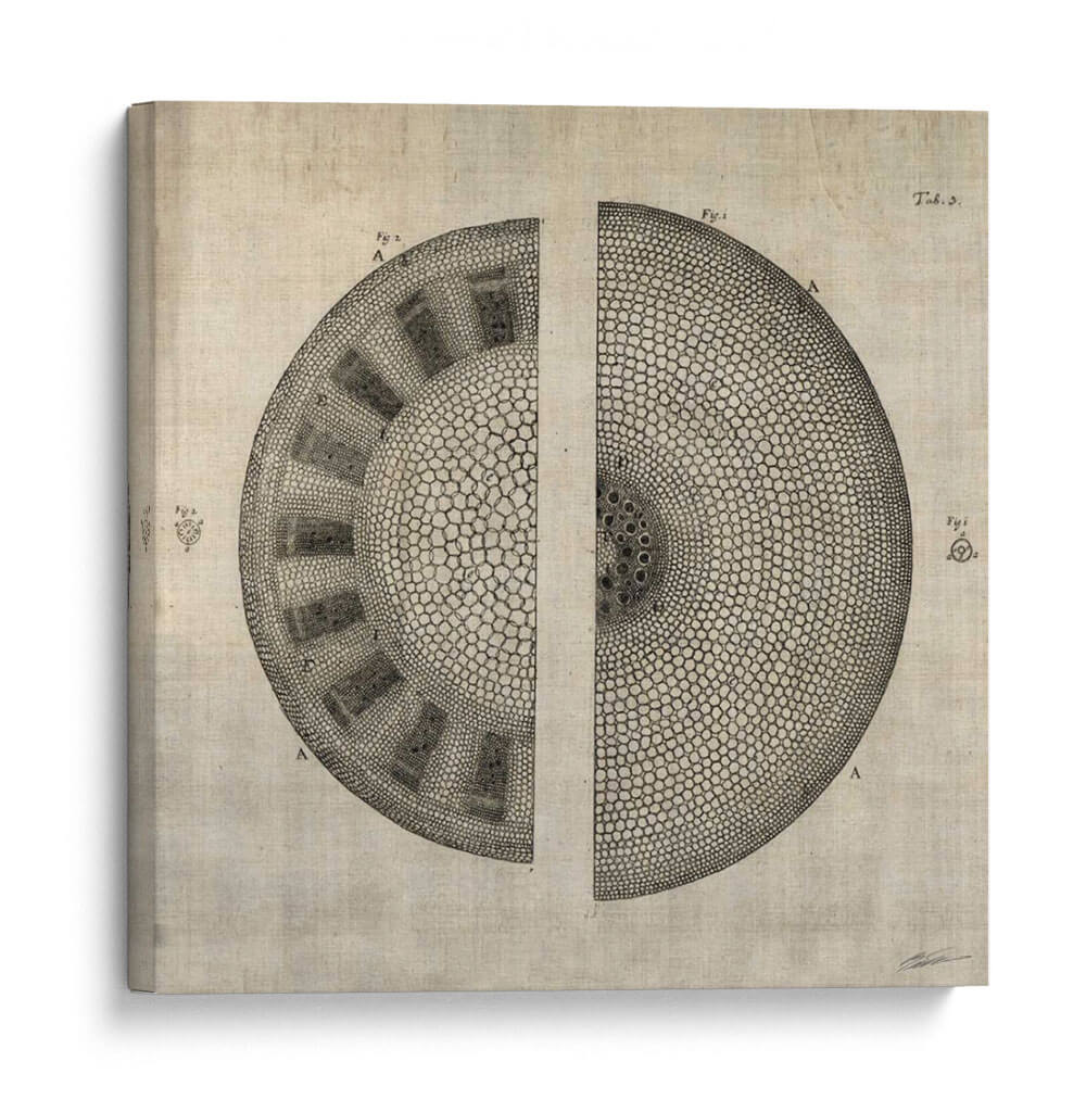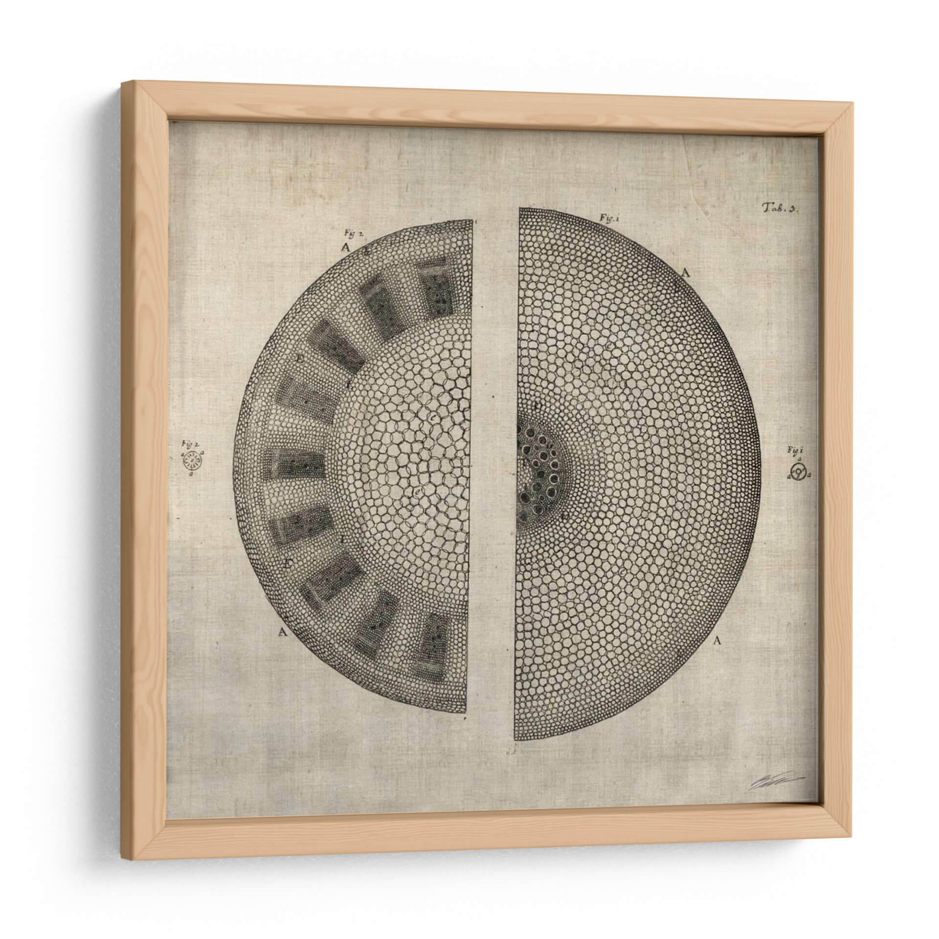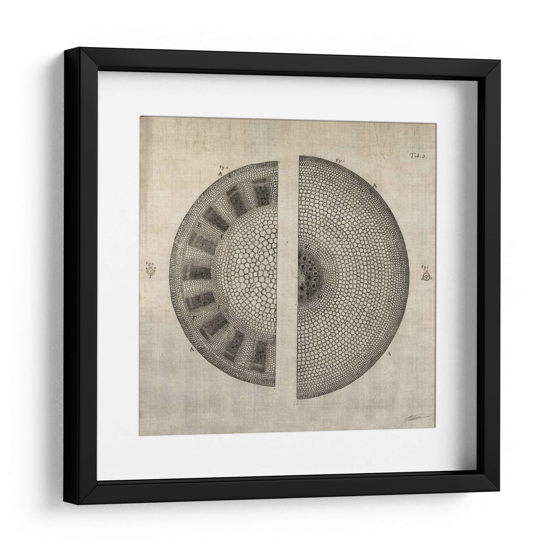 Sumérgete en la intrincada belleza de 'Corte Cruzado I', una obra de arte que captura la fascinación por la ciencia y la naturaleza. Este cuadro decorativo presenta un detallado grabado en blanco y negro de la sección transversal de una planta, dividido simétricamente para revelar la compleja estructura celular. Los tonos sepia y el estilo de ilustración botánica clásica aportan un aire de elegancia atemporal y rigor científico. La composición circular, con sus anillos concéntricos y patrones celulares meticulosamente representados, invita a la contemplación y al asombro. Ideal para despachos, estudios o cualquier espacio que busque un toque de sofisticación intelectual y un guiño a la belleza oculta en el mundo natural. 'Corte Cruzado I' es más que una simple decoración; es una ventana a la maravilla de la biología, perfecta para coleccionistas y amantes de la ciencia o aquellos que aprecian el arte con profundidad y detalle. Añade una pieza única que inspire curiosidad y admiración en tu hogar u oficina.