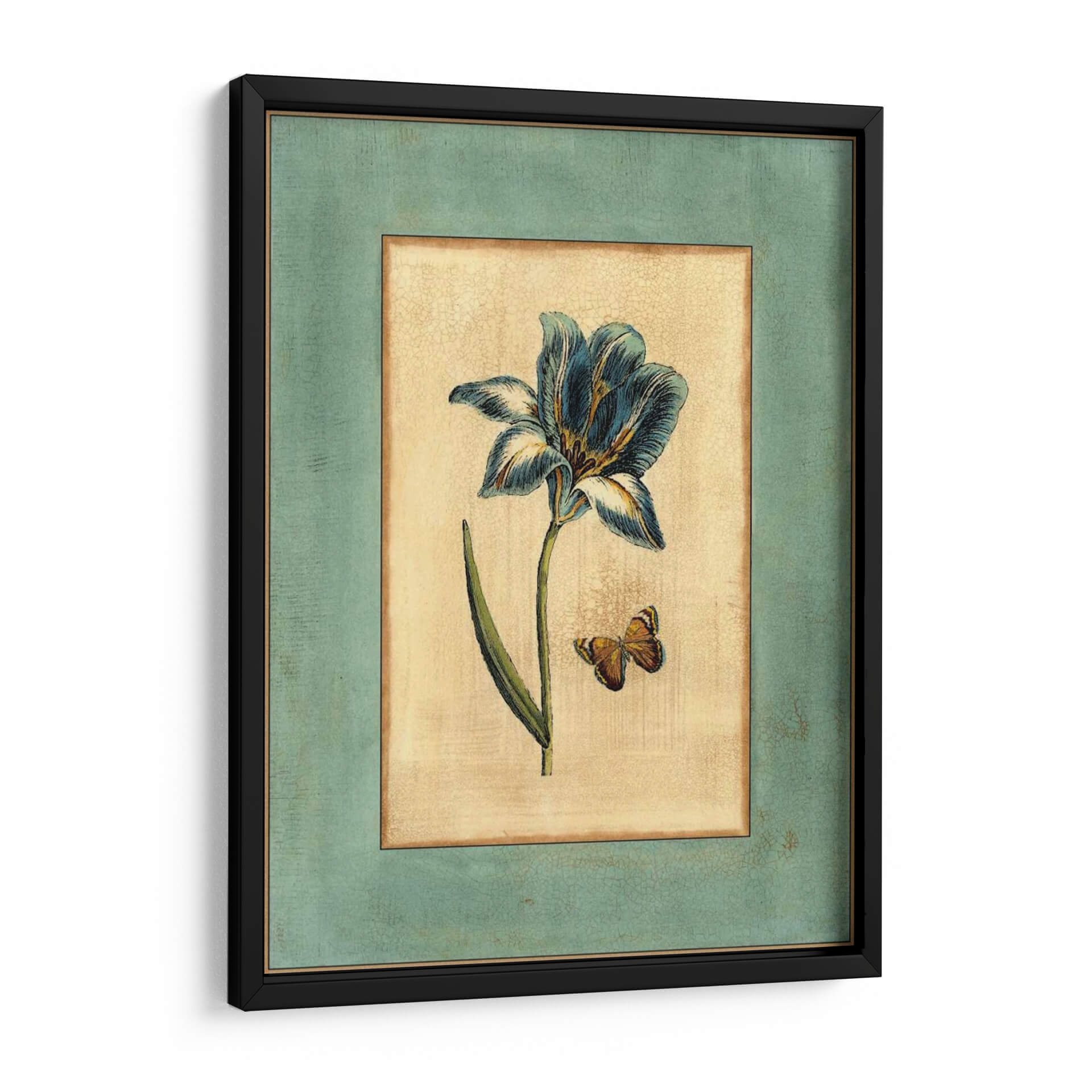 Transforma tu espacio con la delicada belleza del cuadro decorativo 'Craquelado Spa Tulipán Azul I'. Esta obra de arte captura la elegancia de un tulipán en plena floración, con pétalos de un profundo azul cobalto y acentos de blanco cremoso y toques dorados, creando un contraste sutil pero impactante. La composición se ve realzada por la presencia de una mariposa de tonos ocres, añadiendo un elemento de vida y movimiento a la escena botánica. El fondo, con su textura craquelada y tonalidades cálidas de beige y sepia, evoca una sensación de antigüedad y refinamiento, similar a un pergamino o un fresco clásico. El estilo, con reminiscencias de ilustraciones botánicas vintage pero ejecutado con una sensibilidad contemporánea, hace que esta pieza sea versátil. El tulipán, símbolo de amor y prosperidad, junto a la mariposa, que representa la transformación y la libertad, infunden una atmósfera de serenidad y delicadeza. Este cuadro decorativo es ideal para aportar un toque de naturaleza y sofisticación a cualquier habitación, desde una sala de estar acogedora hasta un dormitorio tranquilo o un estudio inspirador. Su paleta de colores y su temática clásica pero fresca lo convierten en una adición atemporal a tu decoración.