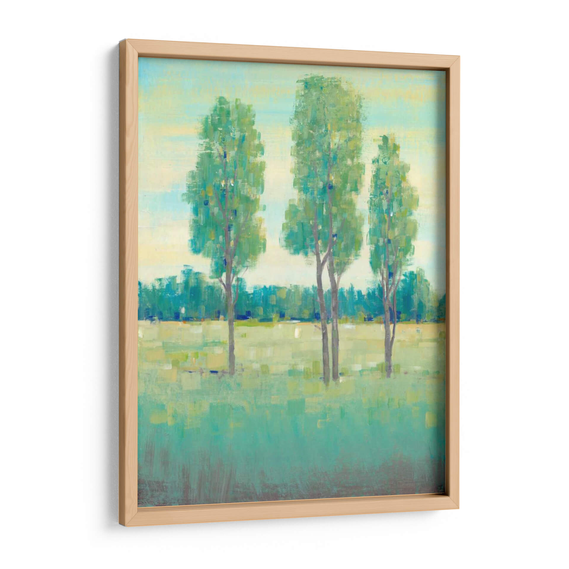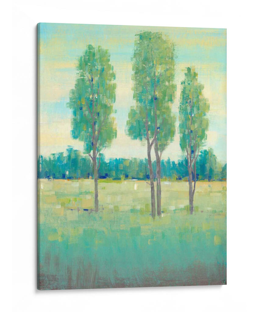 eca en un viaje visual con "Día de Primavera I", una obra de arte cautivadora del artista Tim O'Toole. Esta pieza evoca la serena belleza de una pradera en flor, capturando la esencia de un día primaveral con pinceladas expresivas y una paleta de colores refrescante. El cuadro presenta un grupo de esbeltos árboles que se alzan contra un cielo suavemente matizado, con el verde vibrante de la vegetación extendiéndose hasta el horizonte. Los tonos predominantes de verde, azul y amarillo se entrelazan para crear una atmósfera de tranquilidad y renovación, perfecta para cualquier espacio que busque un toque de naturaleza y luminosidad. El estilo impresionista y la composición equilibrada invitan a la contemplación, ofreciendo una ventana a un paisaje idílico. Ideal para salas de estar, dormitorios o cualquier rincón que necesite una dosis de calma y belleza natural, este cuadro decorativo es una adición inspiradora a tu hogar. Su diseño versátil lo hace perfecto para interiores modernos o rústicos, aportando una sensación de frescura y vitalidad que perdura.