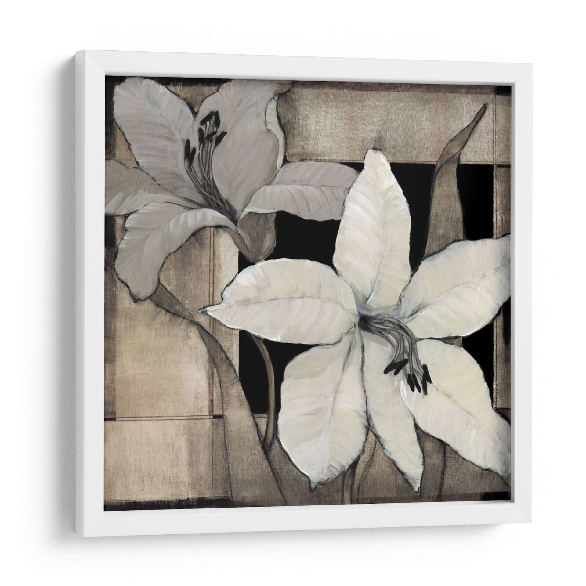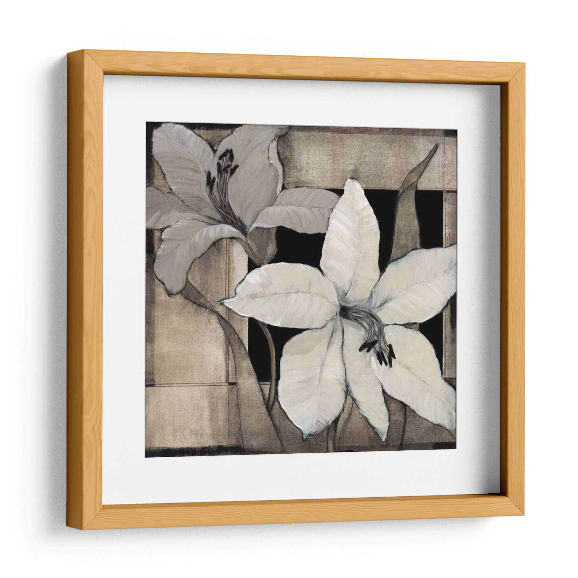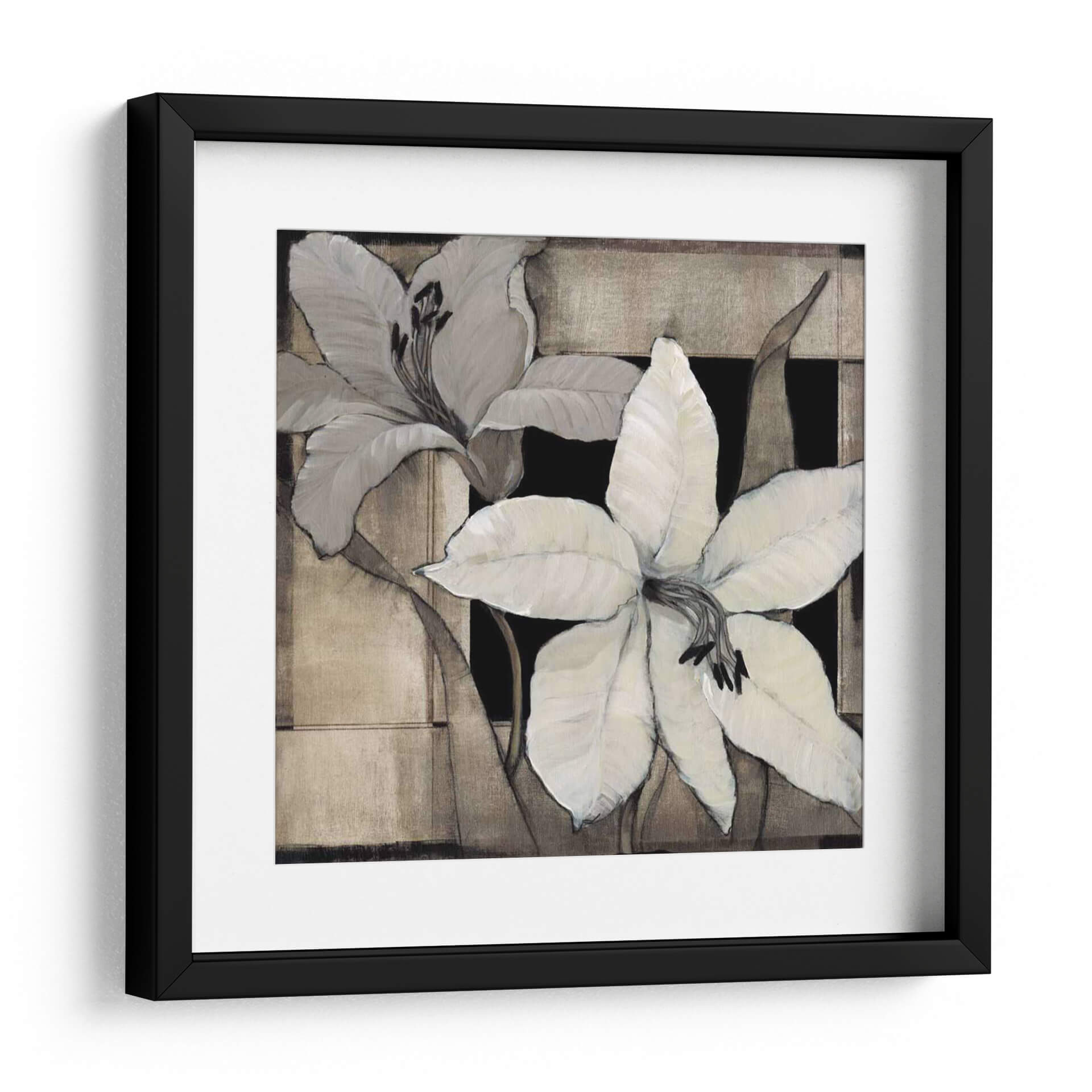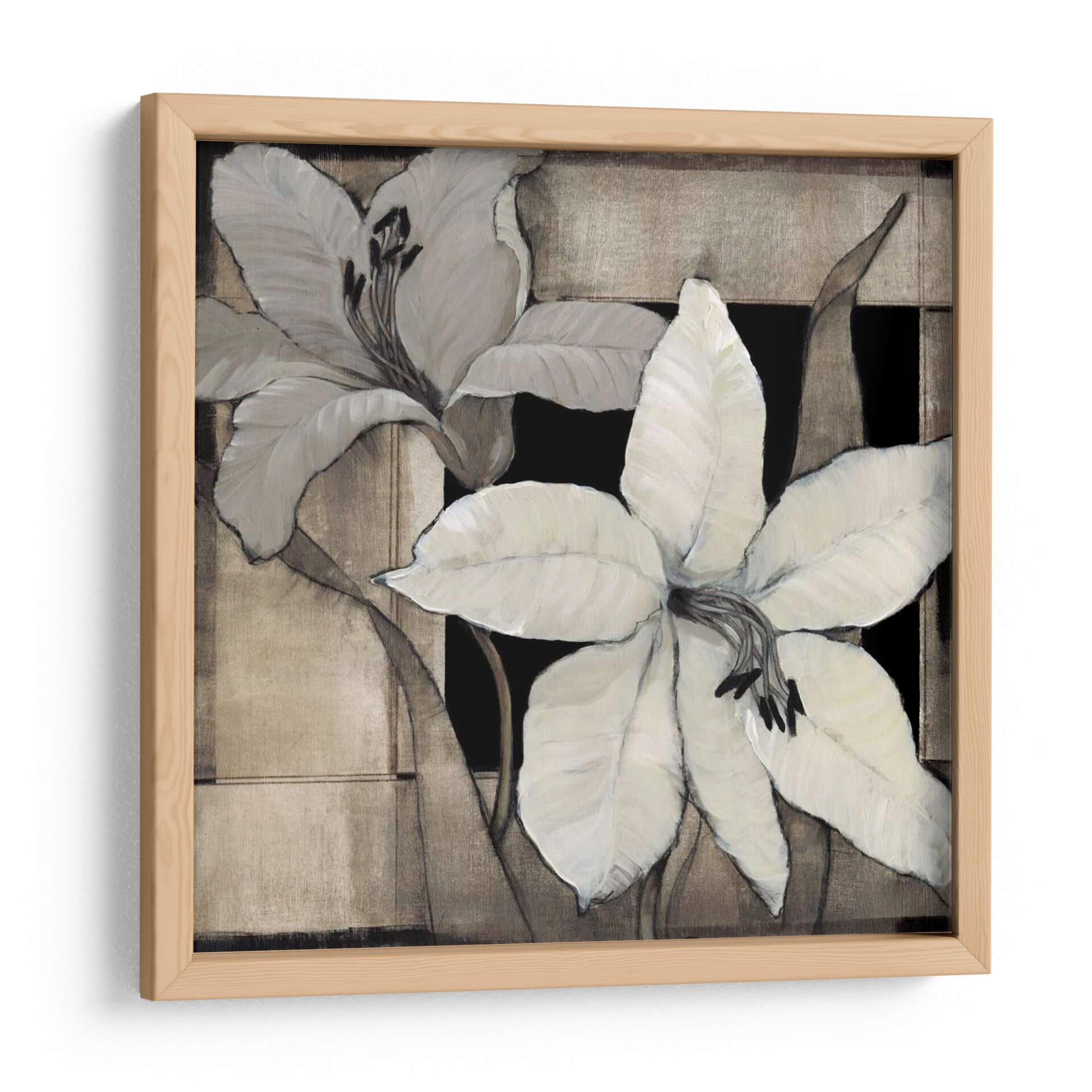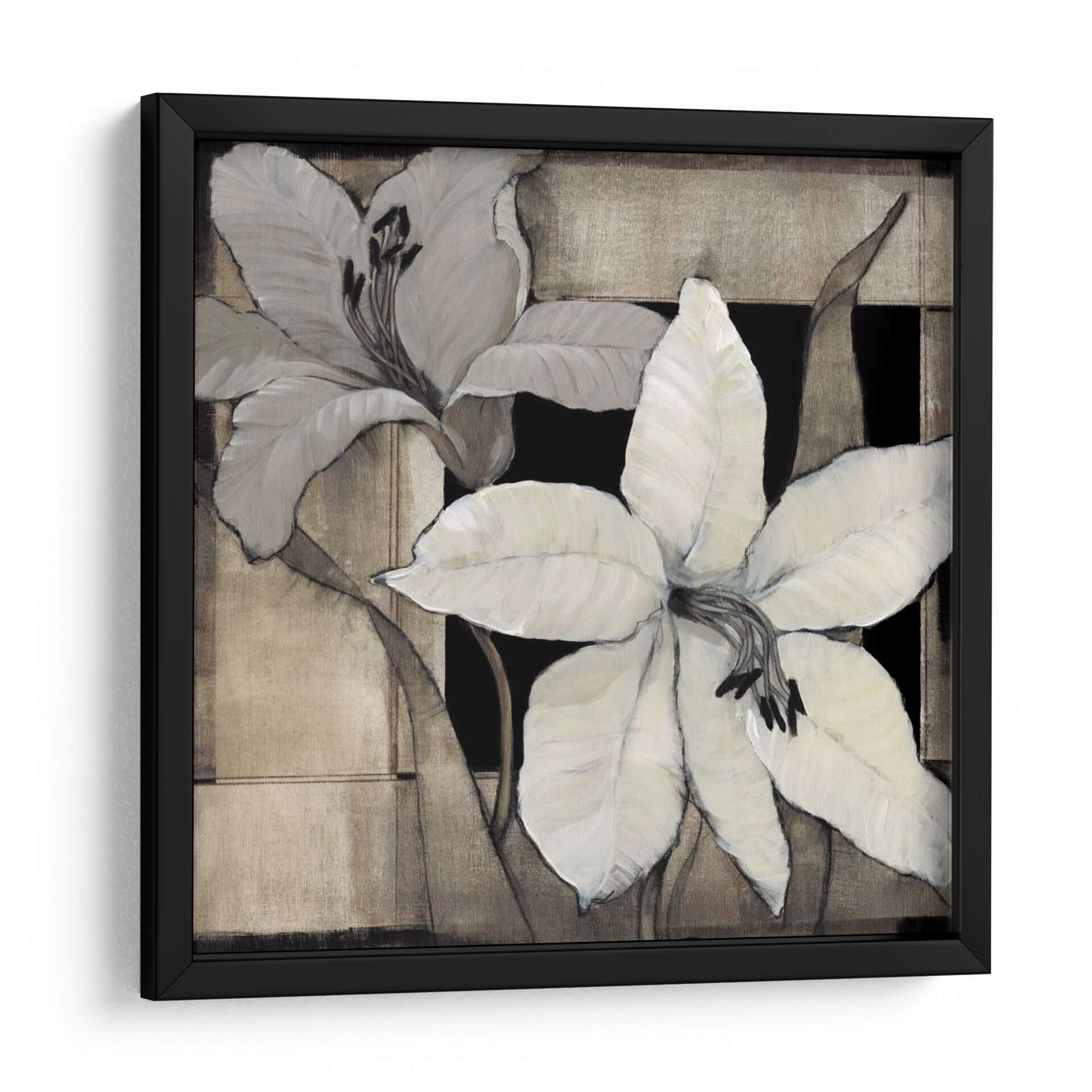 Sumérgete en la elegancia atemporal de "Dramático Lily Grid II", una obra de arte contemporáneo que captura la delicadeza de los lirios en un estilo visualmente cautivador. Este cuadro decorativo presenta dos lirios de pétalos blancos y cremosos que se despliegan con gracia, contrastando sutilmente con un fondo texturizado en tonos tierra y detalles en negro profundo. La composición, marcada por un patrón de cuadrícula sutil y líneas orgánicas, evoca una sensación de orden y naturaleza entrelazadas. Los detalles artísticos en la obra, con pinceladas visibles que añaden profundidad y carácter, invitan a una contemplación serena. Ideal para espacios que buscan un toque de sofisticación y calma, este cuadro es perfecto para salones, dormitorios o estudios que desean una pieza de arte que inspire tranquilidad y belleza. Su paleta de colores neutros y texturas ricas lo convierten en un complemento versátil para diversas decoraciones, desde la moderna hasta la clásica, aportando un aire de refinamiento y un punto focal artístico que no pasará desapercibido. Transforma tu hogar en una galería personal con esta pieza única de Tim O'Toole.