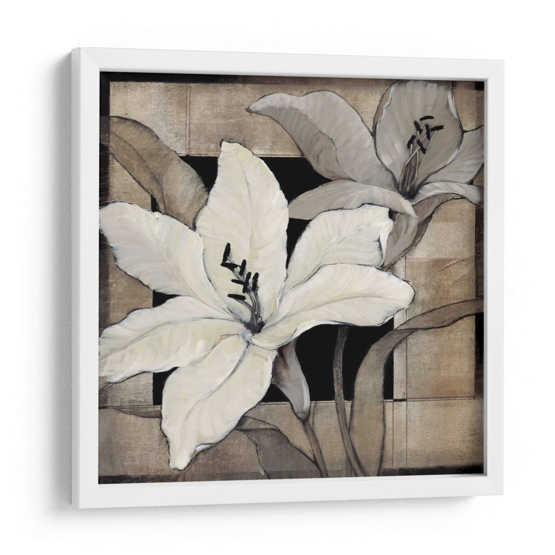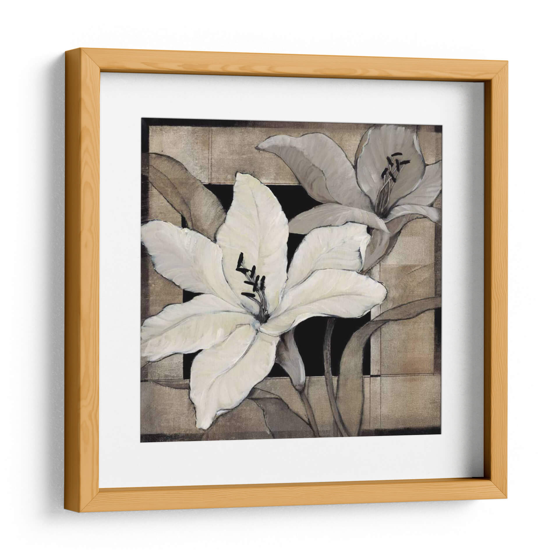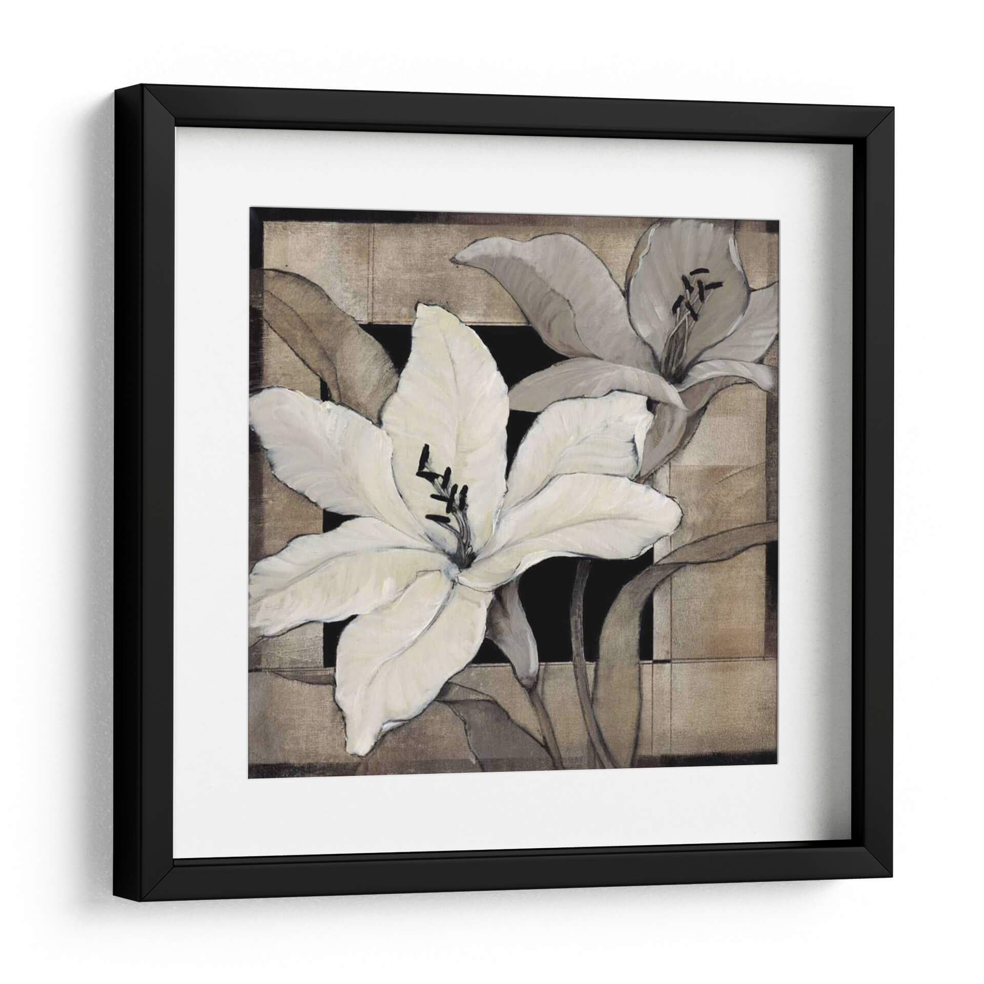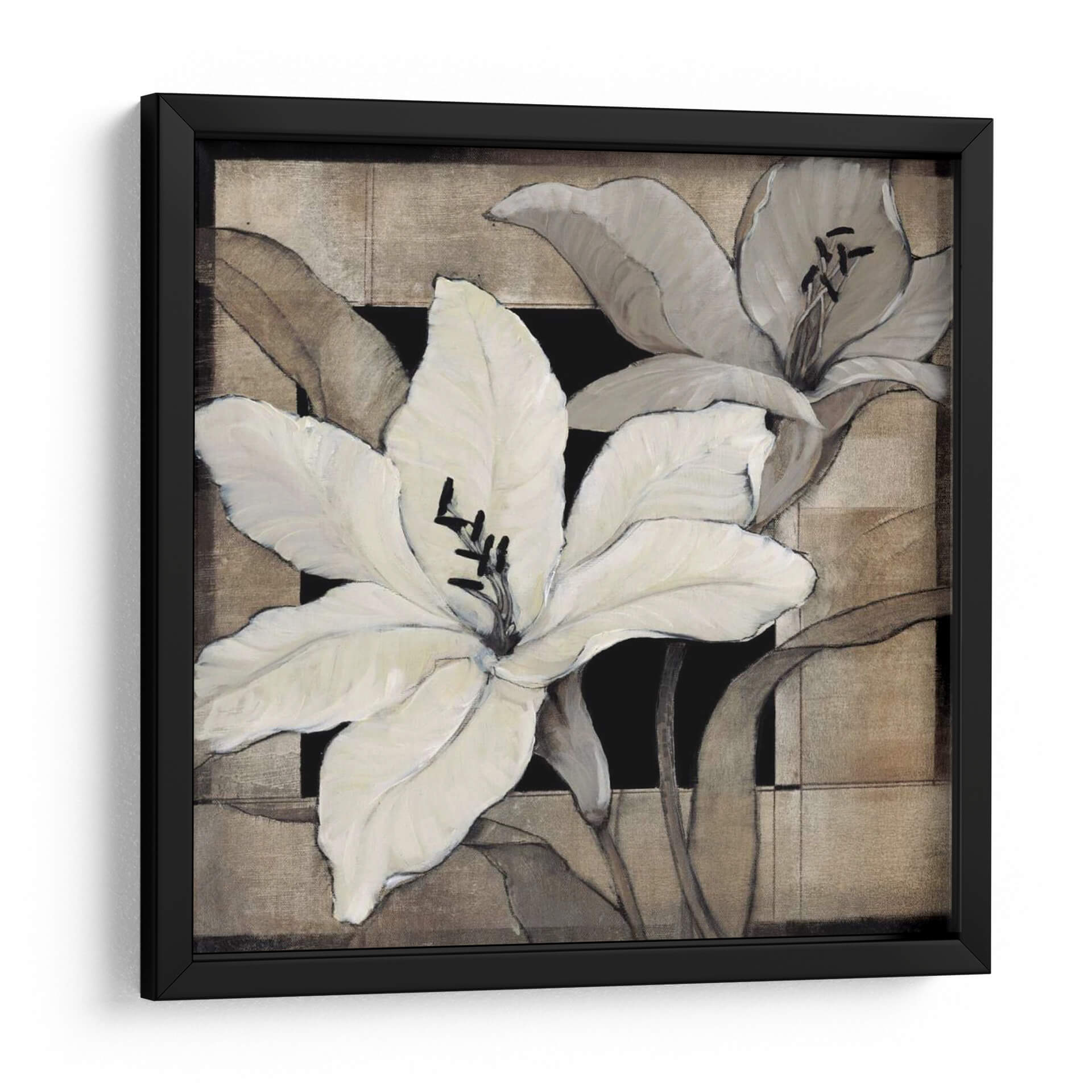 Inunda tus espacios con la elegancia atemporal de "Dramático Rejilla Lily I", una obra maestra de Tim O'Toole que captura la esencia de la belleza natural con un toque contemporáneo. Este cuadro decorativo presenta dos lirios blancos de gran tamaño, cuyas delicadas formas se despliegan con gracia sobre un fondo texturizado en tonos tierra y detalles geométricos en negro. La paleta de colores, dominada por blancos cremosos, beiges cálidos y negros profundos, crea una atmósfera de serenidad y sofisticación, perfecta para añadir un punto focal de calma y estilo a cualquier habitación. El contraste entre la suavidad de los pétalos y la estructura del fondo, junto con la pincelada sutil pero expresiva, confiere a la pieza una profundidad visual cautivadora. Ideal para salones, dormitorios o estudios que buscan un toque de refinamiento y conexión con la naturaleza. "Dramático Rejilla Lily I" no es solo una decoración, es una invitación a la contemplación y al disfrute de la estética floral en su máxima expresión. Una elección perfecta para quienes aprecian el arte que equilibra lo orgánico con lo moderno, aportando paz y elegancia a la vida cotidiana.