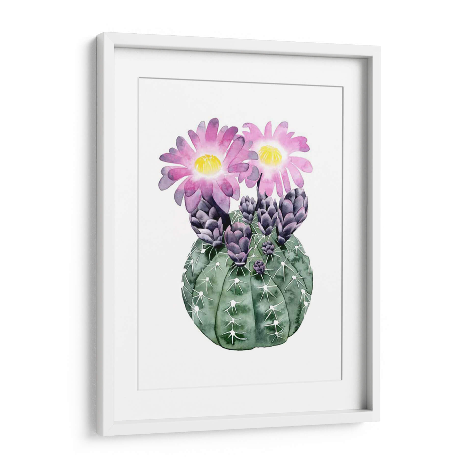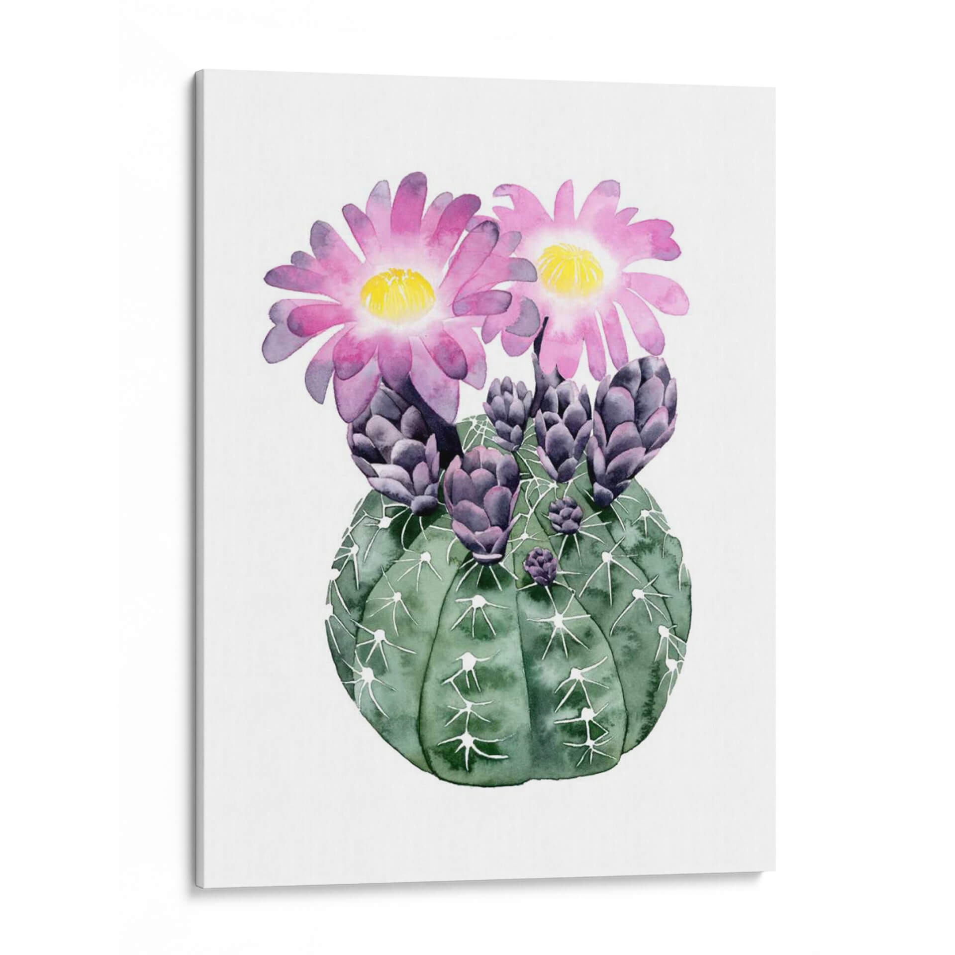 Embellece tu espacio con este cautivador cuadro decorativo de cactus en flor, una obra maestra de acuarela que irradia la belleza serena de la naturaleza. La pieza presenta un cactus esférico robusto, detallado con intrincadas espinas blancas que contrastan elegantemente con su verde vibrante. Coronando este guardián del desierto, emergen delicadas flores en tonos fucsia y púrpura, sus pétalos suaves y sus centros amarillos brillantes aportando un toque de color y vida. La técnica de acuarela, con sus lavados sutiles y transiciones de color fluidas, confiere a la obra una ligereza y una atmósfera etérea. Cada trazo capta la esencia delicada de la floración, evocando una sensación de paz y resiliencia. Este cuadro decorativo es perfecto para añadir un acento natural y sofisticado a cualquier habitación, desde la sala de estar hasta un sereno dormitorio o un estudio inspirador. Su diseño botánico contemporáneo lo convierte en una adición versátil para una variedad de estilos decorativos, aportando un toque de frescura y serenidad a tu hogar u oficina. Descubre la elegancia discreta de la flora desértica con esta pieza única.