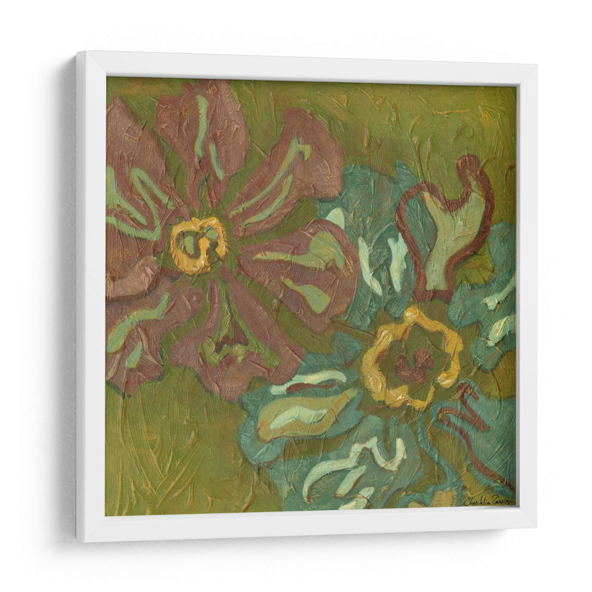 Sumérgete en la belleza natural con "Electrelane II" de Chariklia Zarris, un cuadro decorativo que captura la esencia de las flores con una pincelada expresiva y una paleta de colores terrosos. Esta obra de arte abstracto evoca una sensación de tranquilidad y conexión con la naturaleza, ideal para añadir un toque orgánico y sofisticado a cualquier espacio. Los tonos verdes profundos se entrelazan con matices de marrón rojizo y toques vibrantes de amarillo, creando una composición rica y texturizada que invita a la contemplación. El estilo distintivo de Zarris, con sus trazos audaces y una interpretación impresionista de formas florales, confiere a la pieza una energía sutil pero cautivadora. Perfecta para dar vida a salones modernos, estudios serenos o dormitorios acogedores, este cuadro decorativo es una pieza que resonará con amantes del arte que buscan añadir profundidad y carácter a su decoración. Imagina cómo sus colores cálidos y su atmósfera evocadora transformarán tu hogar, convirtiéndolo en un refugio de paz y belleza.