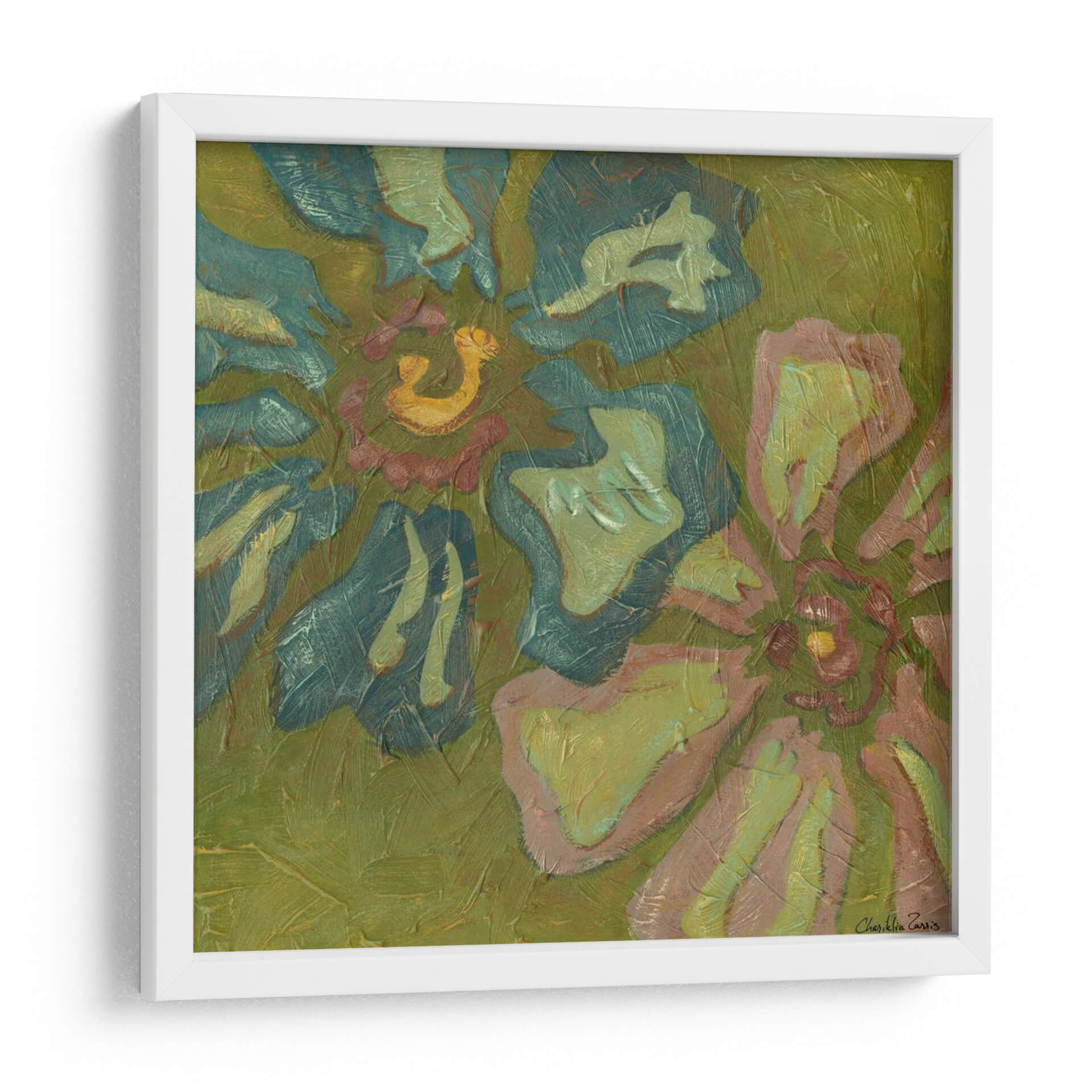 Sumérgete en la belleza botánica abstracta con "Electrelane III" de Chariklia Zarris. Este cautivador cuadro decorativo presenta una interpretación audaz y estilizada de flores, donde las formas orgánicas se entrelazan en una danza de colores vibrantes. La paleta de verdes profundos y terrosos se ve realzada por toques de azul verdoso, rosa pálido y un toque de amarillo brillante en el centro, creando una atmósfera rica y envolvente. La textura visible en la pincelada añade profundidad y una cualidad táctil a la obra, invitando al espectador a explorar cada matiz. El estilo abstracto de Zarris permite una interpretación personal, haciendo de esta pieza una adición versátil para cualquier espacio moderno o contemporáneo. Ideal para infundir vida y un sentido de naturaleza estilizada en tu sala de estar, comedor u oficina, este cuadro es una celebración de la forma y el color que aportará una energía única a tu decoración.
