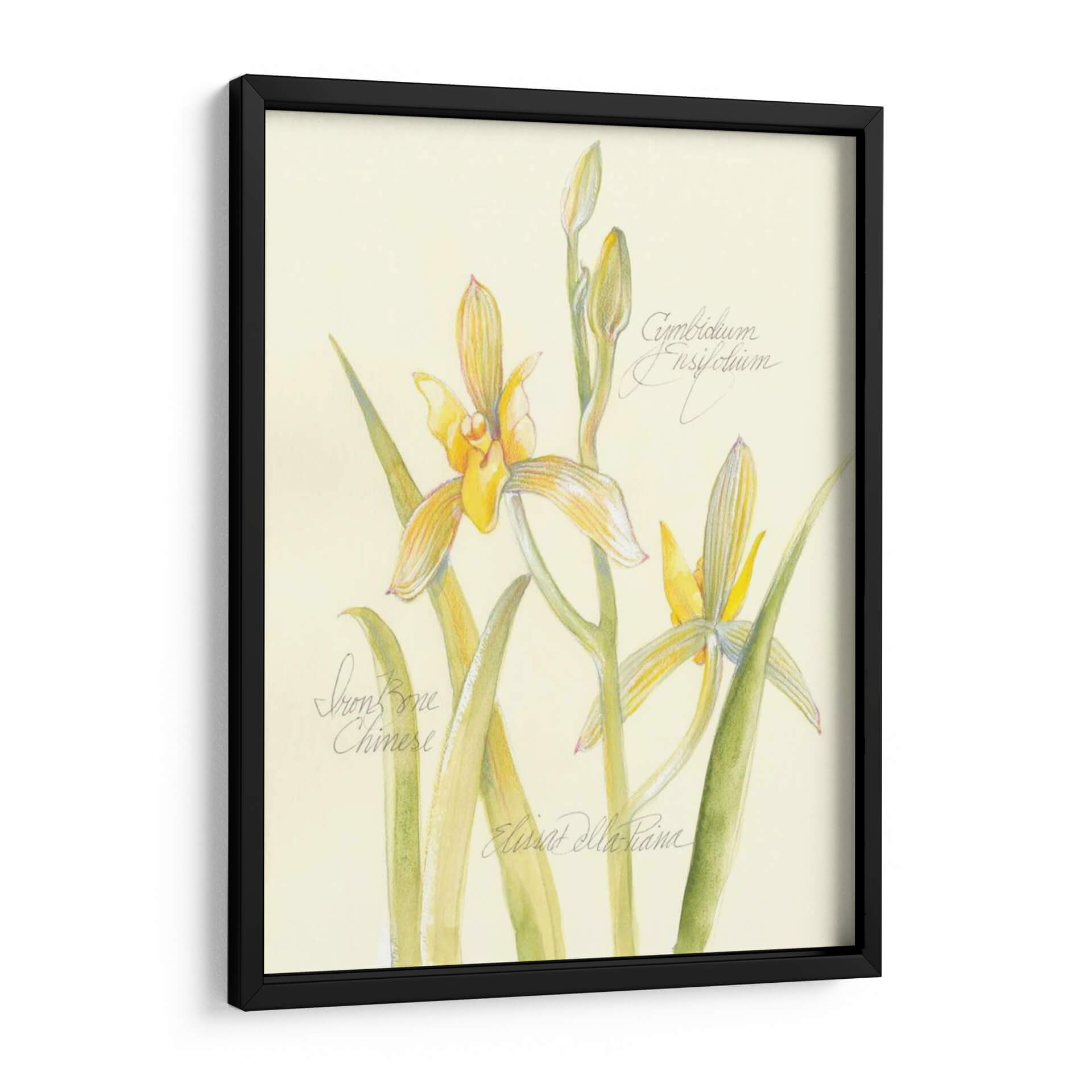 Sumérgete en la delicadeza botánica con "El Jardín de Elissa IV", una obra de arte que captura la etérea belleza de las orquídeas. El artista Elissa Della-Piana nos presenta un estudio detallado de estas flores exóticas, utilizando una paleta de colores suaves y naturales. Predominan los tonos amarillos pálidos y verdes, creando una atmósfera de serenidad y elegancia. Las líneas finas y el estilo casi etéreo evocan la delicadeza de la naturaleza, con un toque sutil de caligrafía que añade un aire de clasicismo y estudio botánico. Este cuadro decorativo es perfecto para quienes buscan infundir calma y sofisticación en sus espacios. Imagina esta pieza aportando un soplo de aire fresco a tu sala de estar, un rincón de lectura o incluso a un dormitorio, donde su presencia tranquilizadora puede transformar el ambiente. La composición se centra en el crecimiento vertical de las orquídeas y sus hojas esbeltas, guiando la mirada a través de los capullos en ciernes y las flores plenamente abiertas. "El Jardín de Elissa IV" no es solo una imagen, es una invitación a la contemplación y a la apreciación de la belleza efímera del mundo natural, ideal para añadir un toque de refinamiento botánico a cualquier decoración contemporánea o tradicional.