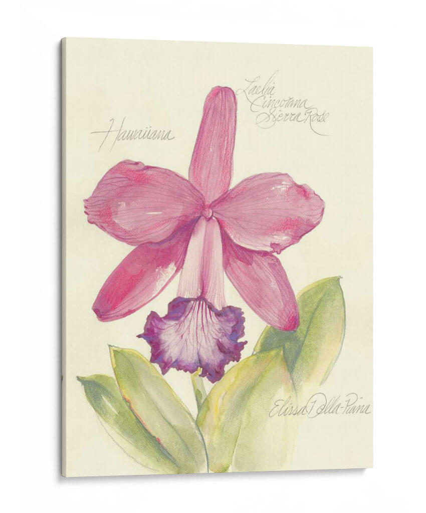 Sumérgete en la delicadeza botánica con "Elissas Garden V", una obra de arte que captura la exuberancia de una orquídea en plena floración. El artista Elissa Della-Piana nos presenta un estudio detallado de esta exótica flor, donde los vibrantes tonos rosados y púrpuras se fusionan con el suave fondo crema, creando una atmósfera de elegancia natural y sofisticación. La técnica sutil y la composición centrada en la majestuosa flor invitan a la contemplación y añaden un toque de serenidad y belleza a cualquier espacio. Este cuadro decorativo es perfecto para quienes buscan infundir vida y color en su hogar u oficina, evocando la frescura de un jardín tropical y la delicadeza de la naturaleza. Ideal para salas de estar, dormitorios o incluso un estudio, "Elissas Garden V" es una pieza que aporta distinción y un aire de refinamiento botánico, transformando las paredes en un lienzo de inspiración natural. Su estética atemporal la convierte en una adición valiosa para coleccionistas de arte floral y amantes de la decoración que aprecian la belleza detallada y los colores vivos.