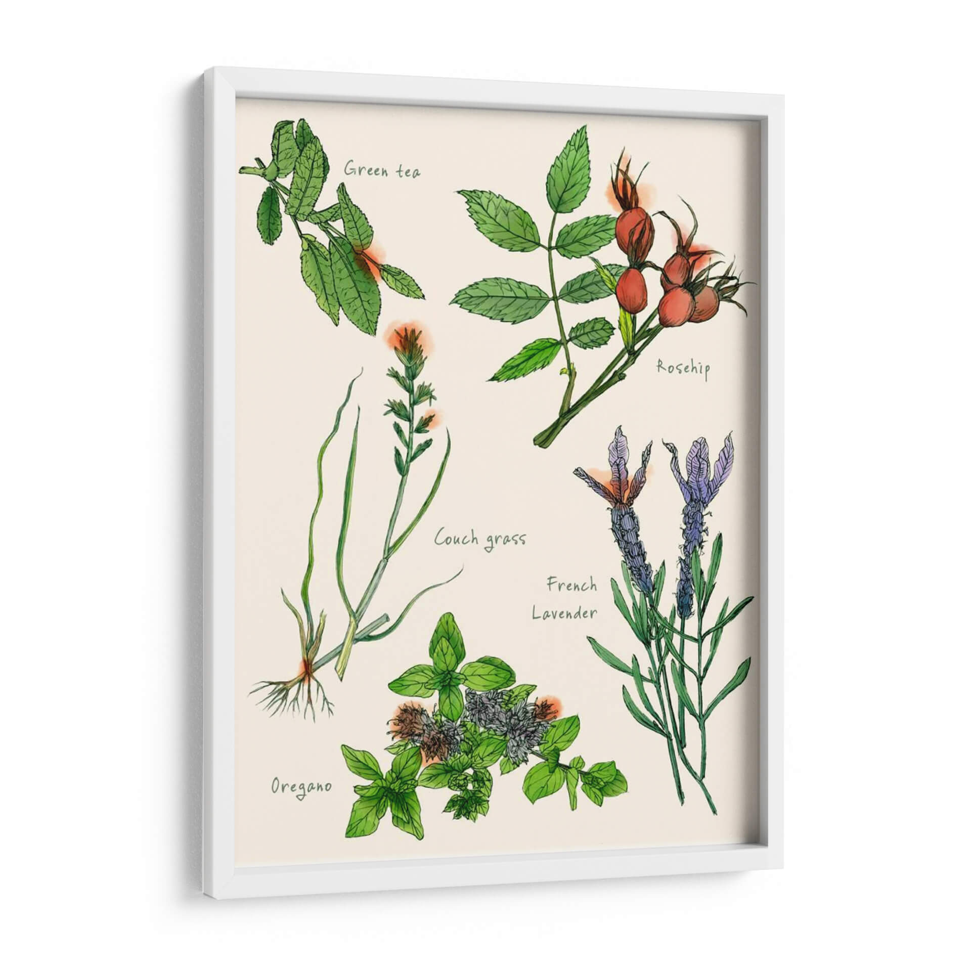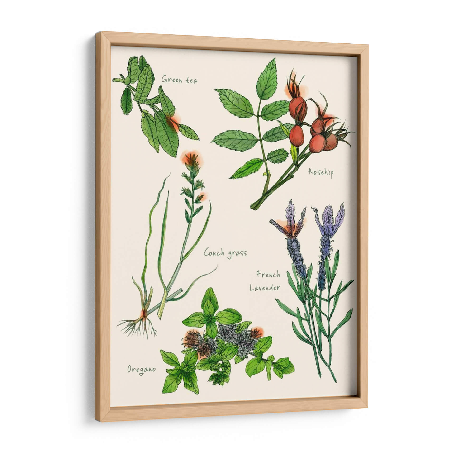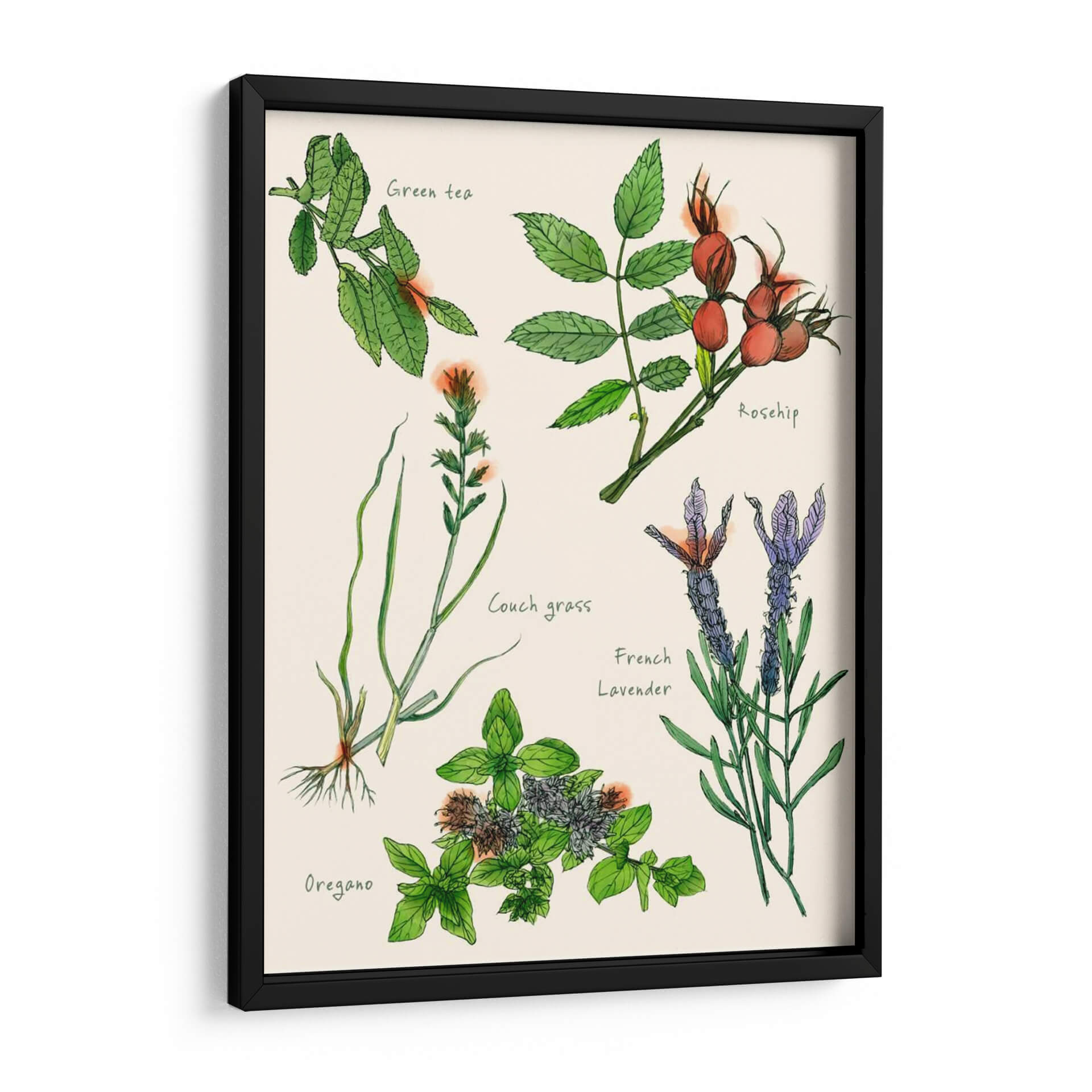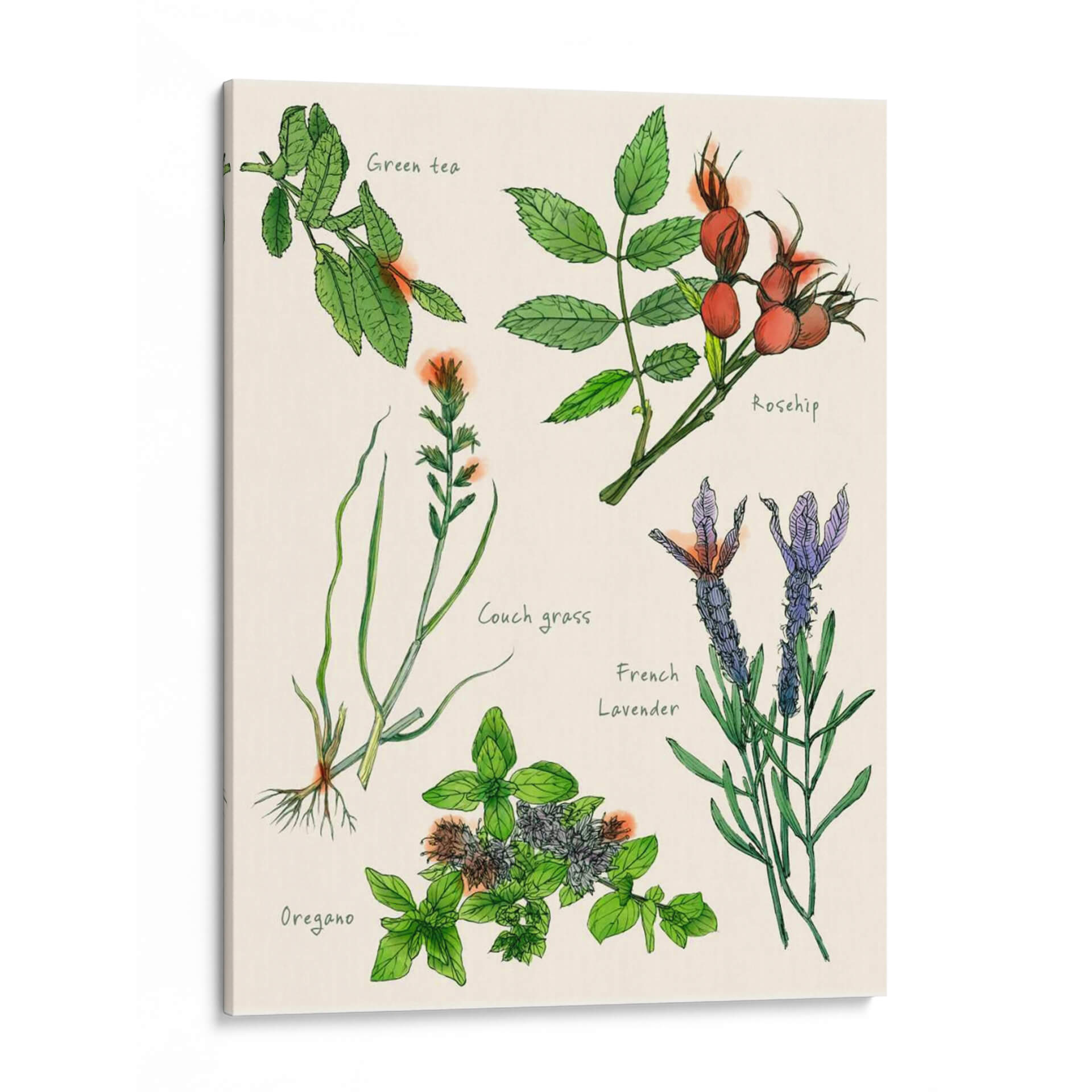 Transforma tu hogar con "Ensamblaje Dulce II", una obra de arte botánica que celebra la belleza de la naturaleza. La artista Melissa Wang captura con delicadeza y detalle cinco plantas medicinales y aromáticas: té verde, rosa mosqueta, grama de trigo, lavanda francesa y orégano. Cada ilustración, ejecutada con una técnica que evoca los grabados botánicos clásicos pero con un toque contemporáneo, presenta colores vibrantes y trazos precisos que resaltan la textura y forma de cada espécimen. El fondo neutro y cálido permite que los verdes exuberantes, los rojos intensos de la rosa mosqueta y los púrpuras de la lavanda destaquen, creando una atmósfera de serenidad y conexión con lo natural. Este cuadro decorativo es perfecto para cocinas, comedores, estudios o cualquier espacio donde desees infundir una sensación de calma, frescura y vitalidad. Añade un toque de elegancia rústica y el encanto de la botánica a tu decoración, inspirando momentos de tranquilidad y bienestar. Es una pieza versátil que se adapta a estilos decorativos que van desde el rústico y el nórdico hasta el moderno y ecléctico, aportando siempre un aire de sofisticación natural y conocimiento herbario.