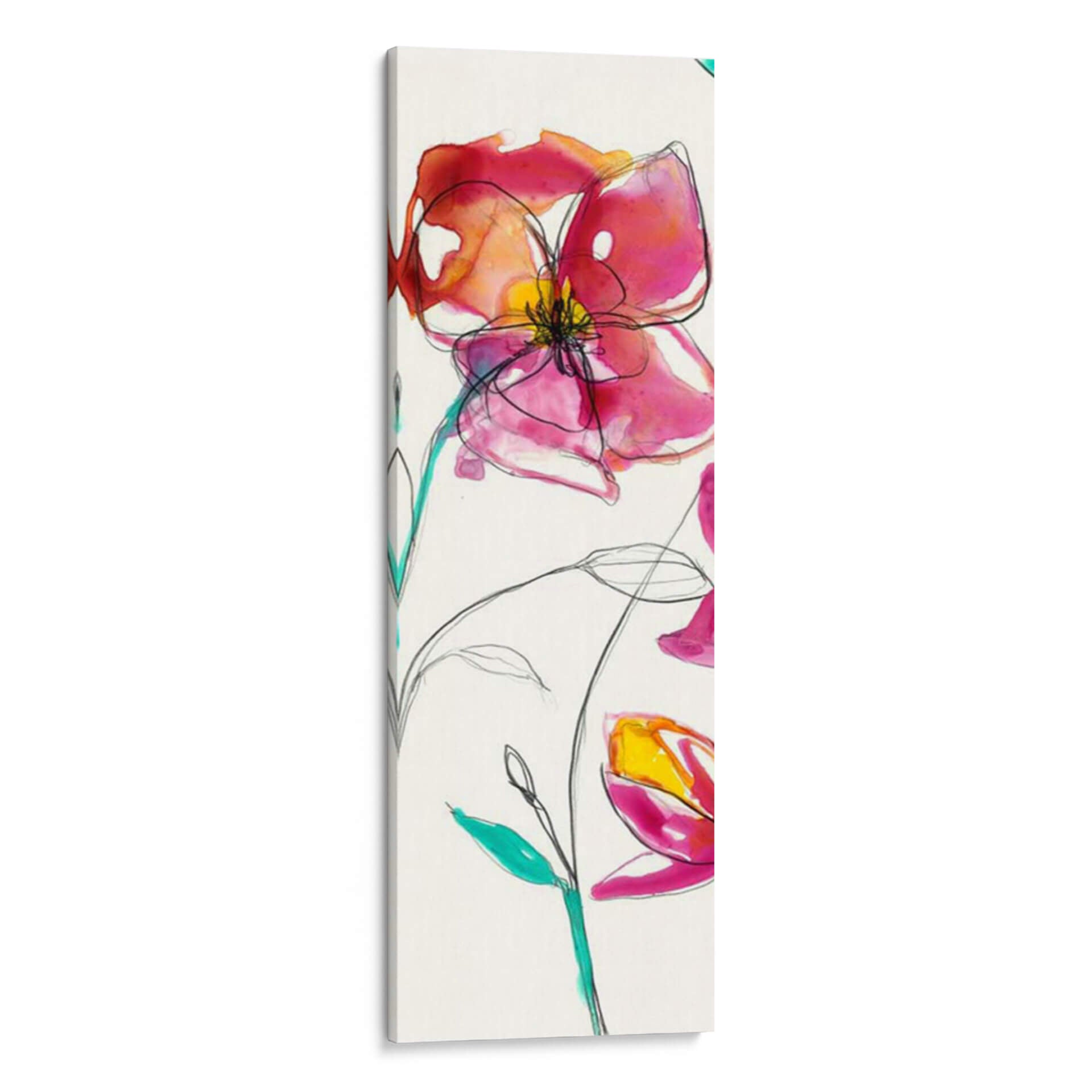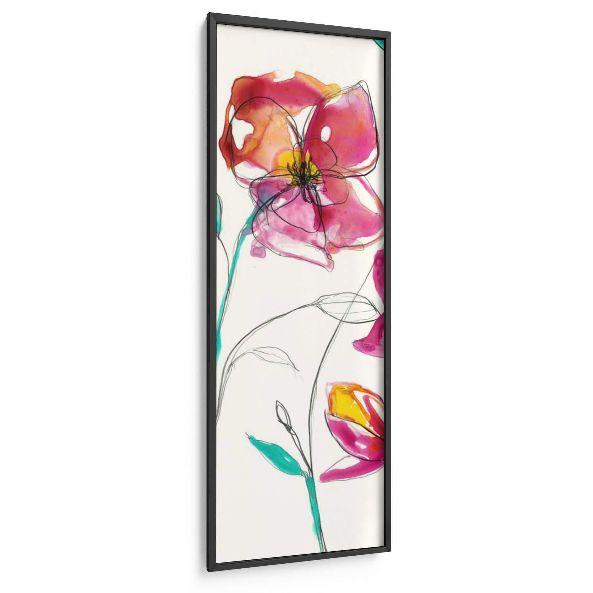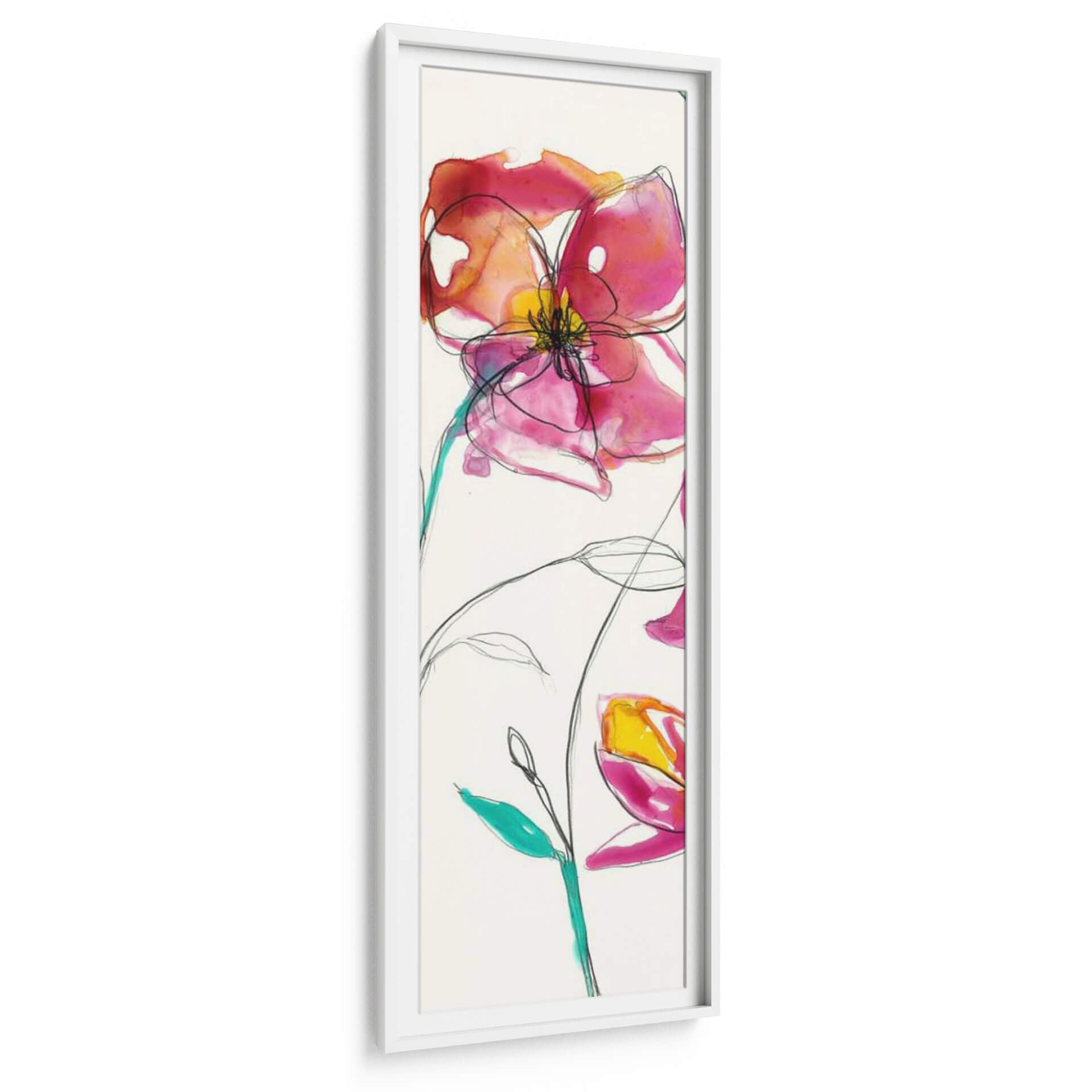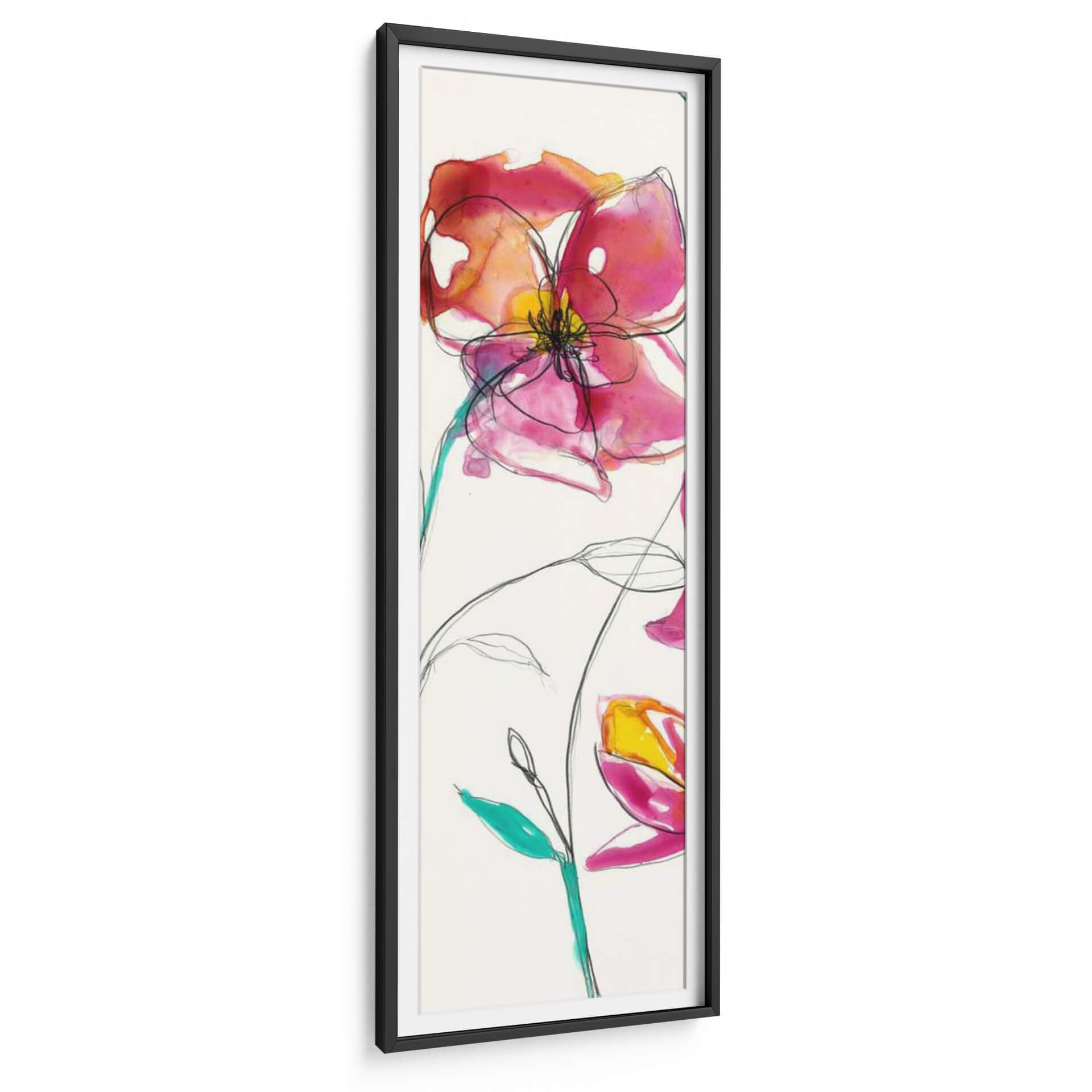 Transforma tu espacio con la cautivadora obra "Entintado Floral I" de Jennifer Goldberger. Este vibrante cuadro decorativo captura la esencia de la naturaleza a través de trazos audaces y una paleta de colores enérgica. Las flores, representadas con una técnica que combina acuarela y delineado a tinta, irradian vida y movimiento, invitando a la contemplación. Los tonos rosados, naranjas y amarillos se funden armoniosamente sobre un fondo neutro, creando un contraste visual que atrae la mirada y aporta calidez a cualquier ambiente. La composición vertical, con delicados tallos y hojas en contraste con la exuberancia de las flores principales, ofrece un equilibrio visual dinámico y moderno. "Entintado Floral I" es una pieza versátil, ideal para añadir un toque de color y sofisticación a salas de estar, dormitorios o estudios. Su estilo contemporáneo y su atmósfera alegre la convierten en el punto focal perfecto para quienes buscan infundir energía y belleza en su decoración. Descubre la magia de la floración capturada en este exquisito cuadro decorativo que resonará con tu estilo y personalidad.