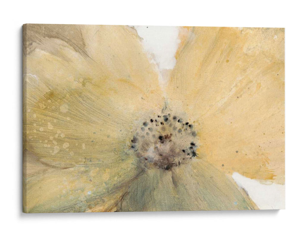 Sumérgete en la delicada belleza de 'Espíritu Floral Iv', una obra de arte contemporáneo que captura la esencia etérea de una flor en plena floración. Los suaves tonos amarillos y ocres se desvanecen en blancos nítidos, creando una atmósfera de calma y serenidad. Las pinceladas sueltas y la técnica acuarelada aportan una sensación de movimiento y vida, mientras que el detallado centro de la flor, con sus texturas y matices oscuros, contrasta sutilmente con los pétalos etéreos. Este cuadro decorativo abstracto floral es perfecto para añadir un toque de naturaleza sofisticada y tranquilidad a cualquier espacio, ya sea una sala de estar acogedora, un dormitorio sereno o una oficina elegante. Su composición centrada y la paleta de colores cálidos lo convierten en una pieza versátil que complementa una variedad de estilos decorativos, desde el moderno hasta el bohemio. 'Espíritu Floral Iv' no es solo una decoración de pared, es una invitación a la contemplación y a la apreciación de la belleza sutil del mundo natural, infundiendo paz y sofisticación en tu hogar.