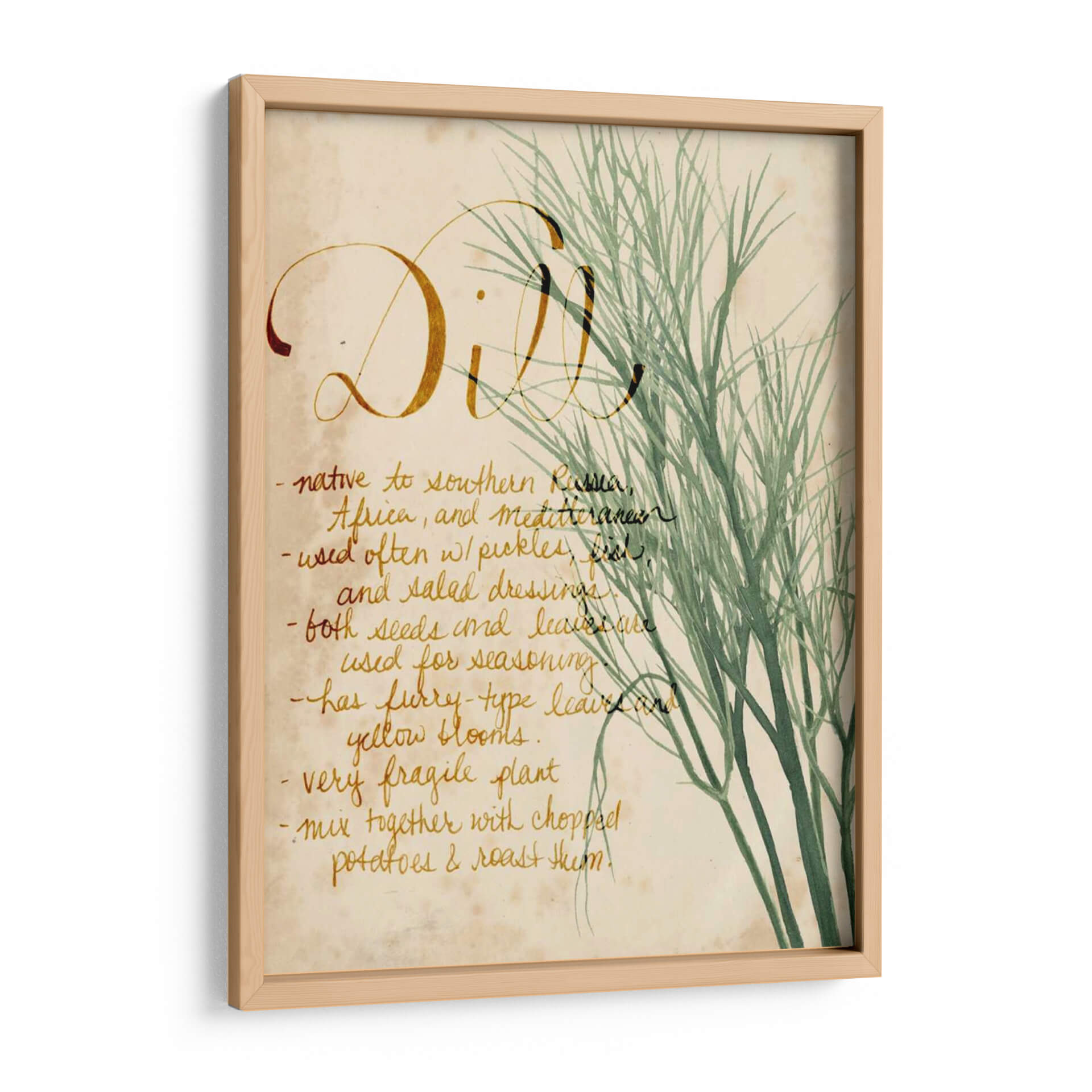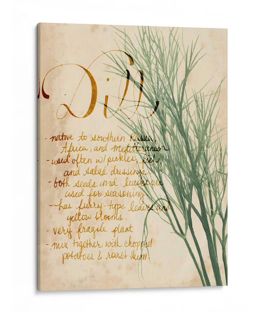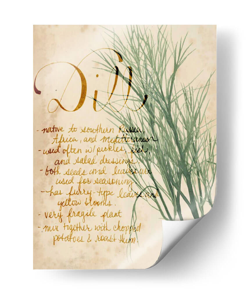 Sumérgete en la frescura y el encanto botánico con "Estudio De Hierbas Ii", una obra de arte de Grace Popp que captura la delicadeza de la eneldo. Esta pieza evoca una sensación de conexión con la naturaleza y la sencillez, presentando la hierba con un estilo que combina la precisión botánica con un toque artístico. La paleta de colores se centra en verdes suaves y terrosos, sobre un fondo texturizado que simula el papel antiguo, aportando calidez y un aire vintage. La elegante caligrafía dorada que titula la obra añade un punto de sofisticación y detalle. "Estudio De Hierbas Ii" es ideal para espacios que buscan un toque de vida y serenidad, como una cocina luminosa, un comedor acogedor o incluso una oficina que necesite un respiro natural. Su composición equilibrada y su temática universal la convierten en una adición versátil y encantadora para cualquier amante del arte y la decoración que aprecie la belleza en los elementos cotidianos. Añade un toque de frescura botánica y elegancia atemporal a tu hogar con este exquisito cuadro decorativo.