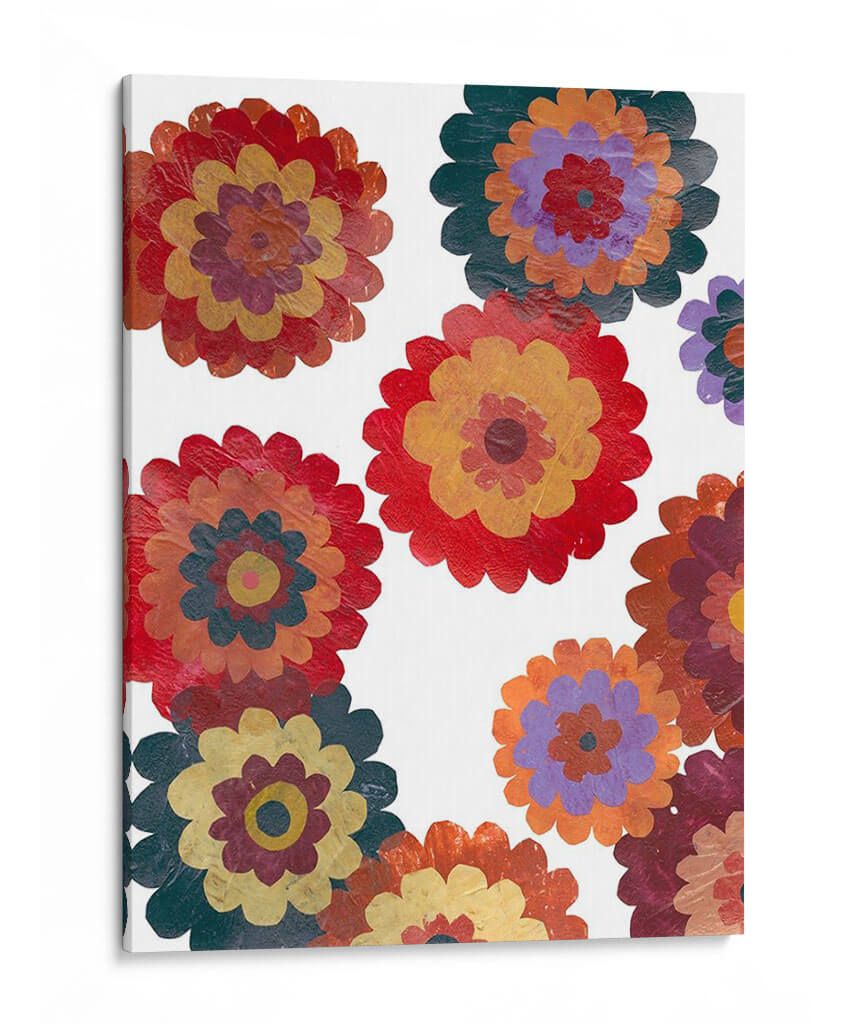 Embellece tu hogar con el vibrante cuadro decorativo 'Floraciones Dispersas I' de Regina Moore. Esta obra de arte contemporánea presenta un cautivador despliegue de flores estilizadas en una variedad de colores cálidos y terrosos, que incluyen rojos intensos, naranjas vibrantes, amarillos dorados y toques de púrpura y verde oscuro. La composición, con sus múltiples capas de pétalos, crea una sensación de profundidad y textura, evocando la belleza orgánica de la naturaleza de una manera moderna y abstracta. Cada flor parece florecer con una energía propia, dispuesta de forma aparentemente aleatoria pero armoniosa sobre un fondo blanco puro que resalta la intensidad de sus tonalidades. 'Floraciones Dispersas I' es una pieza versátil, ideal para infundir vitalidad y un toque artístico a cualquier espacio, desde una sala de estar contemporánea hasta una oficina o un dormitorio sereno. Su estilo único y su rica paleta de colores la convierten en un punto focal que invita a la contemplación y añade carácter a tu decoración. Transforma tus paredes con esta explosión de color y forma.