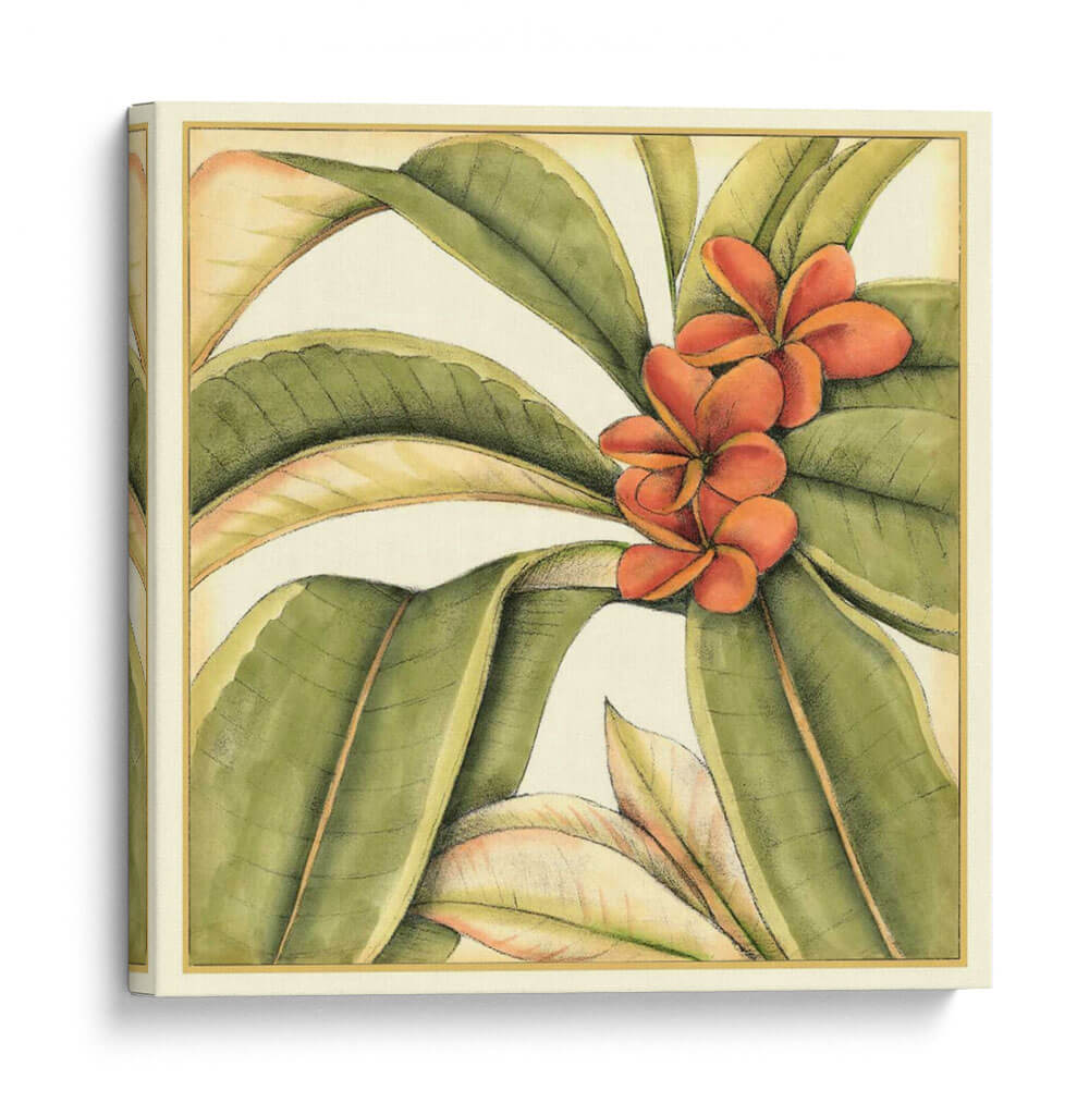 Sumérgete en la exuberante belleza tropical con "Floraciones Tropicales Y Follaje I", una obra de arte que captura la esencia vibrante de la naturaleza. La artista Jennifer Goldberger nos transporta a un paraíso botánico, presentando un delicado ramo de flores anaranjadas que emergen con gracia entre hojas verdes exuberantes y fluidas. La paleta de colores, dominada por verdes intensos y cálidos tonos anaranjados, crea una atmósfera de serenidad y vitalidad, perfecta para infundir vida y color en cualquier espacio. El estilo, que evoca las ilustraciones botánicas clásicas con un toque contemporáneo, permite apreciar la textura y el detalle de cada pétalo y hoja. Esta pieza es ideal para quienes buscan añadir un toque de frescura y sofisticación a su hogar u oficina, transformando una pared neutra en un punto focal lleno de encanto natural. Su composición equilibrada y sus colores armoniosos la convierten en una adición versátil que complementa una amplia gama de estilos decorativos, desde el moderno hasta el tropical chic. "Floraciones Tropicales Y Follaje I" es más que una simple decoración; es una invitación a conectar con la calma y la exuberancia del mundo natural, aportando una sensación de tranquilidad y alegría a tu entorno diario. Descubre la magia de la botánica en tu hogar.