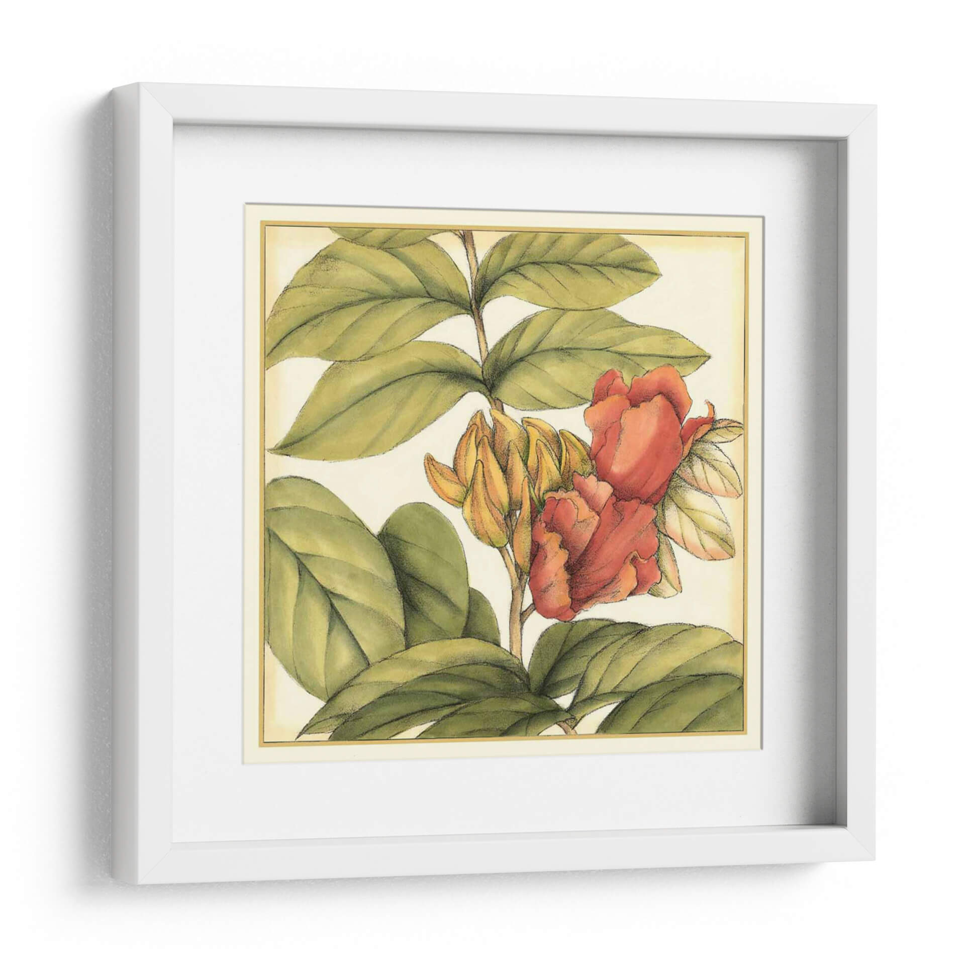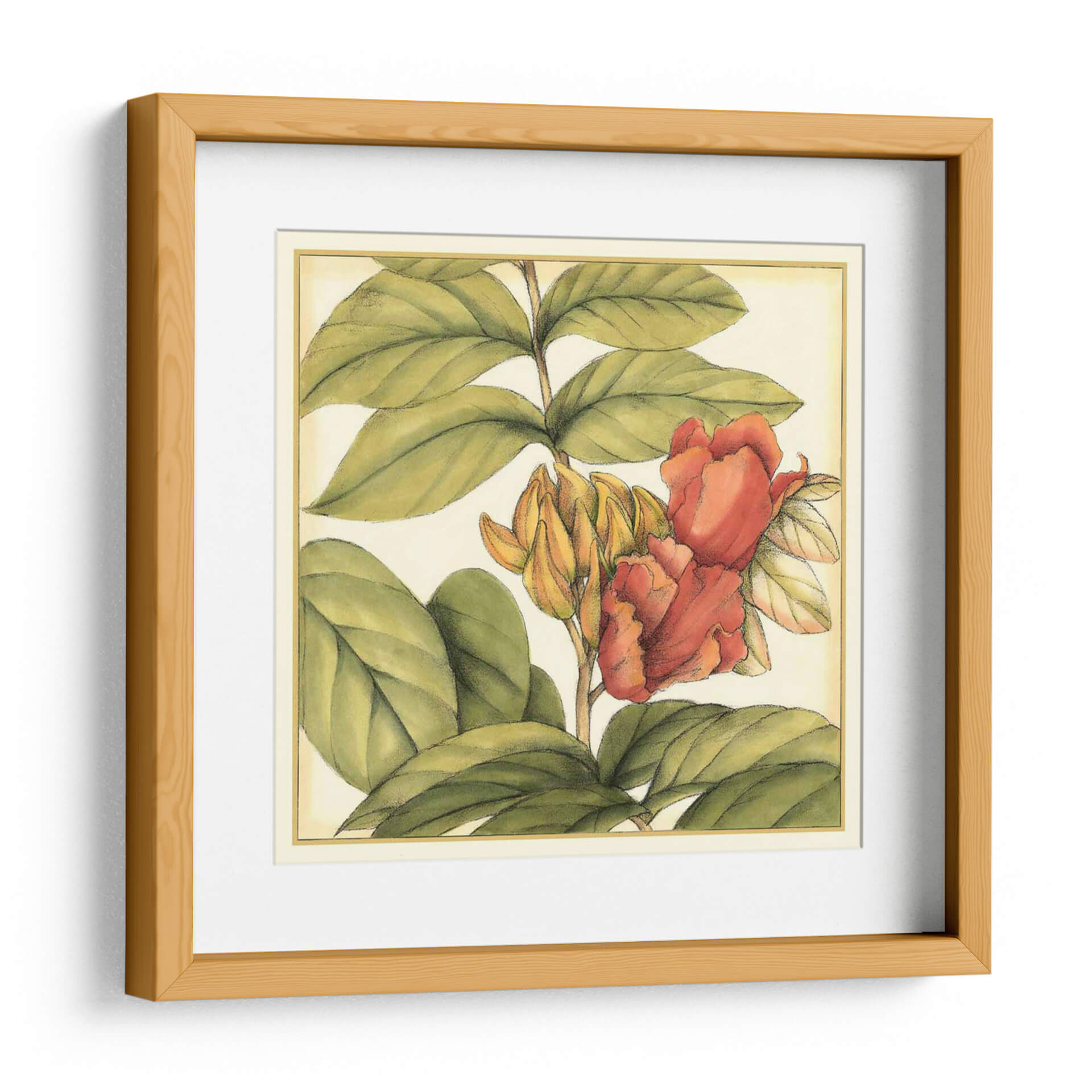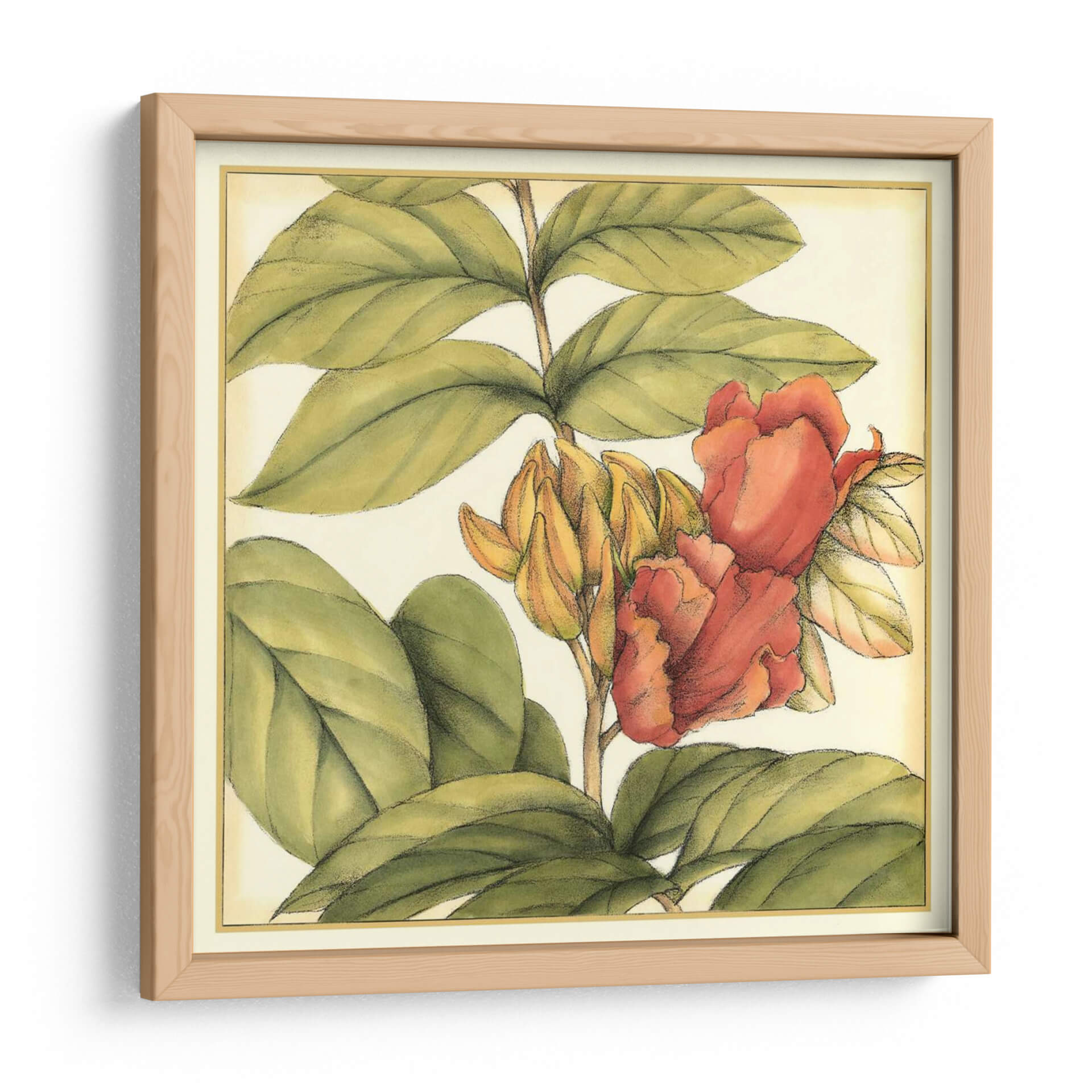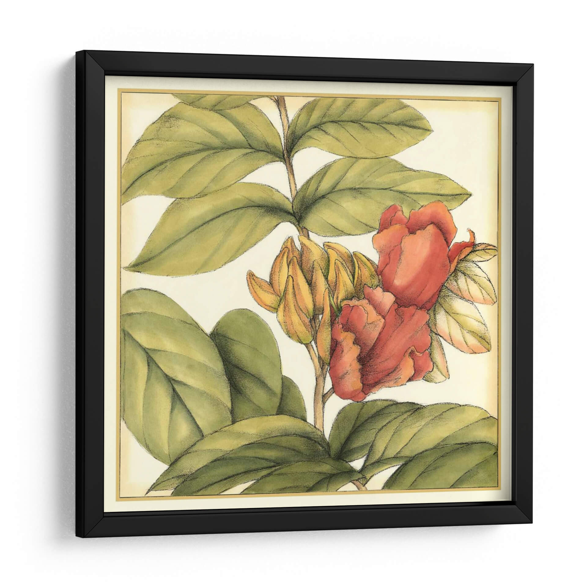 Sumérgete en la exuberante belleza de "Floraciones Tropicales Y Follaje III", una cautivadora obra de arte de Jennifer Goldberger que captura la esencia vibrante de la naturaleza. Este cuadro decorativo presenta un detallado primer plano de flores tropicales de color naranja rojizo, junto a capullos amarillos aún por abrir, rodeadas de un follaje verde profundo y frondoso. La paleta de colores, rica en tonos tierra y verdes, crea una atmósfera de serenidad y vitalidad, aportando un toque de frescura botánica a cualquier espacio. El estilo de la obra, con sus delicadas pinceladas y su enfoque en el detalle natural, evoca una sensación de calma y admiración por la flora. Ideal para quienes buscan infundir a sus hogares u oficinas una conexión con la naturaleza, este cuadro es perfecto para añadir un punto focal orgánico y lleno de vida. Imagina esta pieza embelleciendo tu sala de estar, aportando un toque de elegancia natural a tu dormitorio o inspirando creatividad en tu estudio. "Floraciones Tropicales Y Follaje III" es más que una simple decoración; es una ventana a un paraíso botánico que transformará tu ambiente.