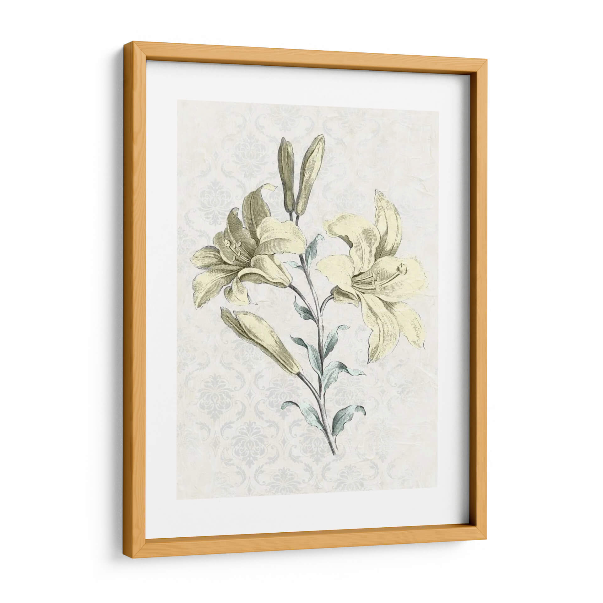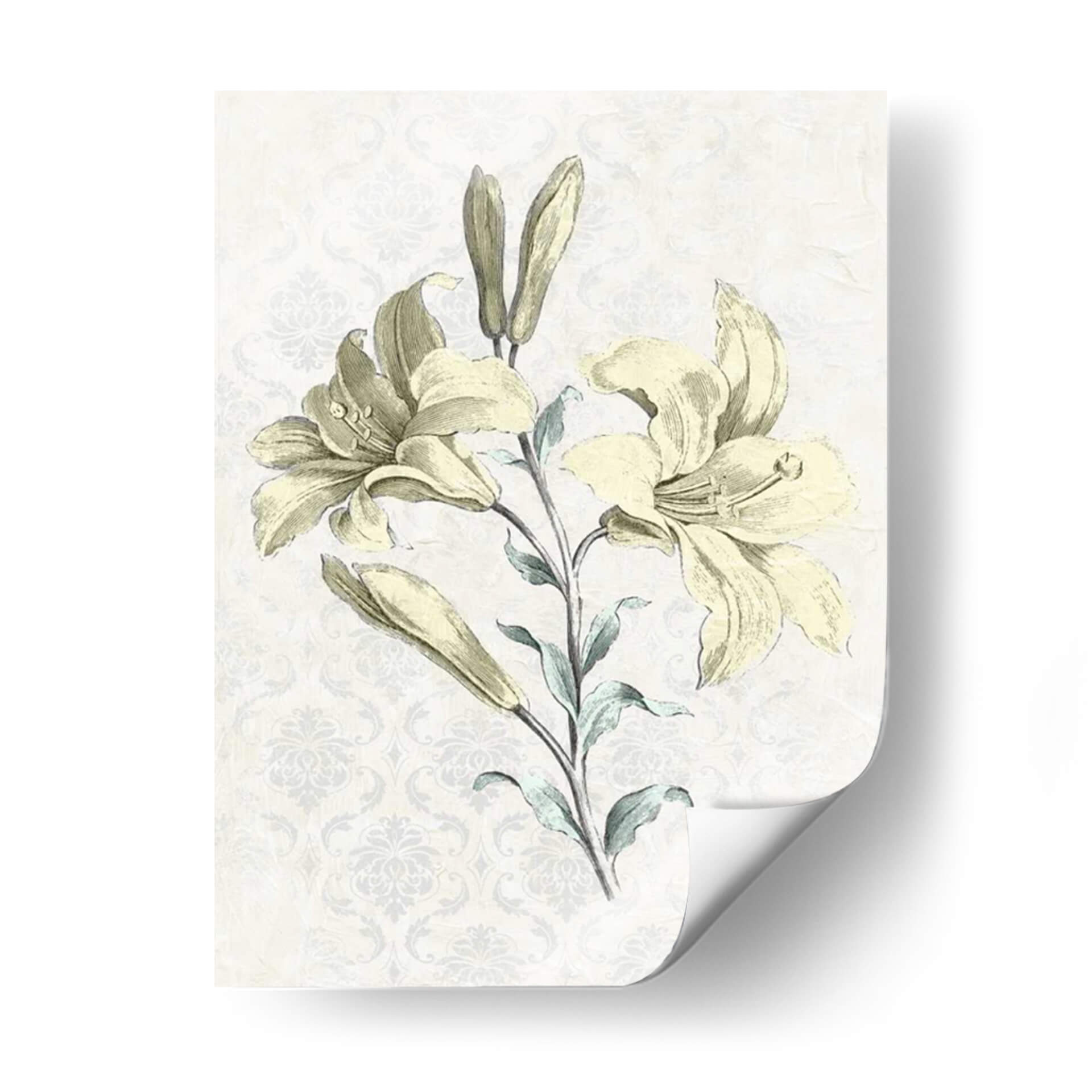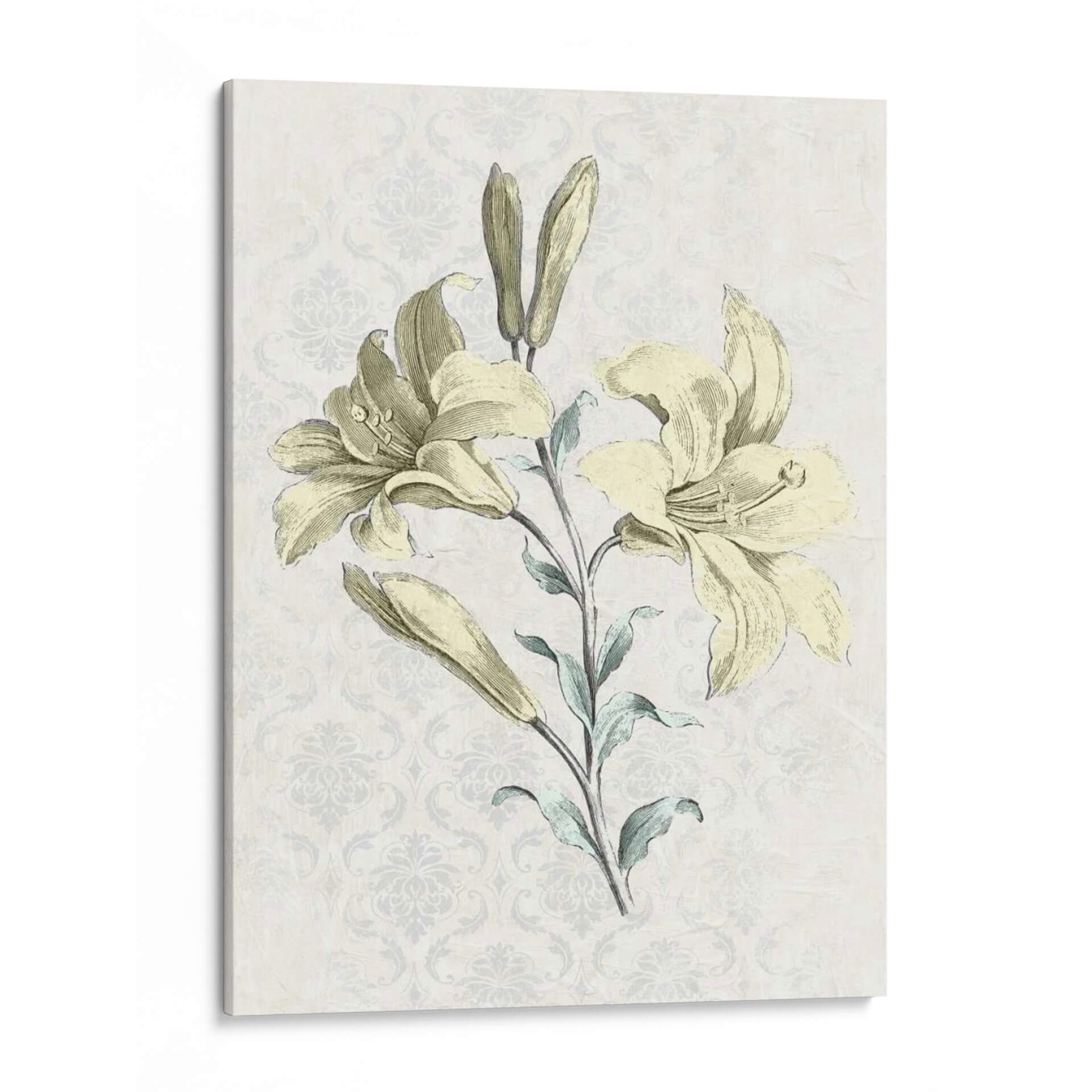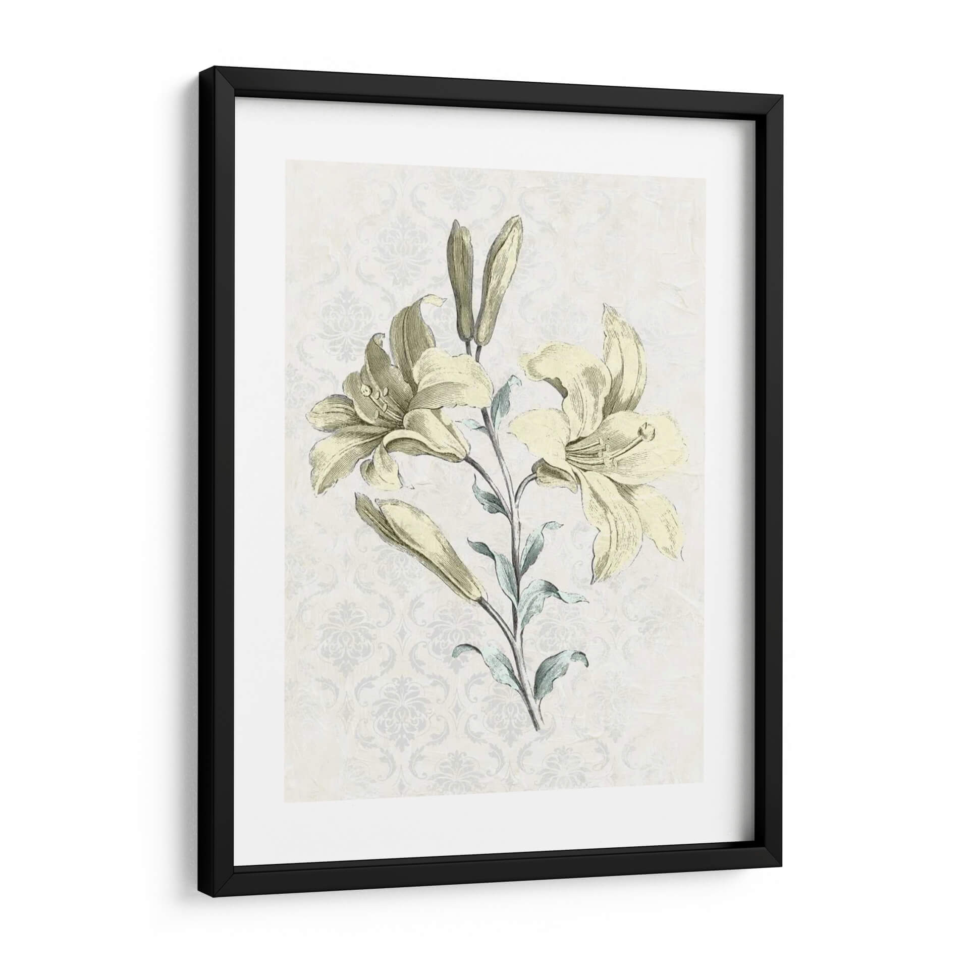 Sumérgete en la elegancia atemporal con nuestro cuadro decorativo 'Floraciones Victorianas III'. Esta exquisita obra de arte digital, creada por Vision Studio, captura la delicadeza de lirios en plena floración sobre un fondo sutil con un patrón damasquino en tonos pálidos. La paleta de colores, dominada por suaves amarillos verdosos y un delicado gris azulado en las hojas, evoca una sensación de serenidad y nostalgia, transportándote a un jardín sereno de antaño. Su estilo, que combina elementos botánicos con un toque vintage, lo convierte en una pieza versátil, perfecta para añadir un aire de sofisticación y calma a cualquier espacio. Ideal para salones, dormitorios o incluso una entrada, este cuadro decorativo es un homenaje a la belleza clásica y la naturaleza, infundiendo tranquilidad y un punto de interés refinado en tu hogar u oficina. La composición centrada en el ramillete floral, con sus pétalos detallados y capullos a punto de abrirse, invita a la contemplación y añade un toque de lujo discreto a tu decoración de interiores. Transforma tu pared en una ventana a un mundo de encanto floral y elegancia duradera.
