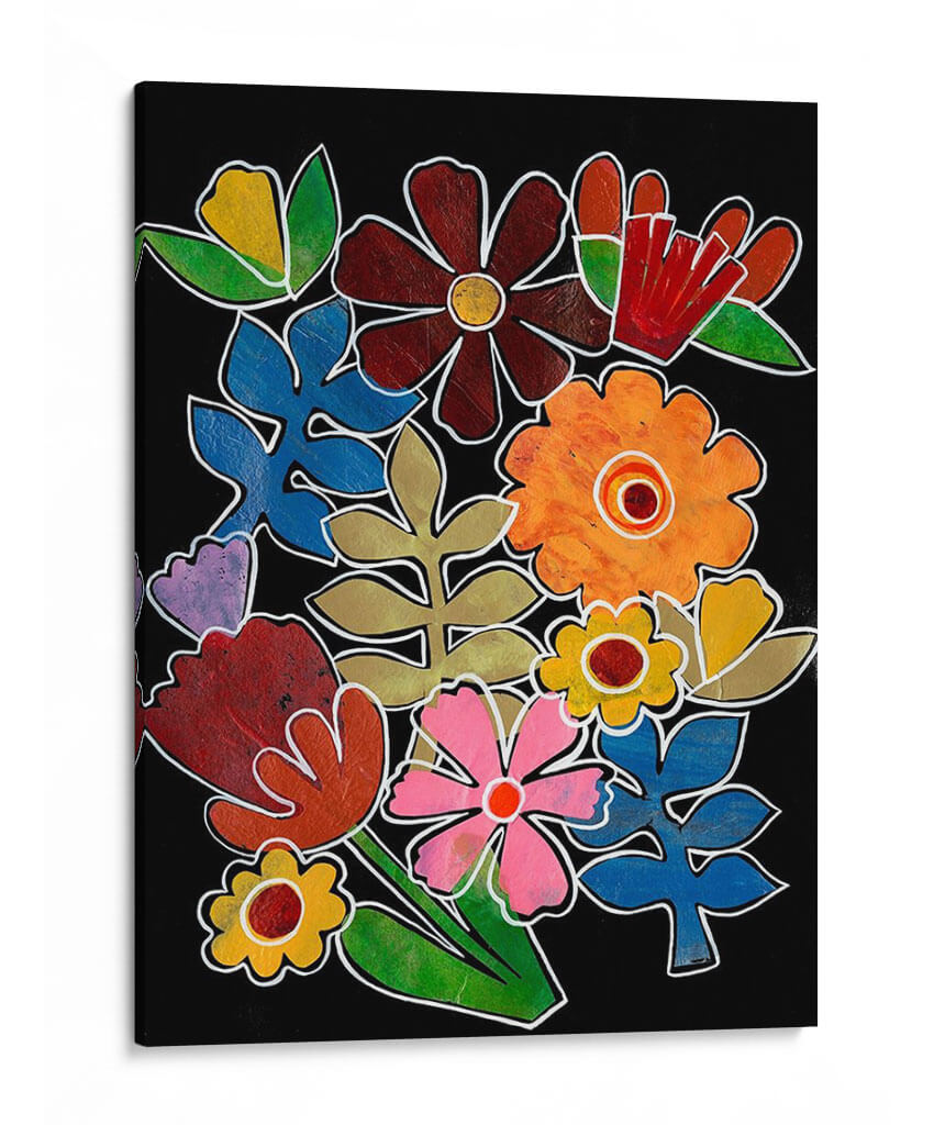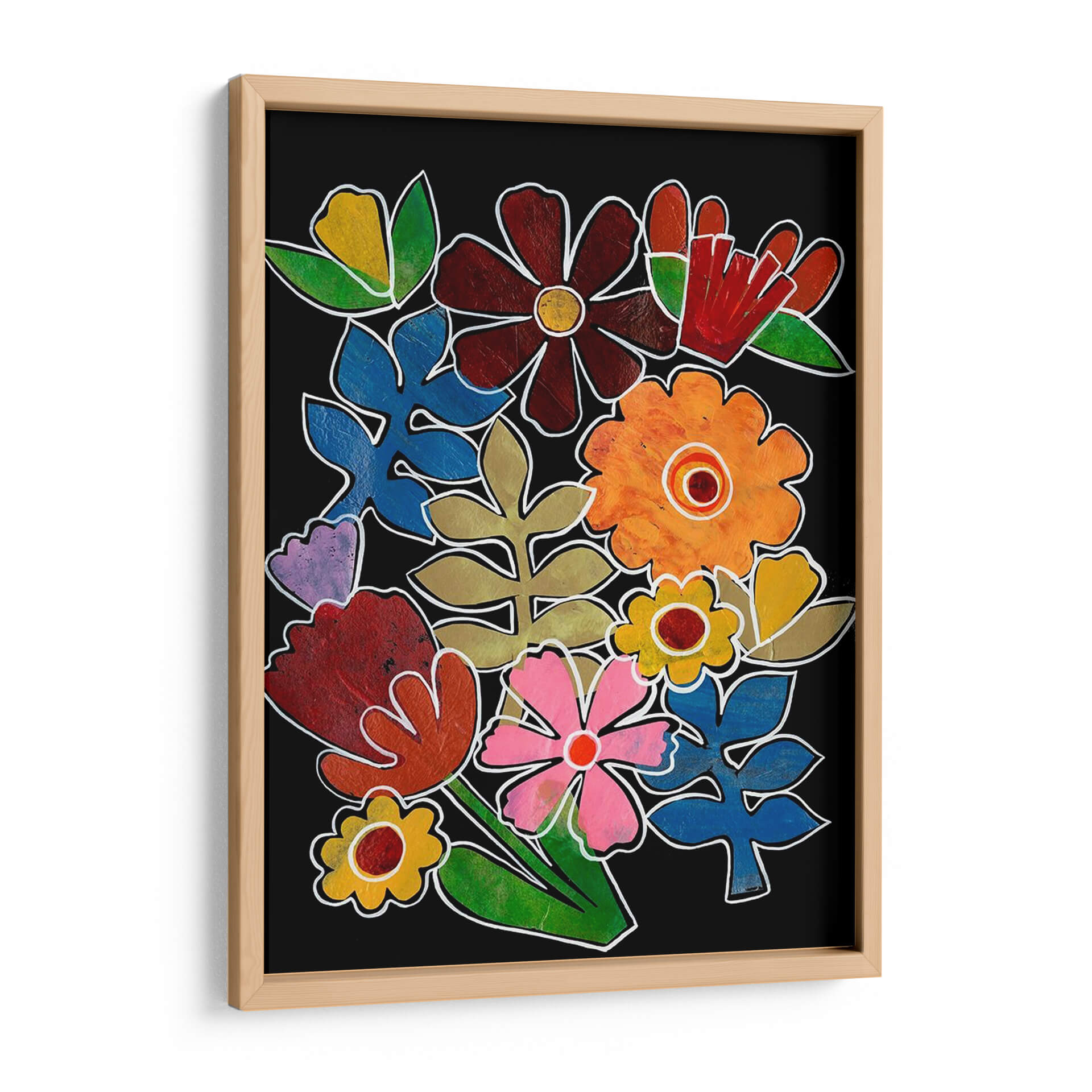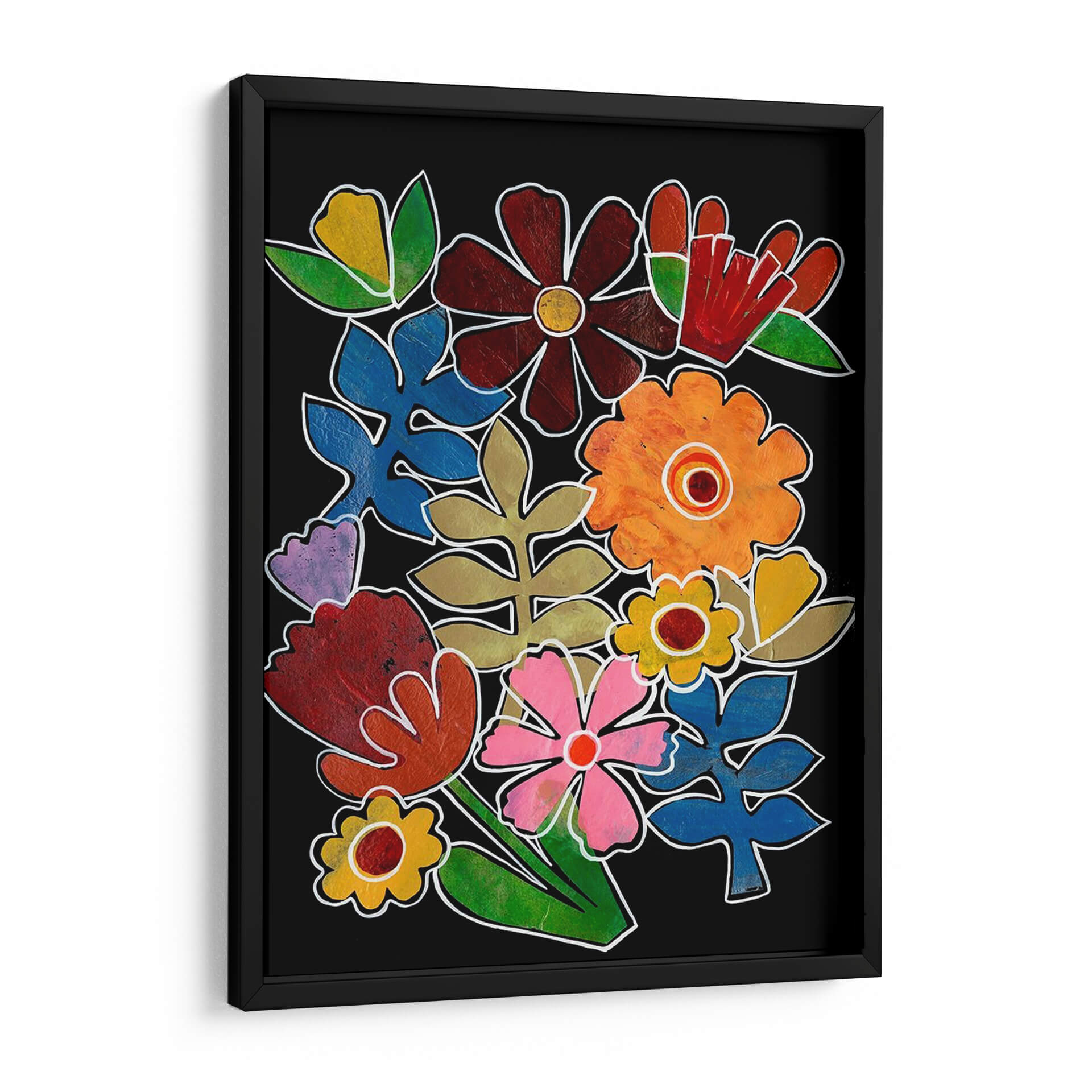 Transforma tu espacio con la vibrante obra de arte 'Floral II' de Regina Moore. Este cautivador cuadro decorativo presenta un exuberante ramo de flores estilizadas sobre un profundo fondo negro, creando un contraste audaz y moderno. Cada flor, pintada con texturas ricas y colores vivos como el naranja ardiente, el azul profundo, el rosa juguetón, el borgoña terroso y toques de amarillo soleado y verde vibrante, parece cobrar vida propia. El contorno blanco nítido que delimita cada elemento floral añade una cualidad gráfica y contemporánea a la composición, evocando un estilo pop art con un toque orgánico. "Floral II" irradia una energía alegre y optimista, perfecta para inyectar vitalidad y un toque de naturaleza moderna en cualquier habitación. Ideal para salas de estar, comedores o estudios que buscan un punto focal dinámico y lleno de color. Esta pieza es una celebración de la belleza floral, reinterpretada con una sensibilidad artística única que añadirá carácter y estilo inconfundible a tu decoración. Deja que la expresividad de Regina Moore embellezca tu hogar.