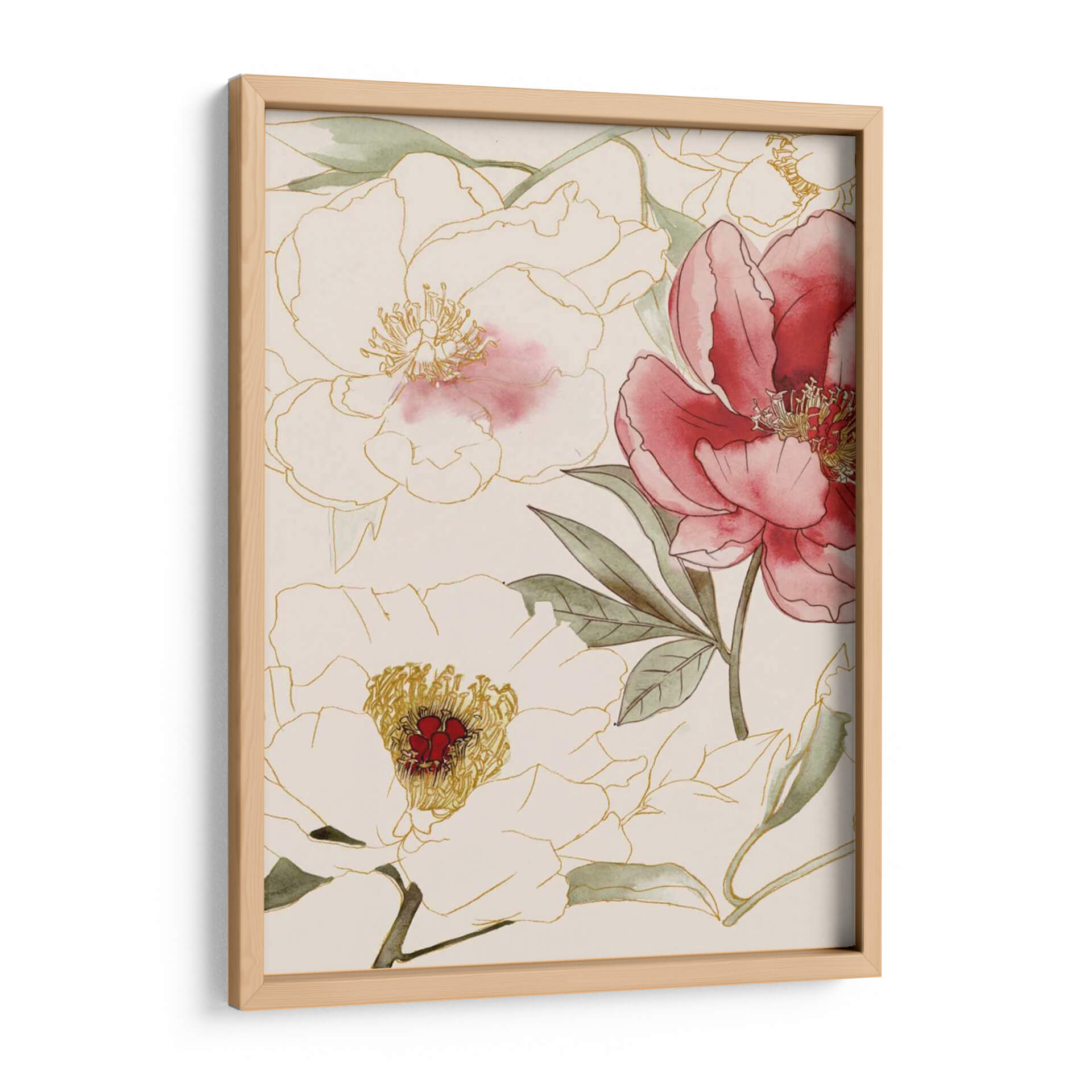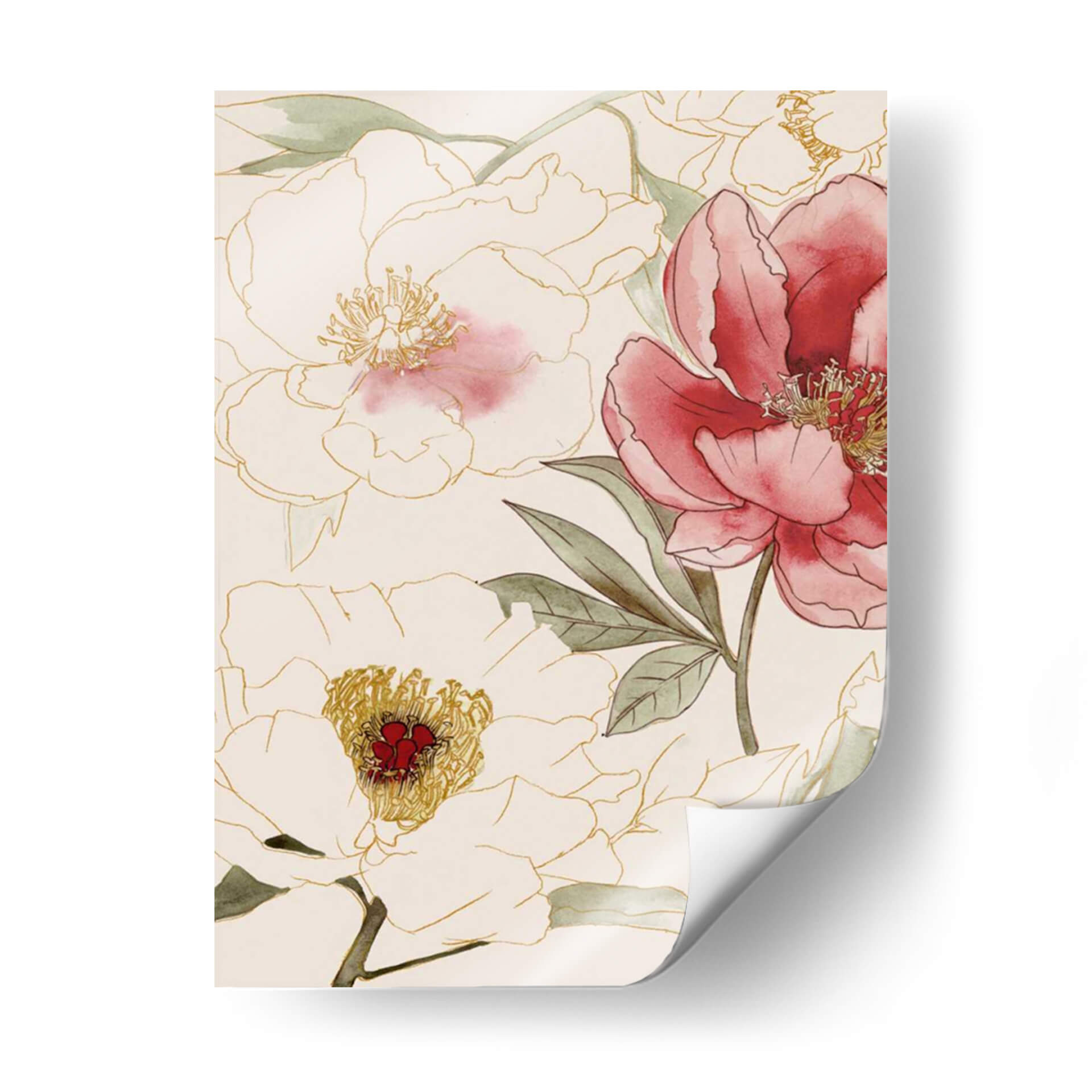 Transforma tu espacio con el cuadro decorativo "Floral Sin Terminar" de Grace Popp, una obra que captura la delicadeza y la belleza efímera de las flores. Esta pieza, con su estilo contemporáneo y trazos sutiles, presenta un arreglo floral en tonos crema, rosa y verde, delineado con líneas doradas que añaden un toque de sofisticación. La acuarela aplicada con maestría crea un efecto etéreo, donde las flores parecen emerger suavemente de un fondo neutro. Los detalles en rojo vibrante en el centro de algunas flores aportan un contraste cautivador, mientras que las hojas verdes y los contornos dorados equilibran la composición con elegancia. Ideal para quienes buscan infundir calma y belleza natural en su hogar u oficina, este cuadro decorativo es perfecto para crear un ambiente sereno y refinado. Su diseño versátil se adapta a diversos estilos decorativos, desde el minimalista hasta el más clásico, convirtiéndose en un punto focal encantador en cualquier habitación. Añade un toque de arte floral que inspira tranquilidad y aprecio por la naturaleza con esta pieza única.