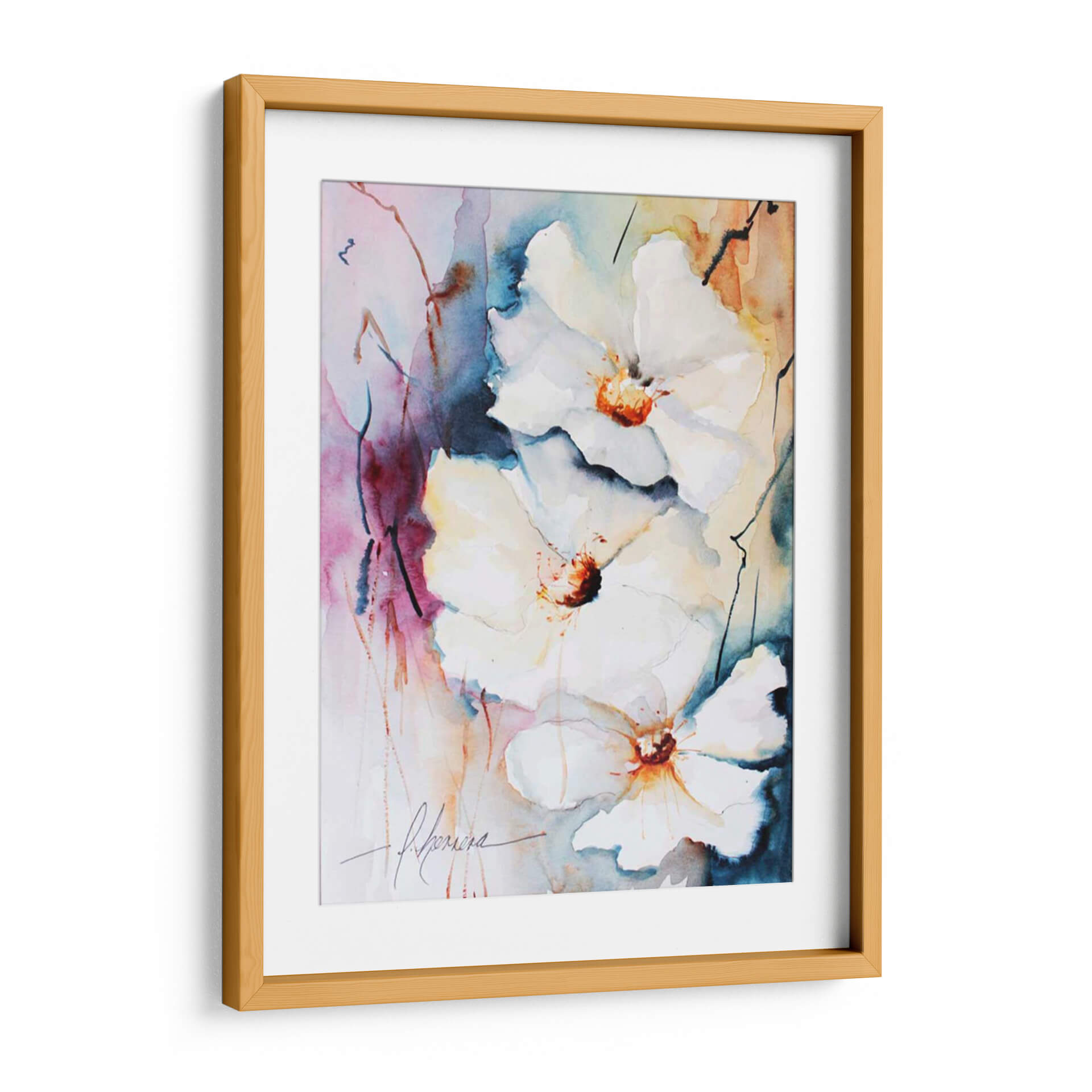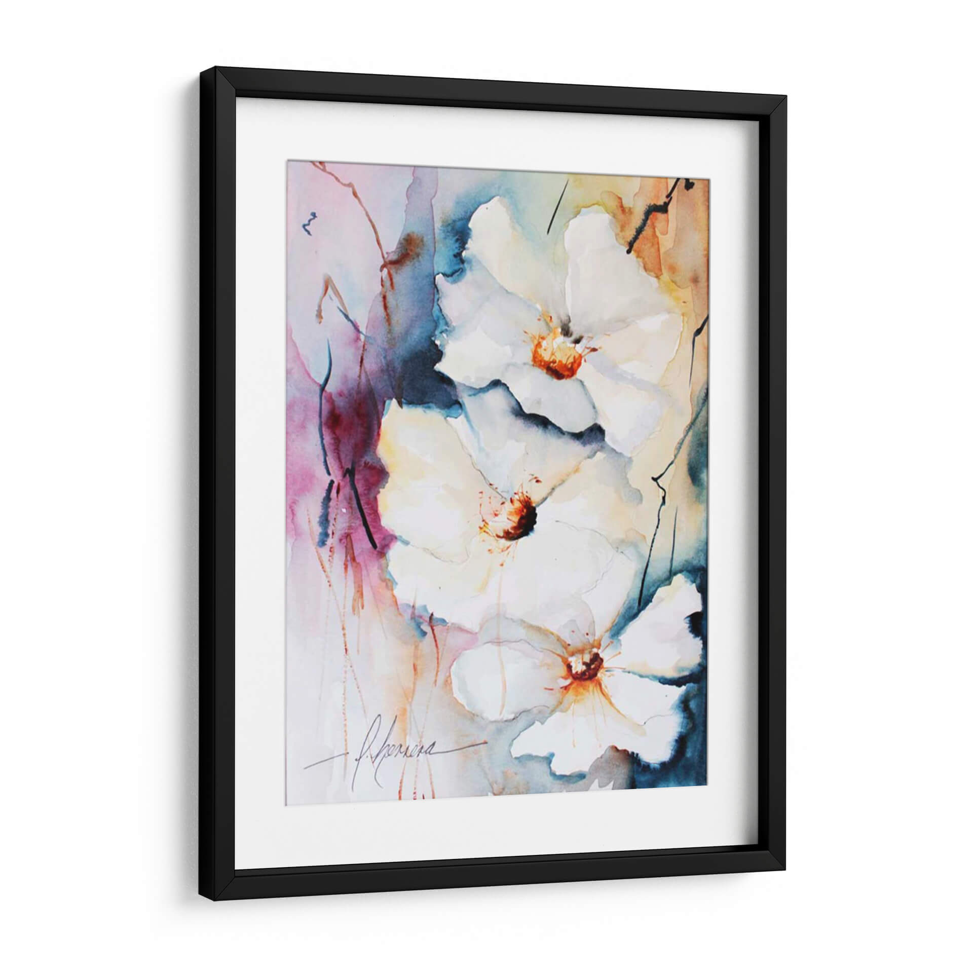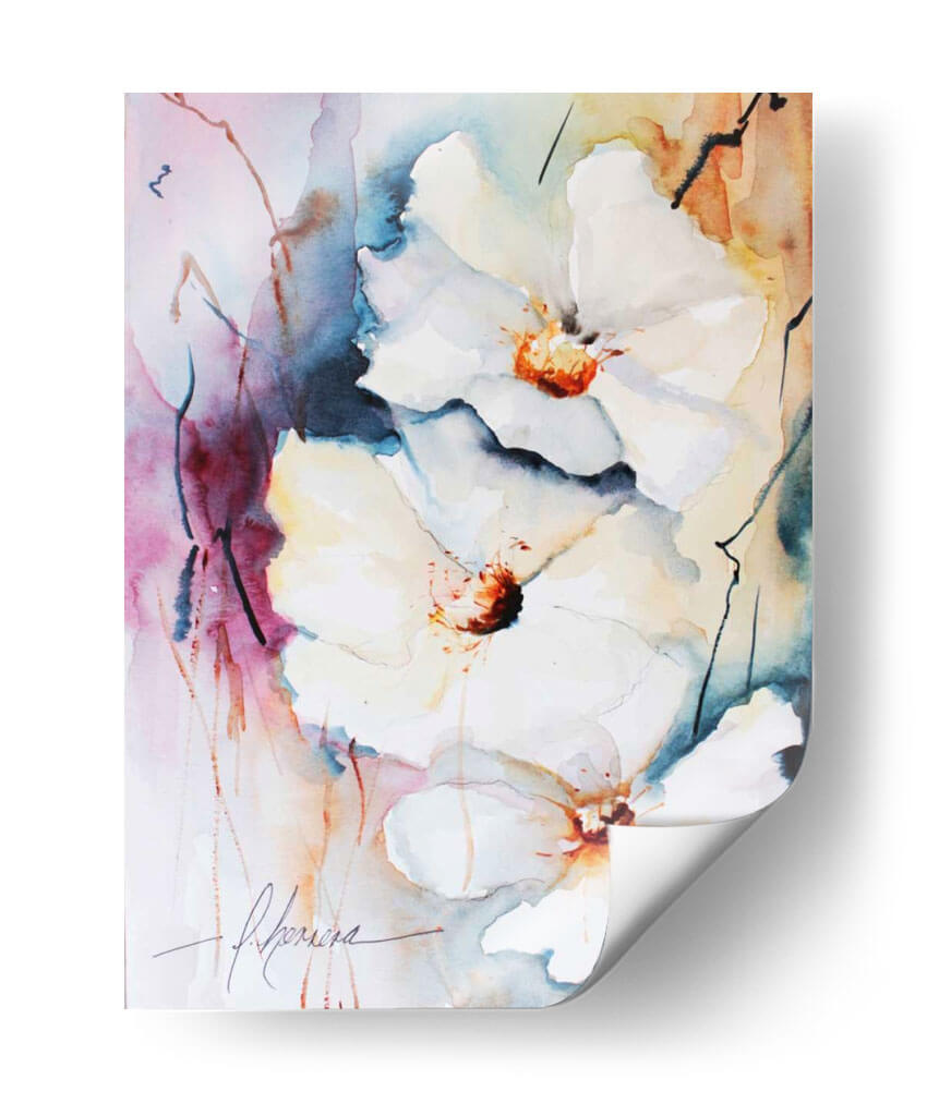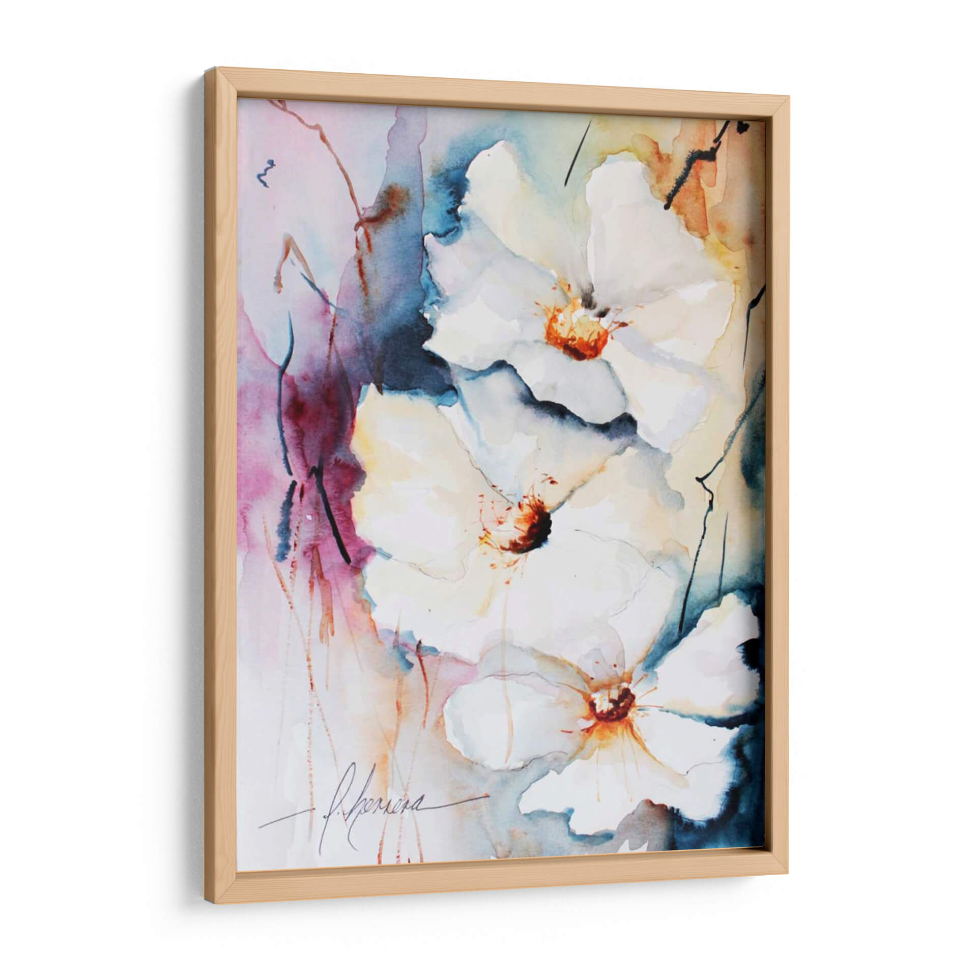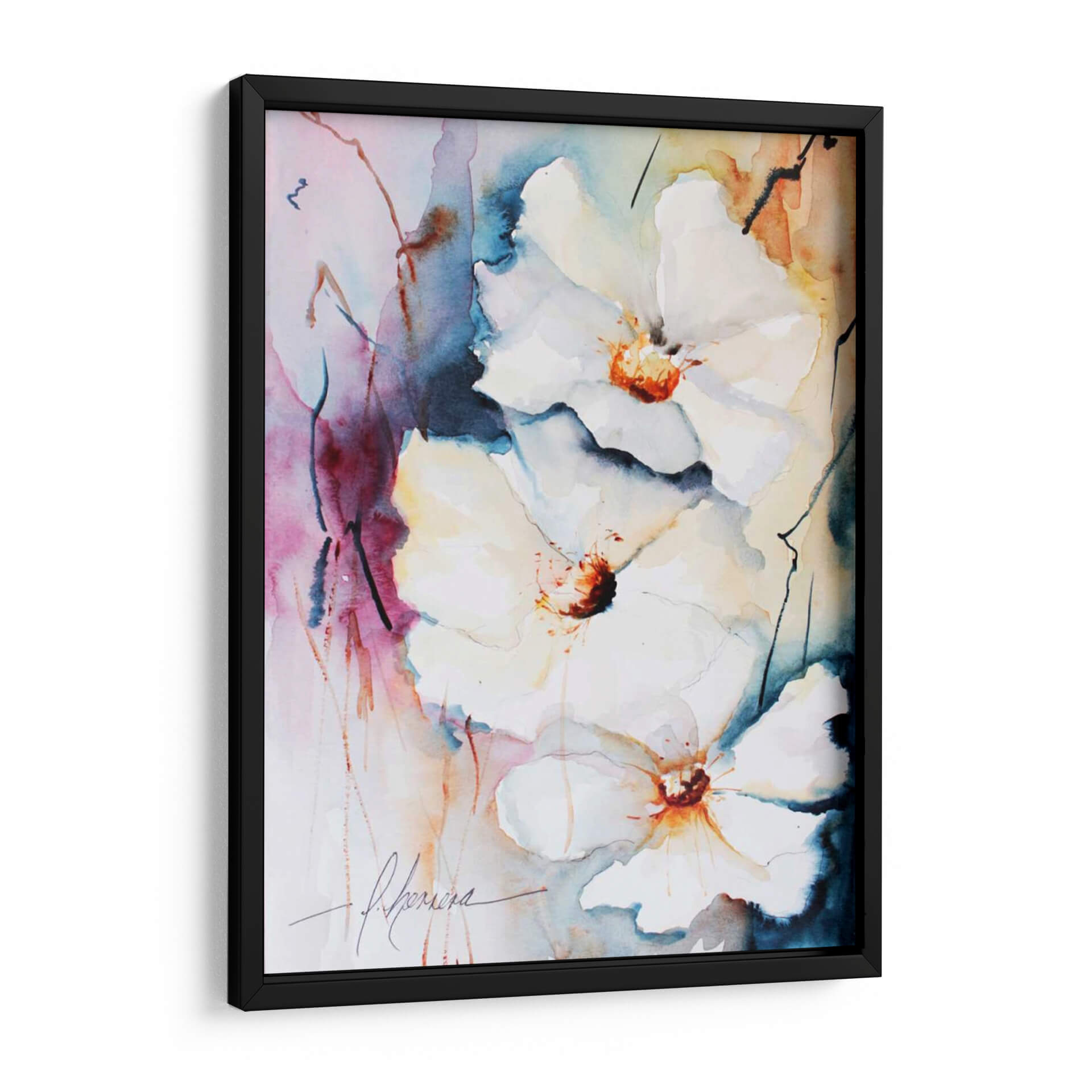 Sumérgete en la delicadeza y la belleza etérea de "Florece Aquas I", una obra de arte contemporáneo que captura la esencia de las flores en plena eclosión. La artista Leticia Herrera nos regala una composición que evoca la serenidad y la frescura de un jardín al amanecer. Los pétalos blancos, con sutiles toques de naranja y un centro vibrante, parecen flotar sobre un fondo de acuarelas suaves en tonos azules, púrpuras y ocres. La técnica, que recuerda a la acuarela, aporta una ligereza y fluidez únicas a la pieza, creando un efecto casi onírico. Las líneas finas y orgánicas que delinean algunas formas añaden un toque de intriga y profundidad, invitando a la contemplación. "Florece Aquas I" es ideal para añadir un toque de calma y elegancia a cualquier espacio, ya sea una sala de estar, un dormitorio o una oficina. Su paleta de colores versátil la convierte en una adición perfecta para decoraciones modernas, minimalistas o bohemias, transformando cualquier pared en un lienzo de tranquilidad y belleza natural. Descubre la poesía visual de Leticia Herrera y deja que la naturaleza florezca en tu hogar.