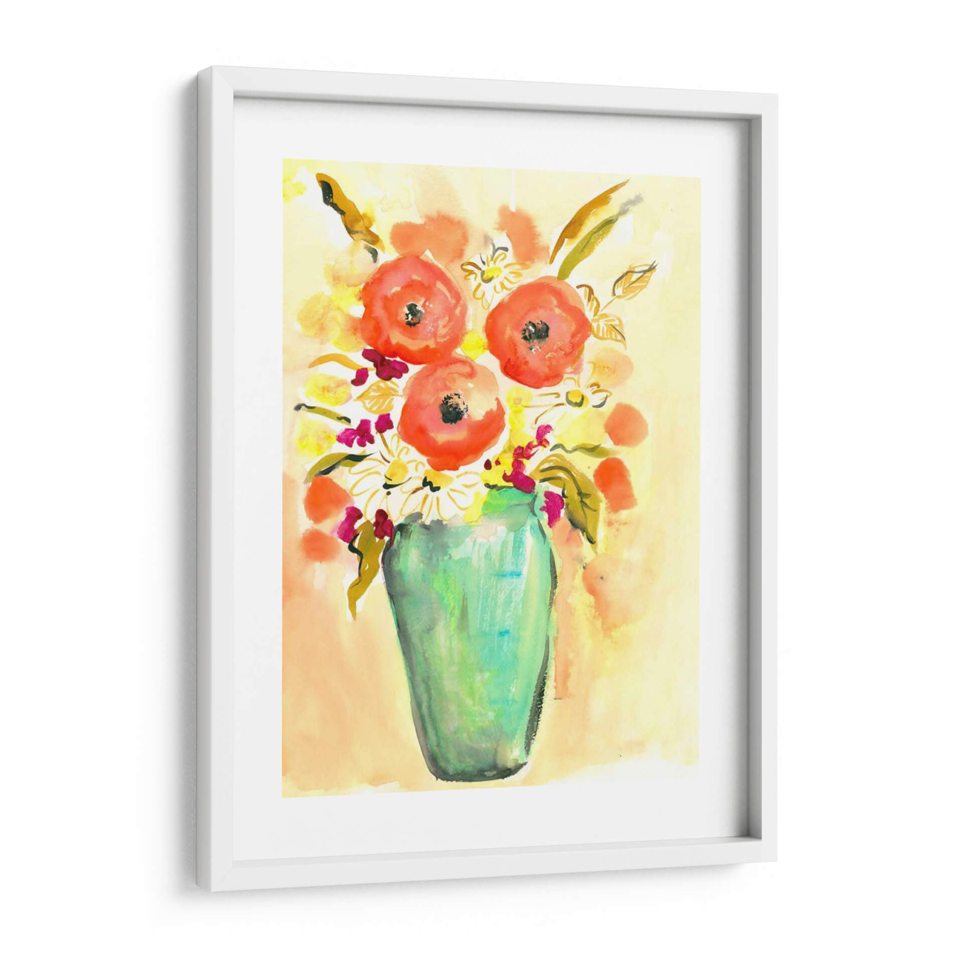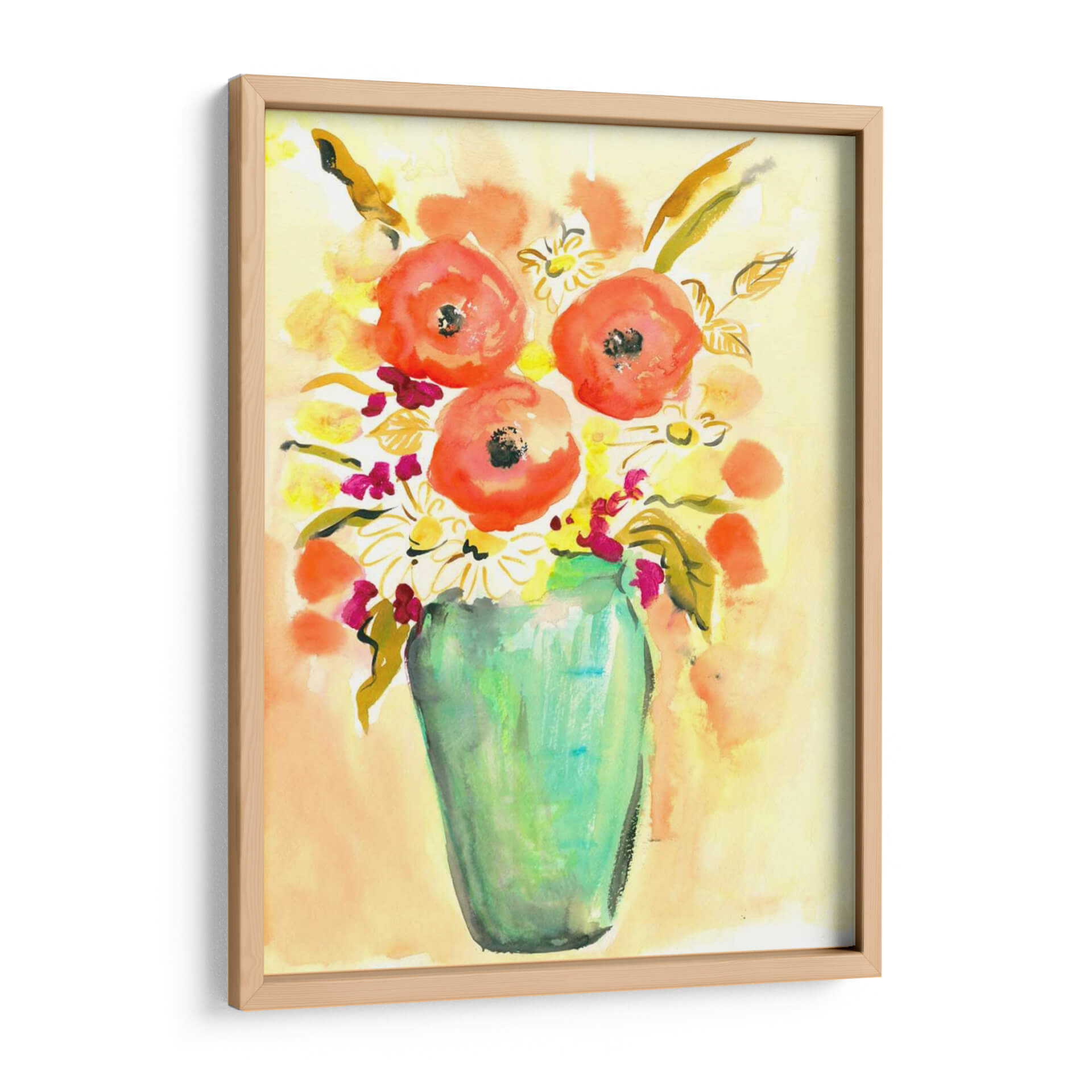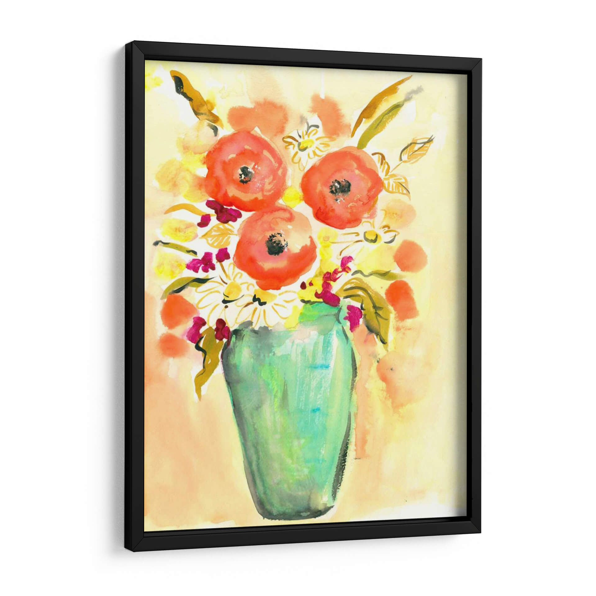 Este cautivador cuadro decorativo, "Florero III" de Julia Minasian, es una explosión de color y vitalidad que transformará cualquier espacio. La obra presenta un vibrante arreglo floral en tonos anaranjados y rojos intensos, contrastando con delicados toques de rosa y blanco, todo contenido en un jarrón de un refrescante tono verde. Las pinceladas sueltas y etéreas, características de la acuarela, aportan una sensación de movimiento y ligereza, creando una atmósfera alegre y optimista. El fondo suavemente degradado, en tonos amarillos y naranjas pálidos, realza la viveza de las flores y el jarrón, dirigiendo la atención del espectador hacia el tema principal. El estilo contemporáneo y la composición dinámica hacen de esta pieza una adición perfecta para salas de estar modernas, comedores llenos de vida o incluso para infundir energía en una oficina. "Florero III" no es solo una representación de flores, sino una celebración de la belleza efímera y la alegría de la naturaleza, invitando a la contemplación y al disfrute visual. Es el cuadro ideal para quienes buscan añadir un toque de frescura y calidez a su decoración, creando un punto focal que inspira sonrisas y conversaciones. Descubre cómo esta obra puede dar vida a tus paredes.