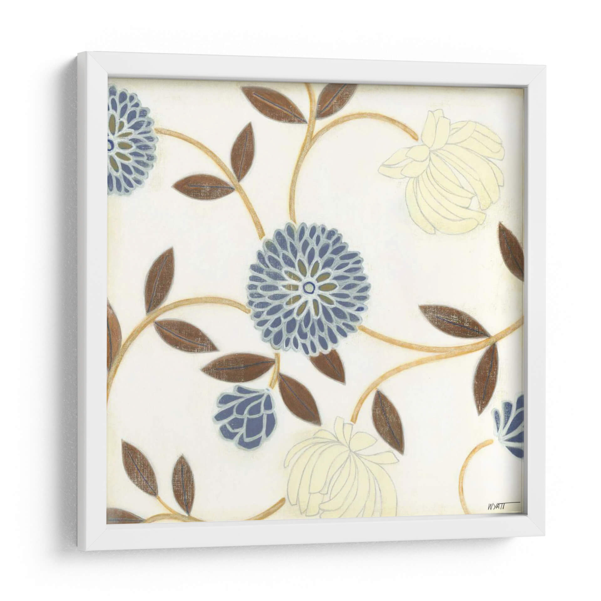 Embellece tu hogar con el encanto sutil y la elegancia atemporal de "Flores Azules Y Cremas En Seda I", una obra maestra de Norman Wyatt Jr. Este cuadro decorativo captura la delicadeza de la naturaleza con un patrón floral estilizado que evoca serenidad y sofisticación. Los tonos azules profundos y cremas suaves se entrelazan con sutiles acentos marrones y dorados sobre un fondo neutro, creando una armonía visual que se adapta a cualquier estilo de decoración. La composición, con sus líneas fluidas y flores detalladas, aporta una sensación de calma y equilibrio, ideal para transformar un dormitorio, una sala de estar o un estudio en un oasis de paz. La técnica pictórica, que recuerda a la seda por su textura y luminosidad, otorga a esta pieza una cualidad única y refinada. Descubre cómo este cuadro puede añadir un toque de arte contemporáneo y personalidad a tus espacios, invitando a la contemplación y al deleite visual en cada mirada. Es la elección perfecta para quienes buscan una decoración mural que combine arte, estilo y una atmósfera acogedora.