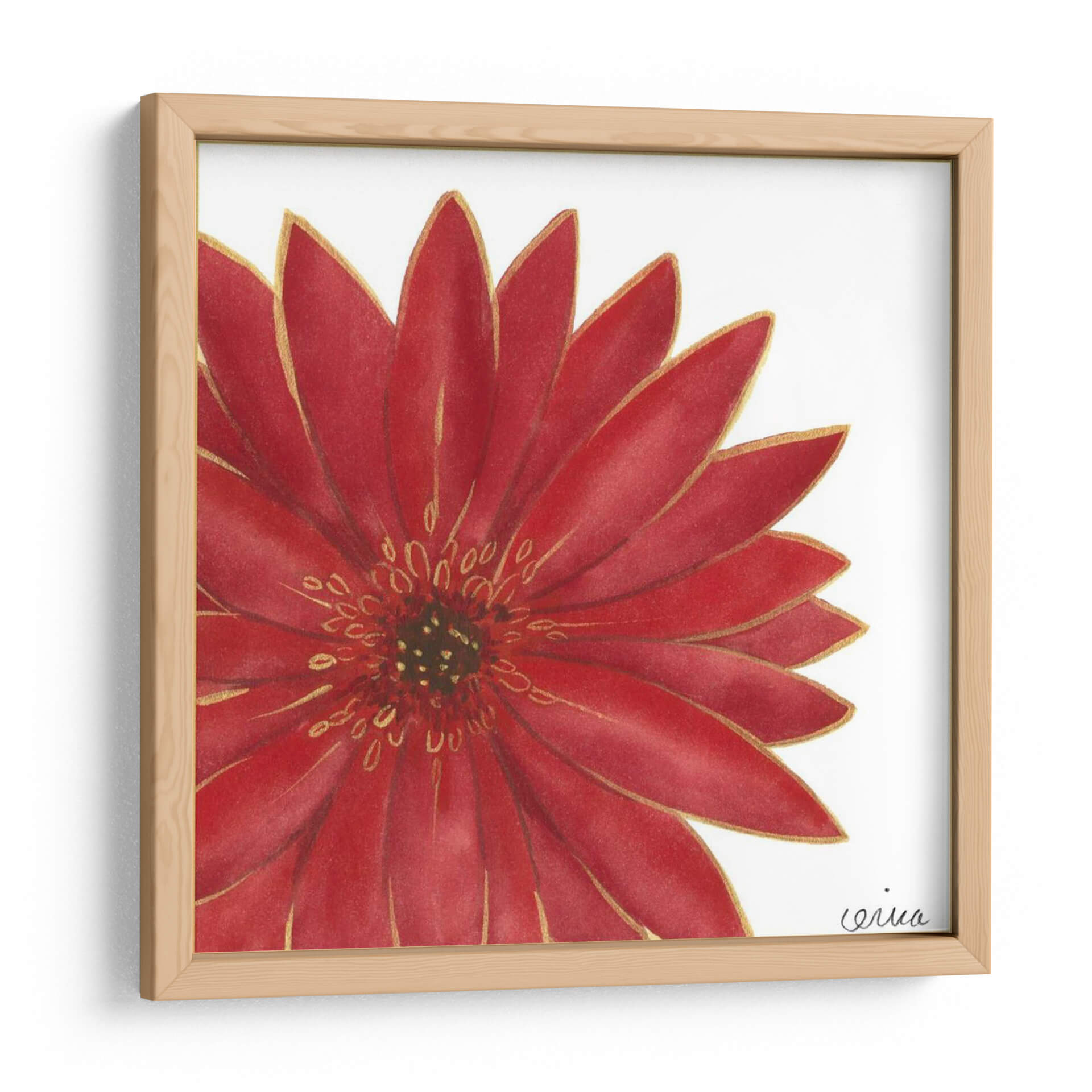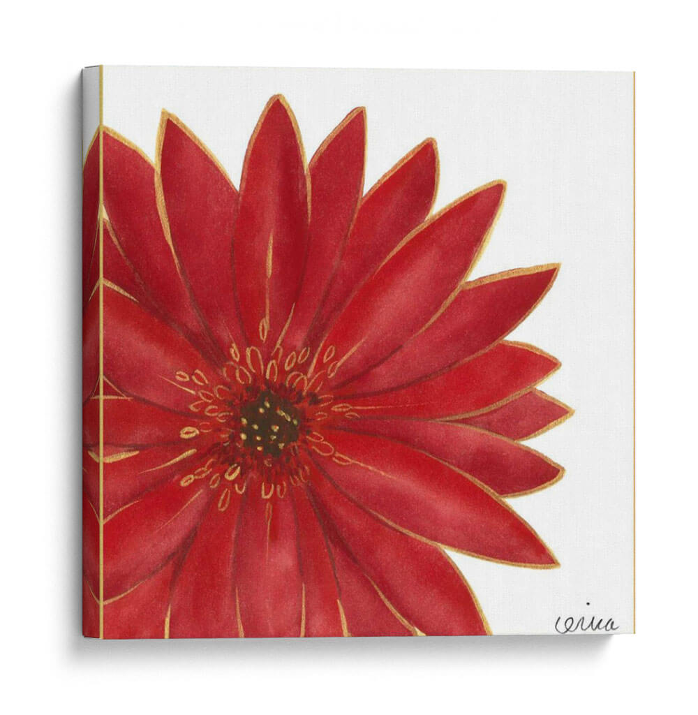 Transforma tu espacio con la vibrante belleza de 'Flores Brillantes II', una obra de arte contemporáneo que captura la esencia de la naturaleza con un toque de elegancia. Este cuadro decorativo presenta una detallada representación de una flor roja intensa, cuyos pétalos se despliegan con delicadeza, delineados sutilmente con un toque dorado que aporta un aire de sofisticación. La técnica utilizada, que evoca la acuarela con trazos precisos, dota a la pieza de una luminosidad y profundidad excepcionales. El fondo blanco y limpio permite que la flor sea la protagonista indiscutible, creando un contraste visual impactante que atrae todas las miradas. Ideal para añadir un punto de color y vida a salones, dormitorios u oficinas, esta obra es una celebración de la belleza efímera de las flores, capturada para perdurar. Su estilo se adapta perfectamente a decoraciones modernas, minimalistas o incluso clásicas, aportando un toque de frescura y vitalidad. Las 'Flores Brillantes II' no es solo una pieza decorativa, es una ventana a la alegría y la energía de la primavera, diseñada para inspirar y deleitar a quienes buscan arte con alma.