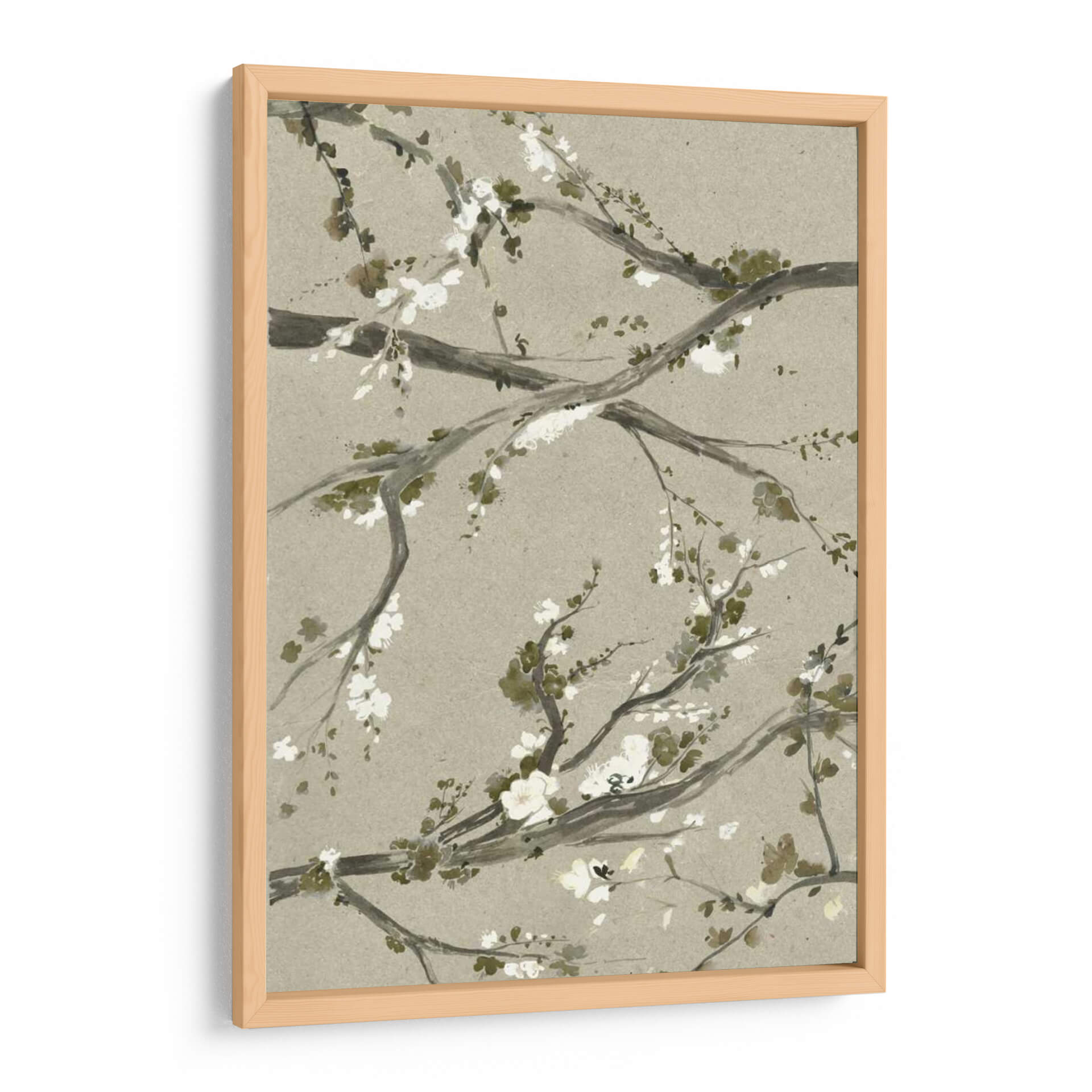 Embellece tu hogar con el delicado encanto de "Flores De Cerezo Neutro I", una obra maestra del arte de pared de Grace Popp. Esta pieza captura la efímera belleza de las flores de cerezo en plena floración, con delicadas ramas que se extienden a través de un sereno fondo neutro. La paleta de colores, dominada por suaves tonos tierra, blancos cremosos y sutiles verdes, crea una atmósfera de calma y sofisticación, perfecta para añadir un toque de serenidad a cualquier espacio. El estilo, que recuerda a la pintura tradicional asiática con un toque contemporáneo, ofrece una composición equilibrada y orgánica que atrae la mirada sin abrumar. Cada pincelada evoca la delicadeza y la transitoriedad de la naturaleza, invitando a la contemplación y al aprecio por los pequeños detalles de la vida. Este cuadro decorativo es ideal para salones, dormitorios o incluso oficinas, aportando un aire de tranquilidad y elegancia natural. Su versatilidad permite que combine a la perfección con una amplia gama de estilos decorativos, desde el minimalista hasta el más bohemio, convirtiéndose en un punto focal sutil pero impactante. Descubre la armonía y la paz que "Flores De Cerezo Neutro I" puede aportar a tu rincón favorito.