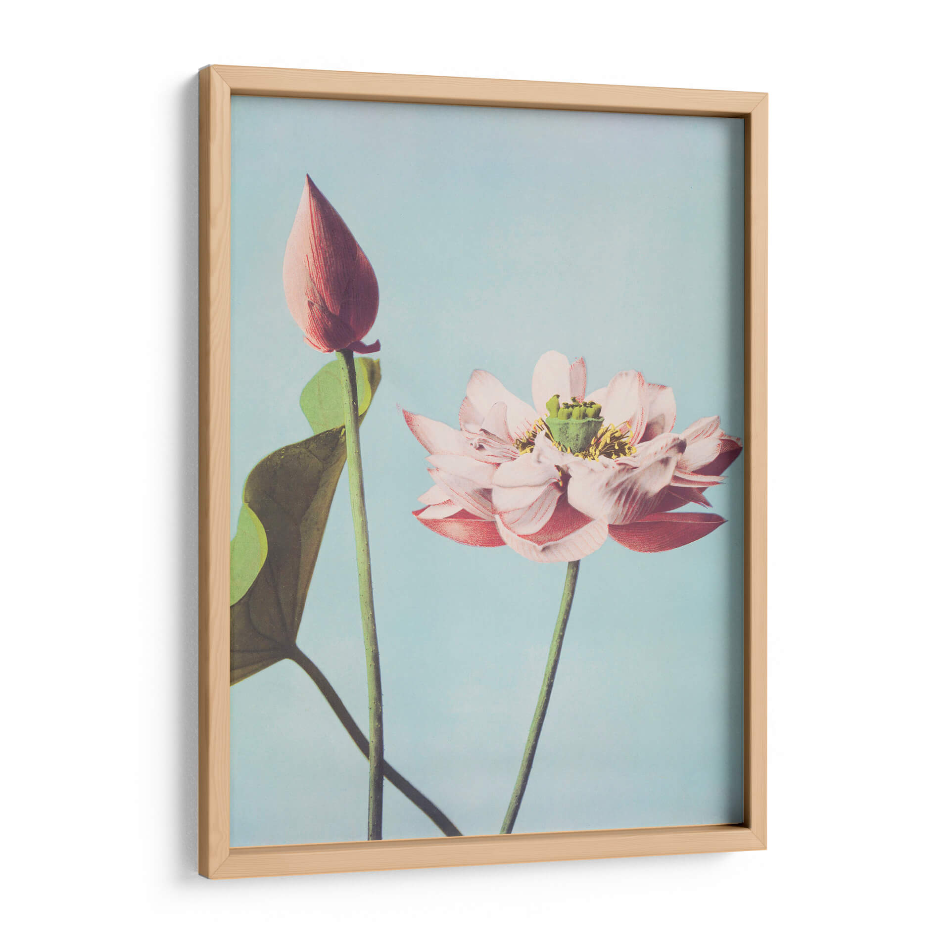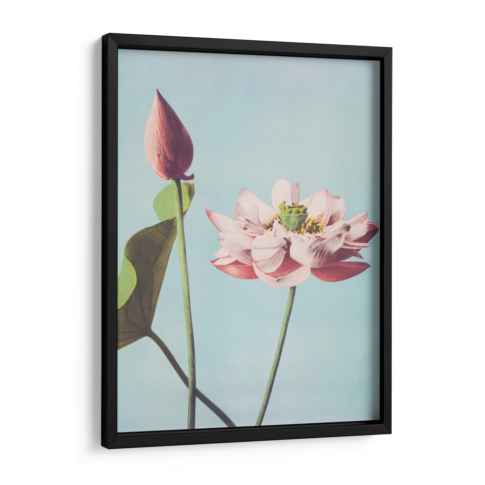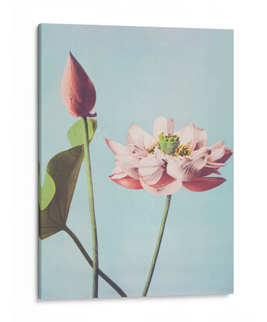 Sumérgete en la serenidad y la belleza etérea de nuestro cuadro decorativo "Flores de loto". Esta obra maestra, inspirada en la delicadeza de la naturaleza, captura la esencia de dos capullos de loto en un entorno sereno de tonos celestes y rosados suaves. La composición minimalista y la paleta de colores pastel crean una atmósfera de calma y armonía, perfecta para transformar cualquier espacio en un oasis de tranquilidad. Los pétalos rosados de la flor abierta contrastan sutilmente con el verde vibrante de las hojas y el capullo cerrado, añadiendo profundidad y un toque de vitalidad a la pieza. El fondo claro y uniforme resalta la delicadeza de las flores, invitando a la contemplación. Ideal para añadir un toque de elegancia y paz a tu dormitorio, sala de estar o incluso a un espacio de meditación. Este cuadro es más que una simple decoración; es una ventana a la serenidad, un recordatorio de la belleza efímera y la renovación constante que la naturaleza nos ofrece. Su estilo evocador y su temática universal lo convierten en una adición perfecta para hogares modernos o de inspiración asiática, aportando un aire de sofisticación y calma.