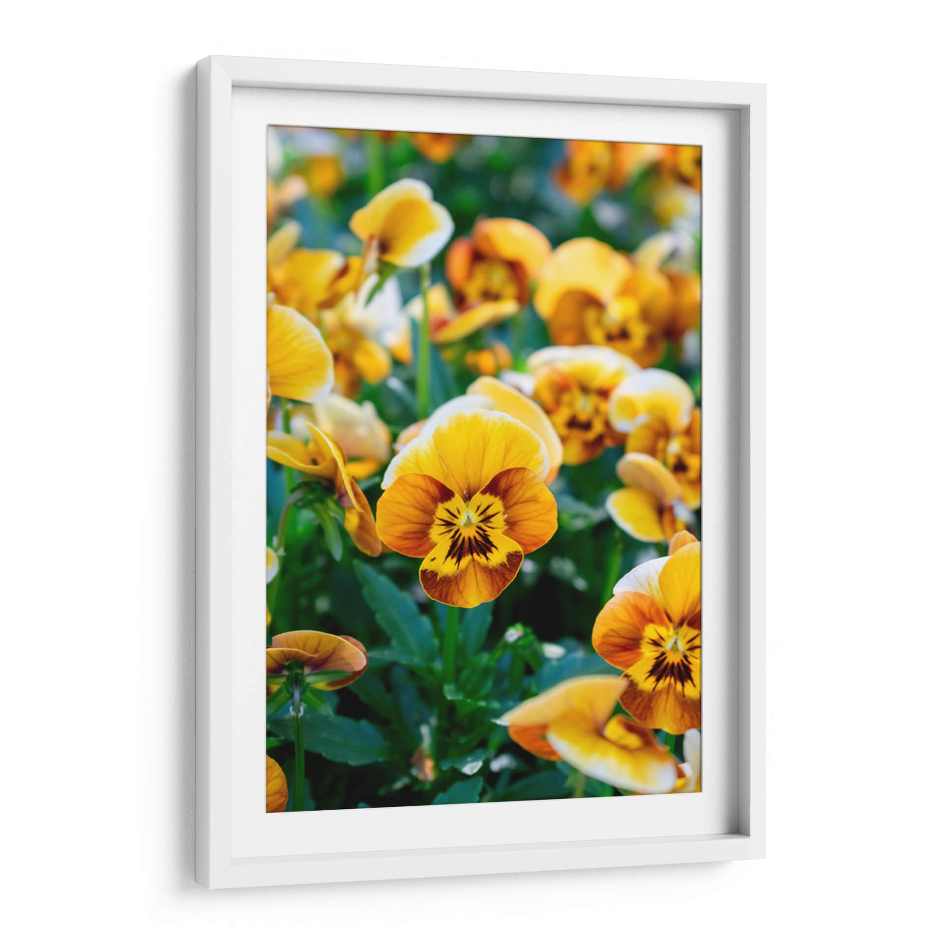 Sumérgete en la vitalidad y el encanto de las 'Flores Violas Amarillas', una obra de arte que captura la esencia de la primavera con una explosión de tonos cálidos y alegres. Este cuadro decorativo presenta un primer plano detallado de violas amarillas y naranjas, cuyas pétalos delicados parecen danzar bajo la luz. La rica paleta de colores, dominada por amarillos intensos, naranjas vibrantes y el contraste del verde profundo del follaje, crea una atmósfera de optimismo y frescura. La composición, centrada en la belleza intrínseca de estas flores, invita a la contemplación y aporta una dosis de naturaleza y serenidad a cualquier espacio. Ideal para salones modernos, dormitorios acogedores o cualquier rincón que necesite un toque de color y vida, este lienzo es una elección perfecta para quienes buscan infundir alegría y calidez en su hogar. Su estilo, que combina realismo fotográfico con una sensibilidad artística, lo convierte en una pieza versátil capaz de complementar diversas decoraciones, desde la más clásica hasta la contemporánea. Transforma tu entorno con la belleza atemporal de la naturaleza capturada en esta exquisita obra de arte.