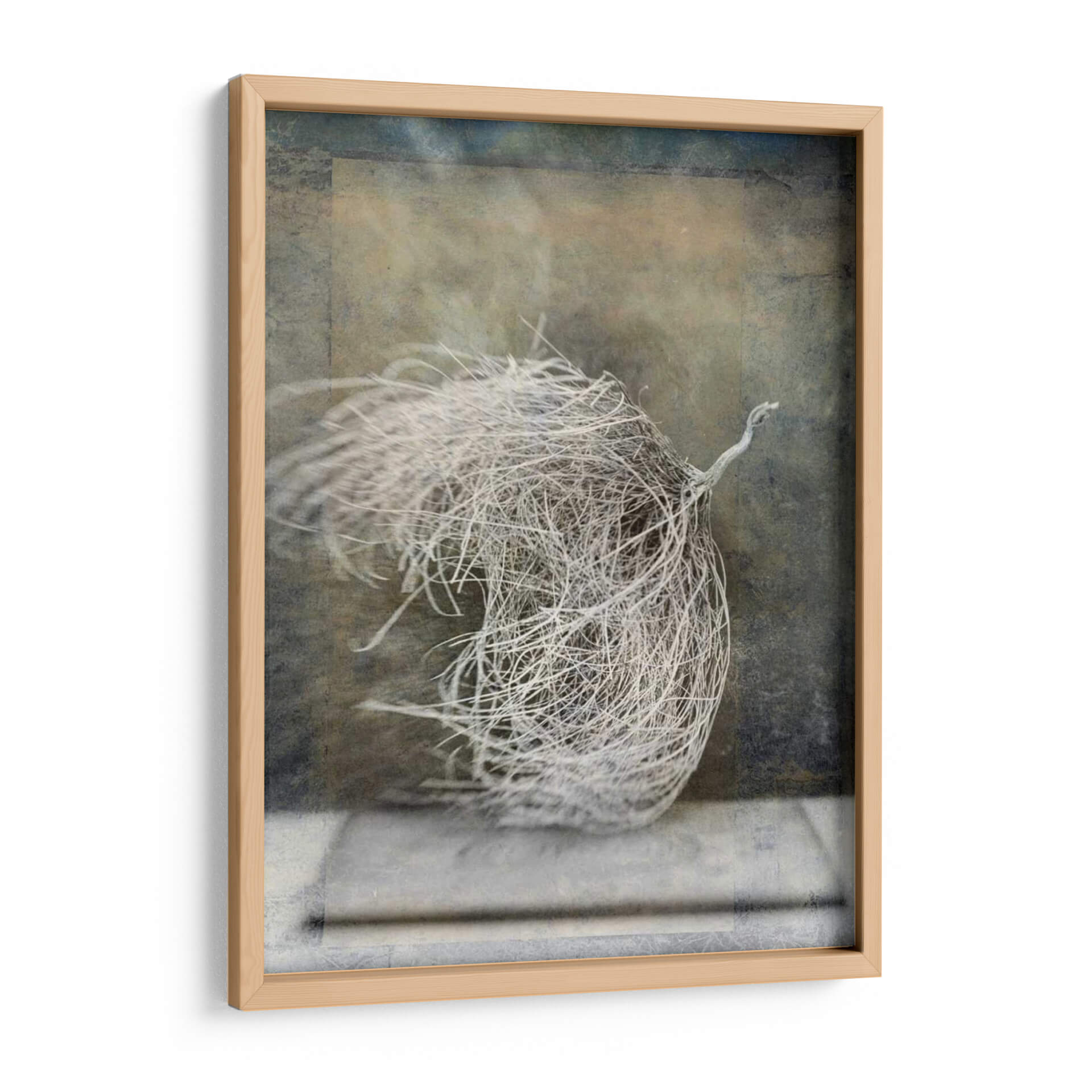Sumérgete en la serena belleza del desierto con "Forma Del Desierto I", una obra de arte cautivadora de Elena Ray. Este cuadro decorativo captura la esencia etérea de un cardo rodador, inmortalizado en un momento de movimiento suspendido. La paleta de colores, dominada por tonos tierra apagados, grises texturizados y sutiles toques de azul y beige, crea una atmósfera de calma y contemplación. La composición se centra en la intrincada forma orgánica del cardo rodador, con sus finos filamentos extendiéndose como si fueran acariciados por una brisa invisible. El fondo texturizado añade profundidad y un aire de misterio, evocando paisajes áridos y la resistencia de la naturaleza. Este arte abstracto, con su enfoque en la forma natural y su ejecución evocadora, es ideal para añadir un toque de sofisticación orgánica a cualquier espacio. Imagina este cuadro aportando una sensación de tranquilidad a tu sala de estar, un punto de reflexión en tu estudio o una nota de elegancia sutil en tu dormitorio. "Forma Del Desierto I" no es solo una pieza decorativa, es una invitación a conectar con la belleza austera y la fuerza silenciosa del mundo natural, transformando tu hogar en un santuario de paz y estilo contemporáneo.
